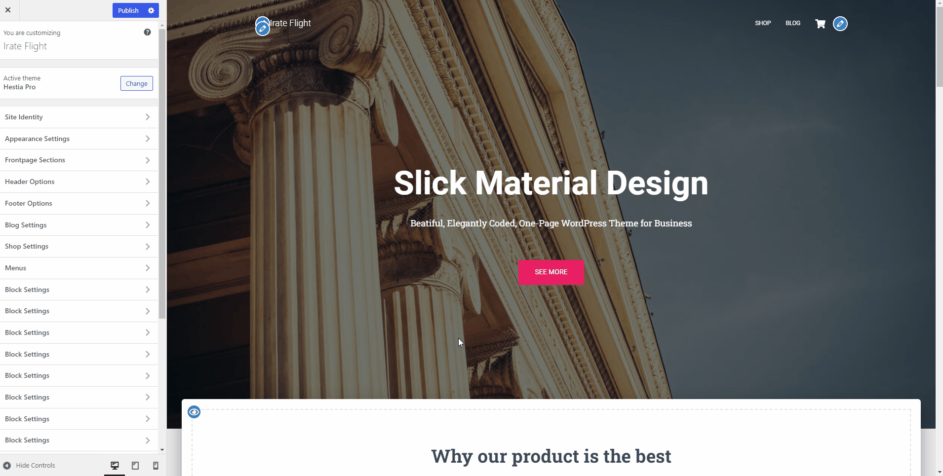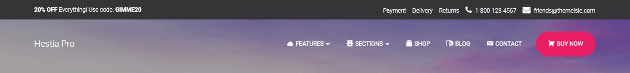 The first step in configuring the Very Top Bar in Hestia is activating it from Customizer.