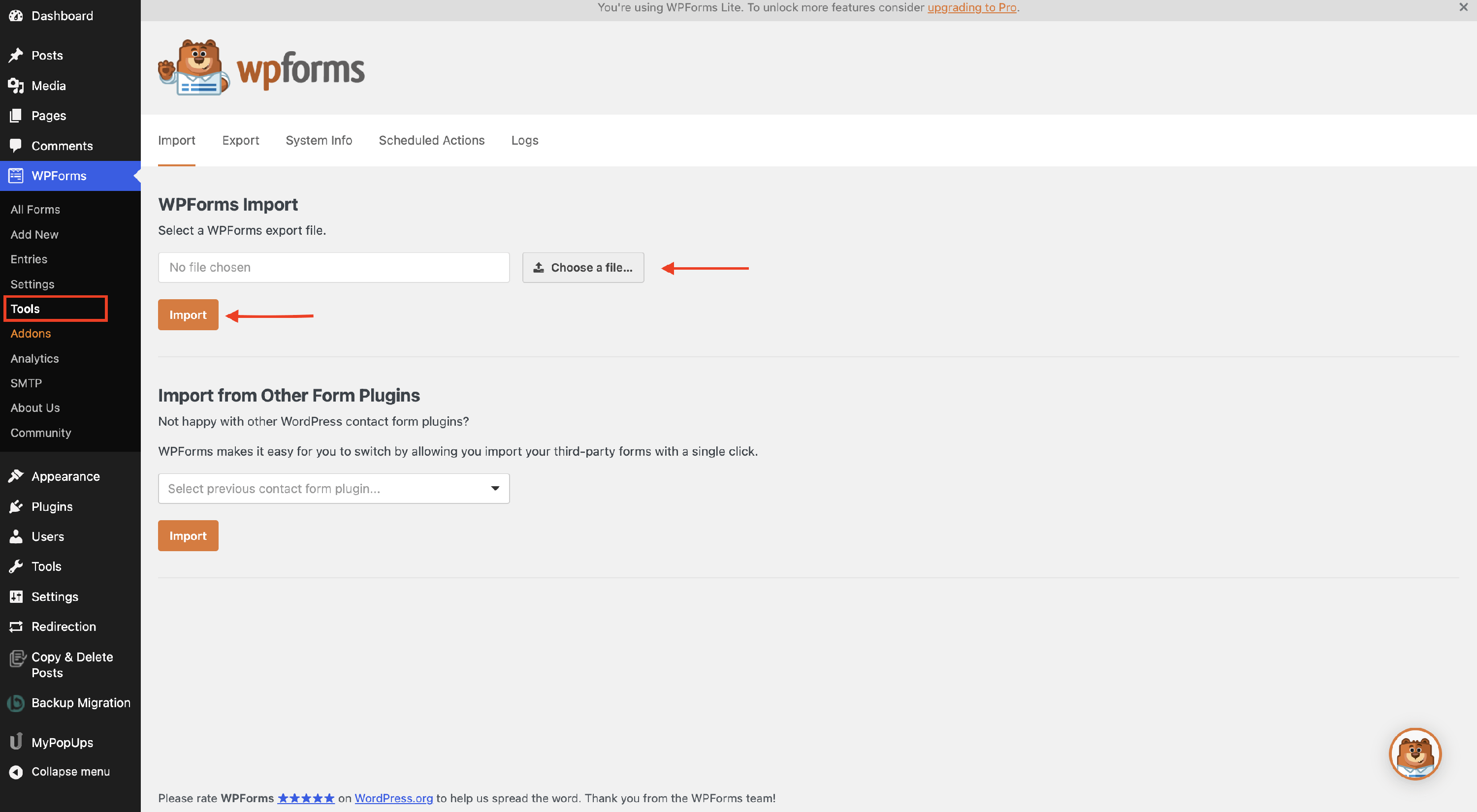 2 Navigate to Dashboard > WPForms > Tools.