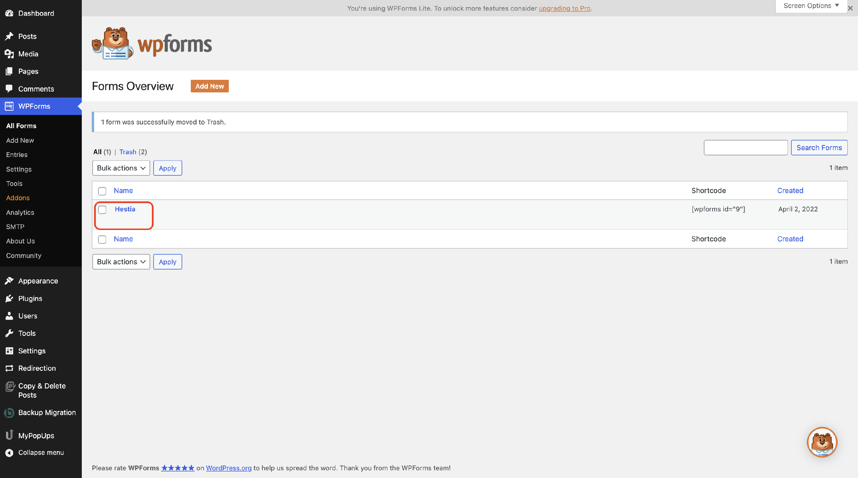 How to create the Hestia contact form in WPForms