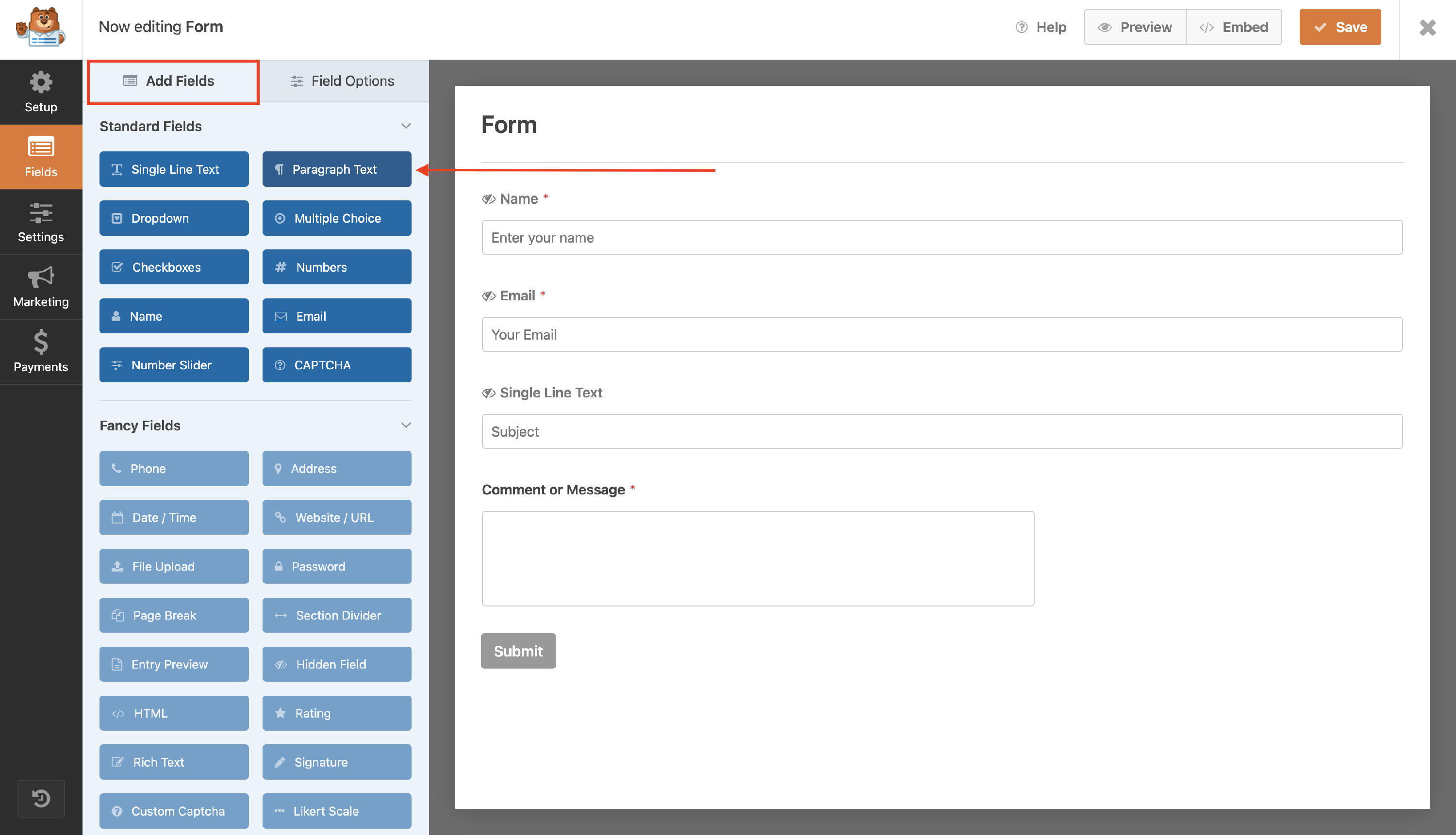 - Add a Paragraph Text field.