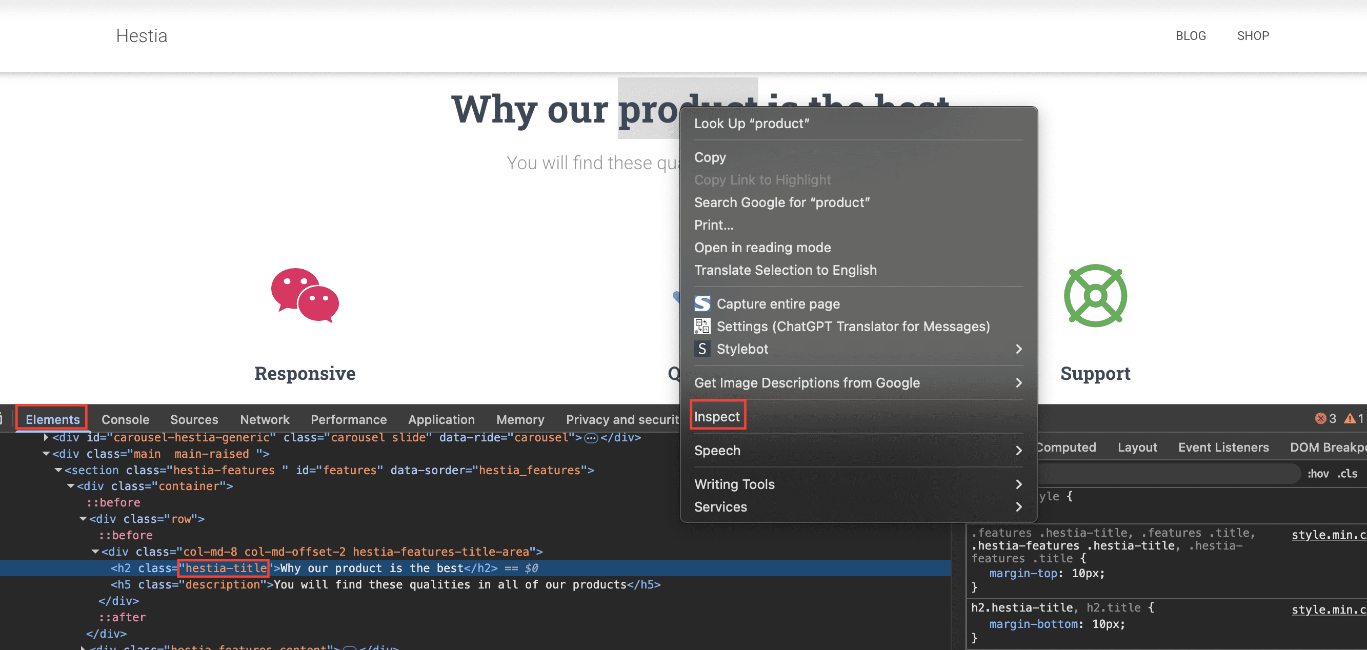 - Choose "Inspect" or "Inspect Element." This opens the Developer Tools.