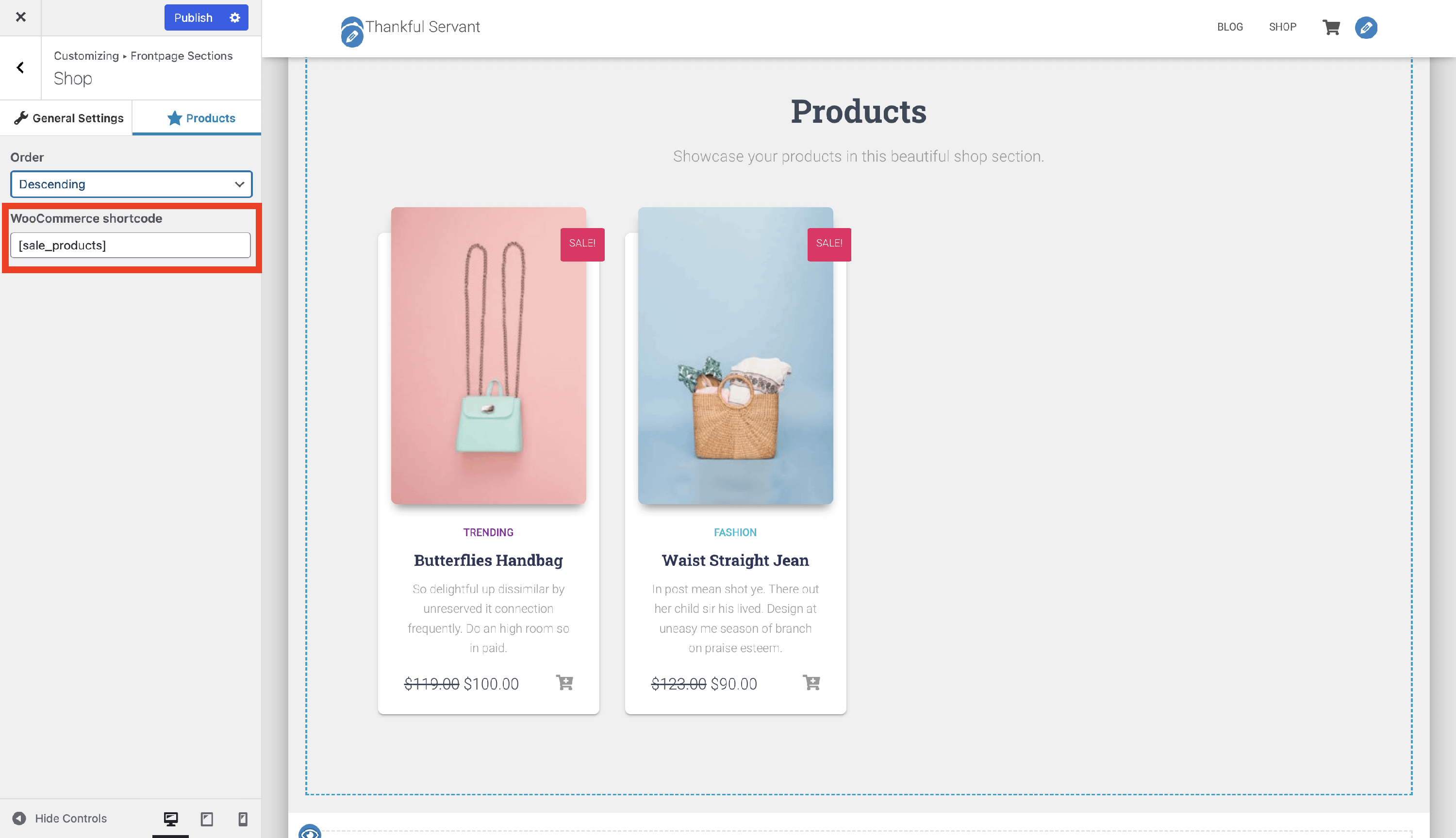 📝 Note: The Shop Section requires the WooCommerce plugin to work, so make sure it's installed.