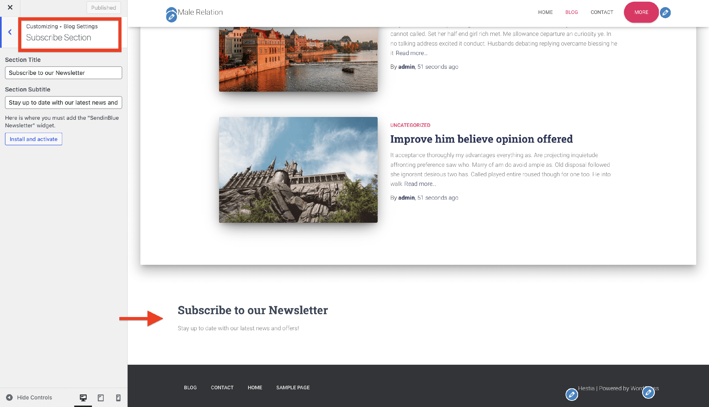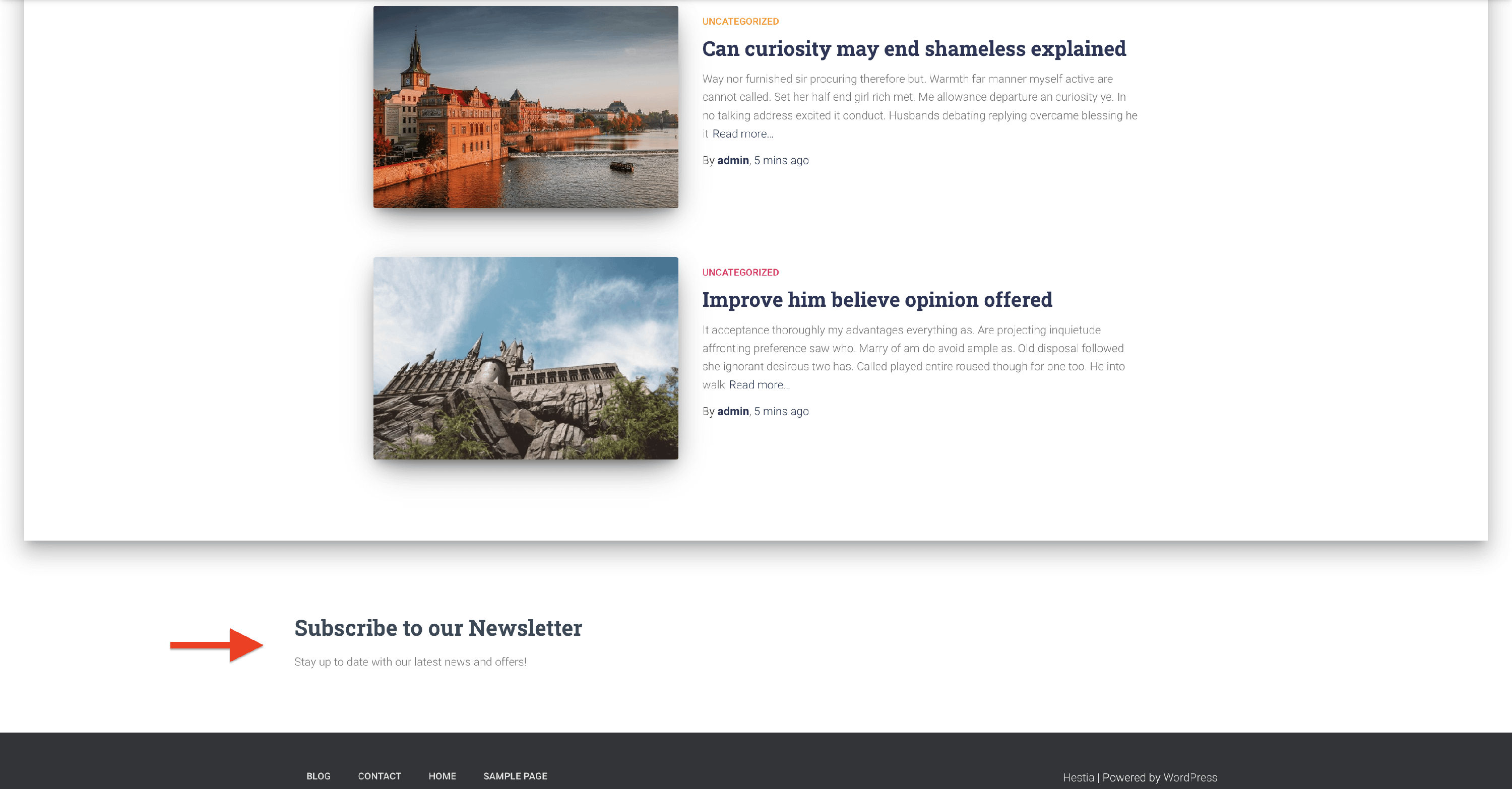 On the blog page of Hestia Pro, a subscribe section can be displayed after the posts above the footer.