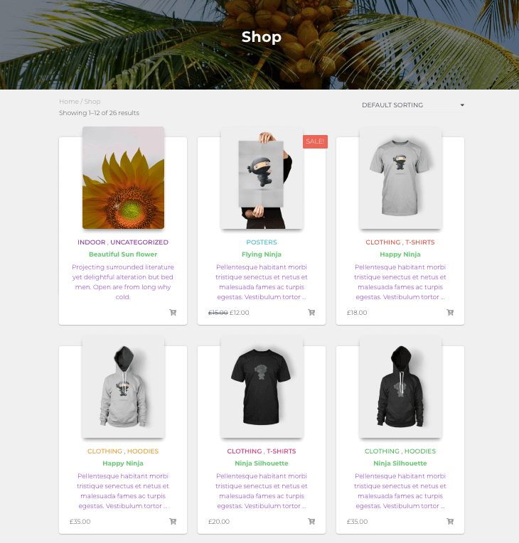 This how the shop page looks by default