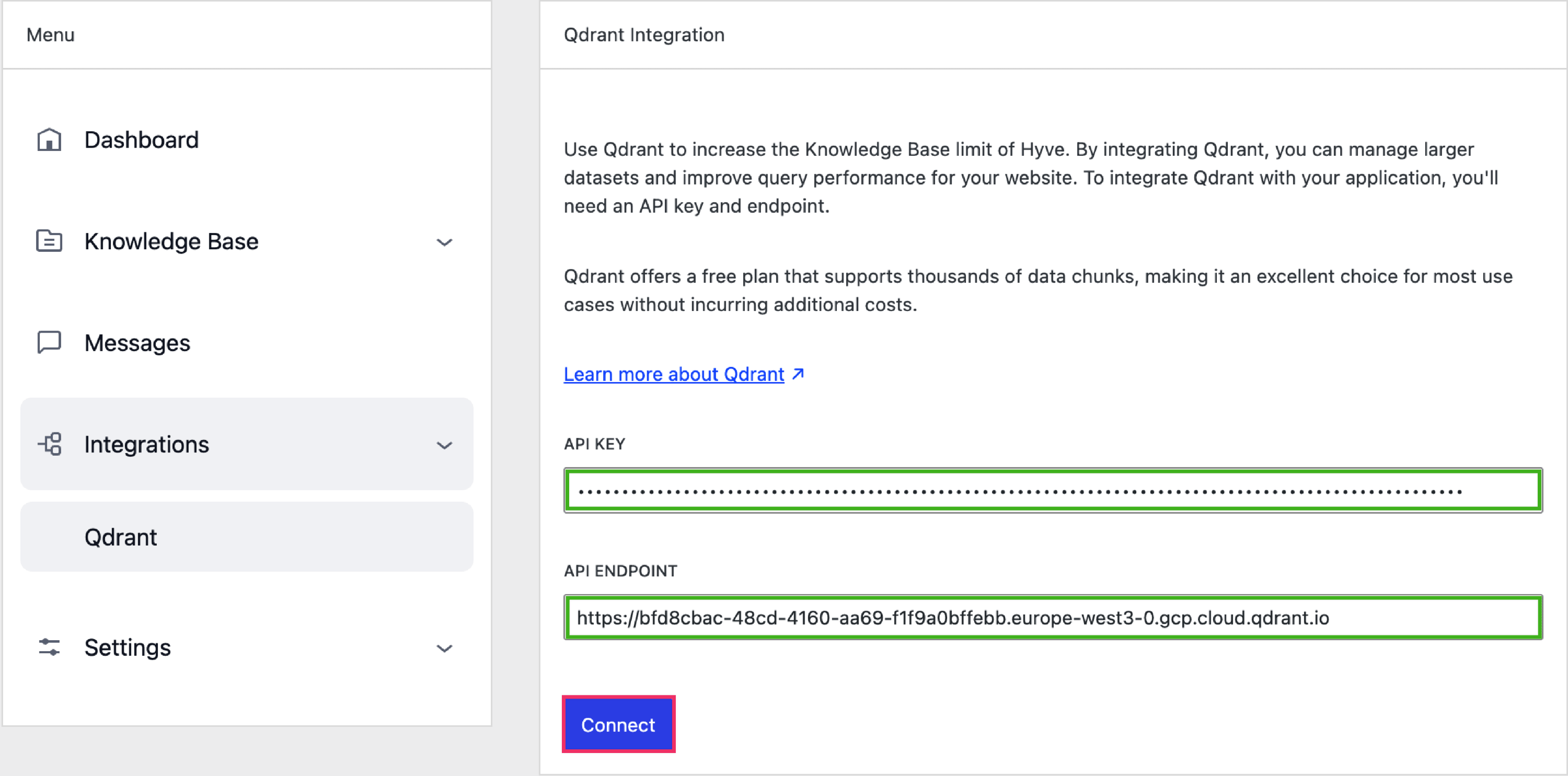 Hyve > Integrations > Qdrant
