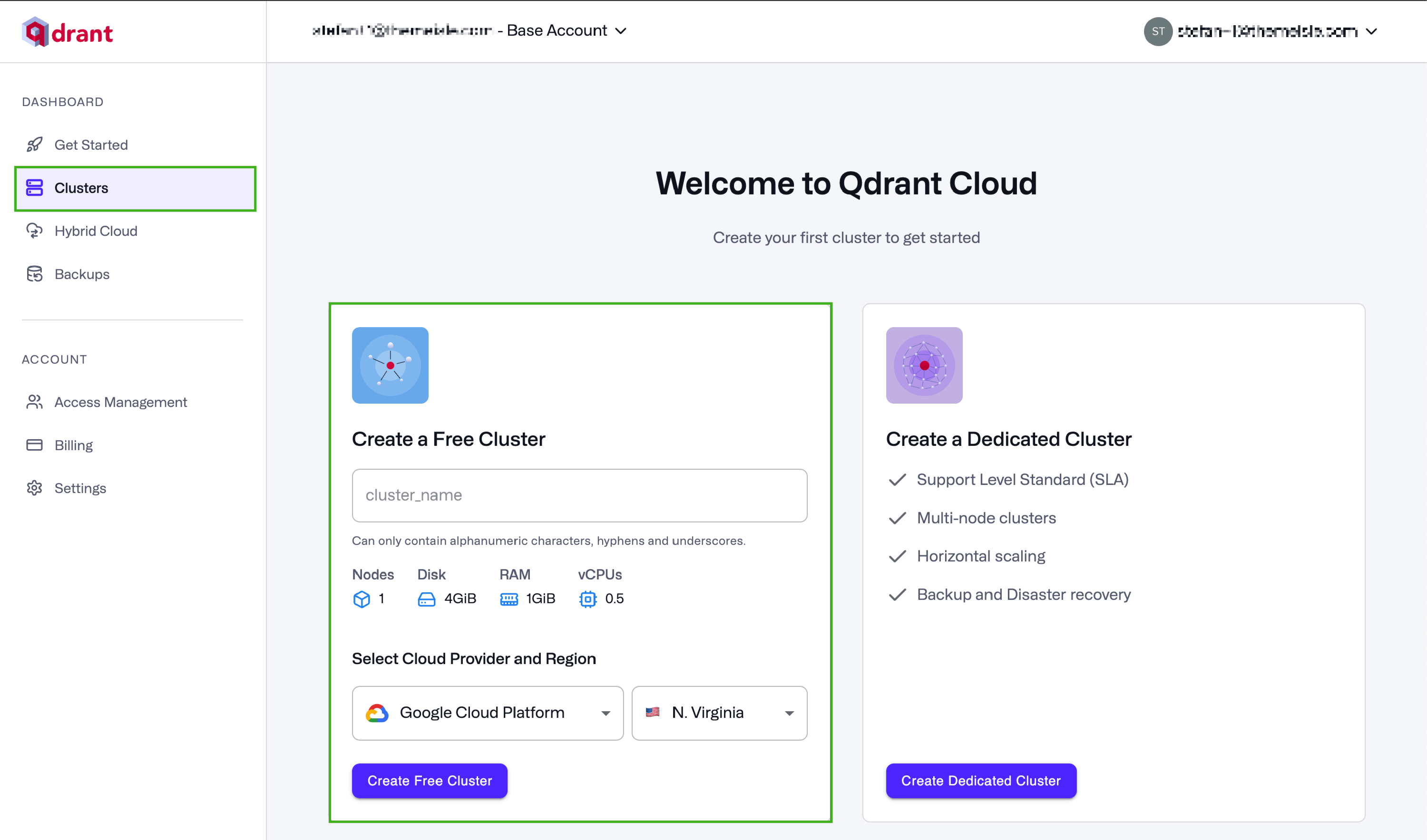 To create a free account, navigate to Qdrant's website and click the Get Started button.