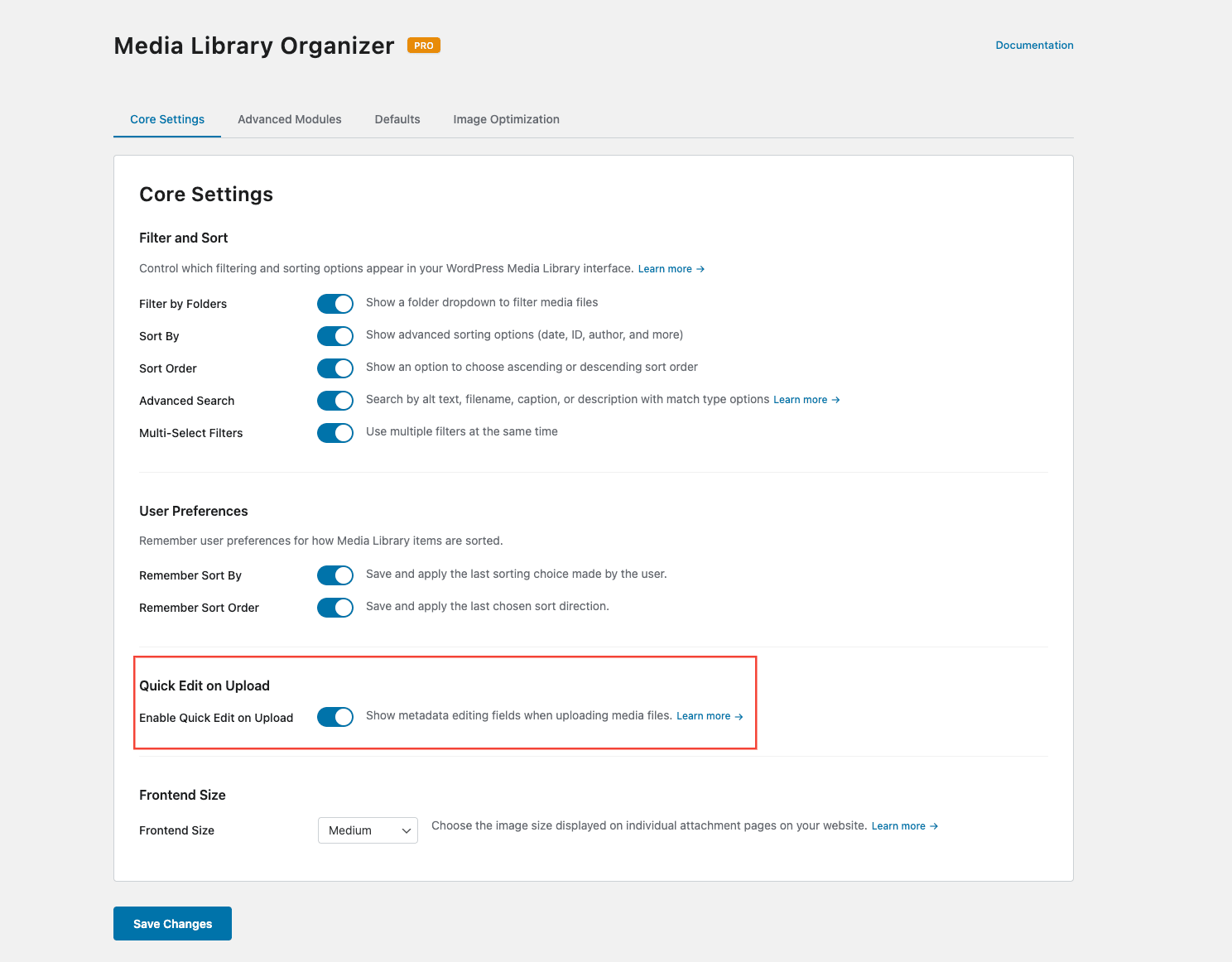 Both Bulk and Quick edit are enabled by Default for PRO version of Media Library Organizer. To enable the Bulk Edit on upload media please follow these steps: