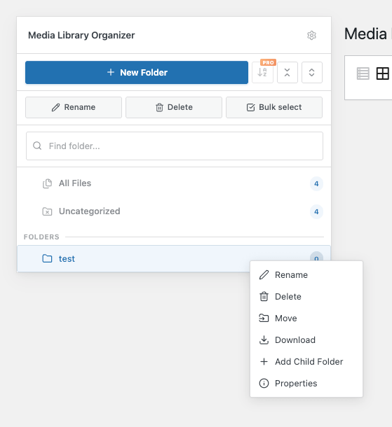 In addition to the standard WordPress category screen, you can manage your folders directly in the Media Library sidebar: