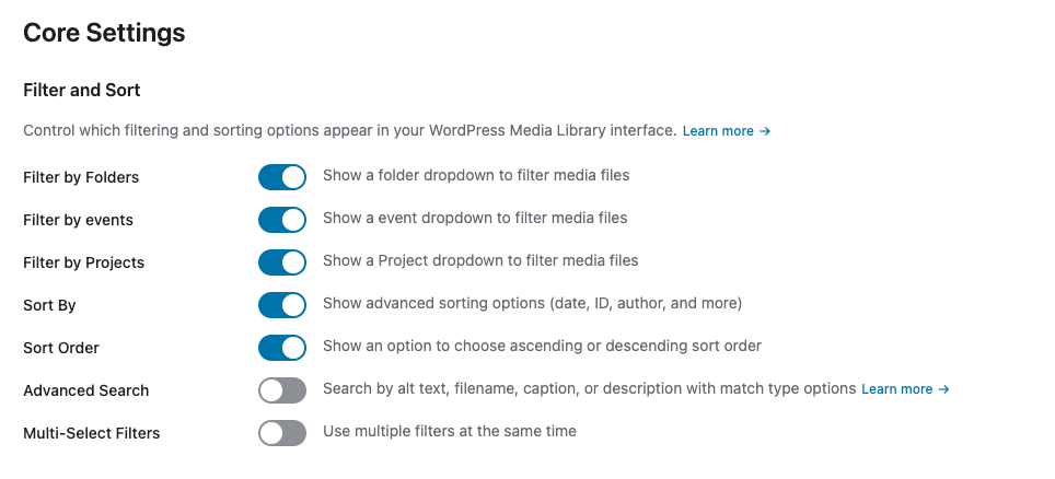 If enabled, you’ll see the Filters in the Media Library: