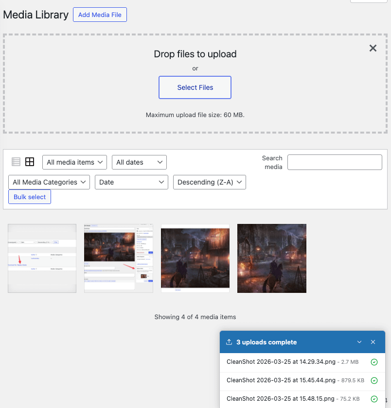 | Uploaded Time | {uploaded_time} | The date when the file was uploaded, using the Date format specified at WordPress Admin > Settings > General > Date Format | 3:54pm |