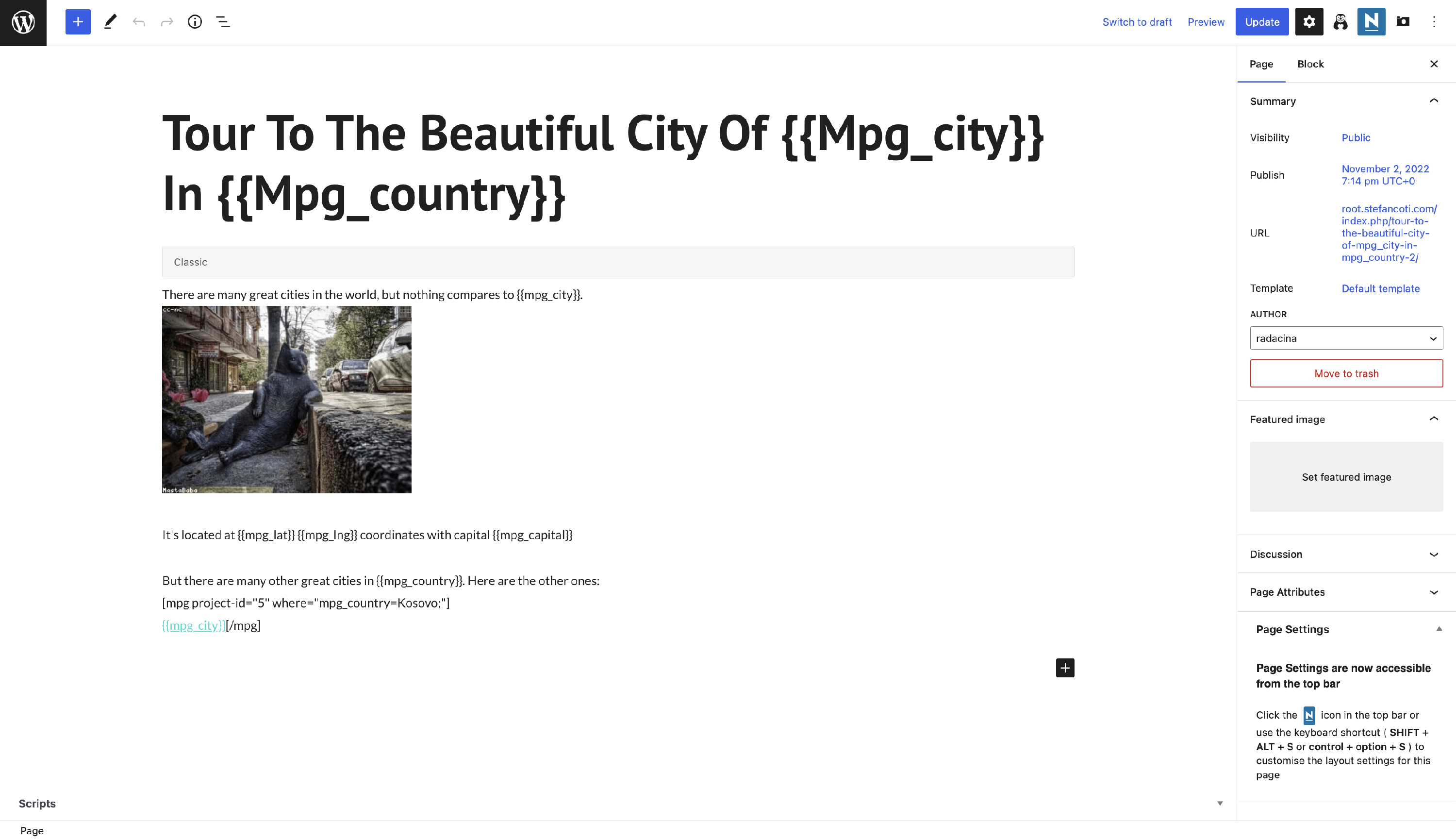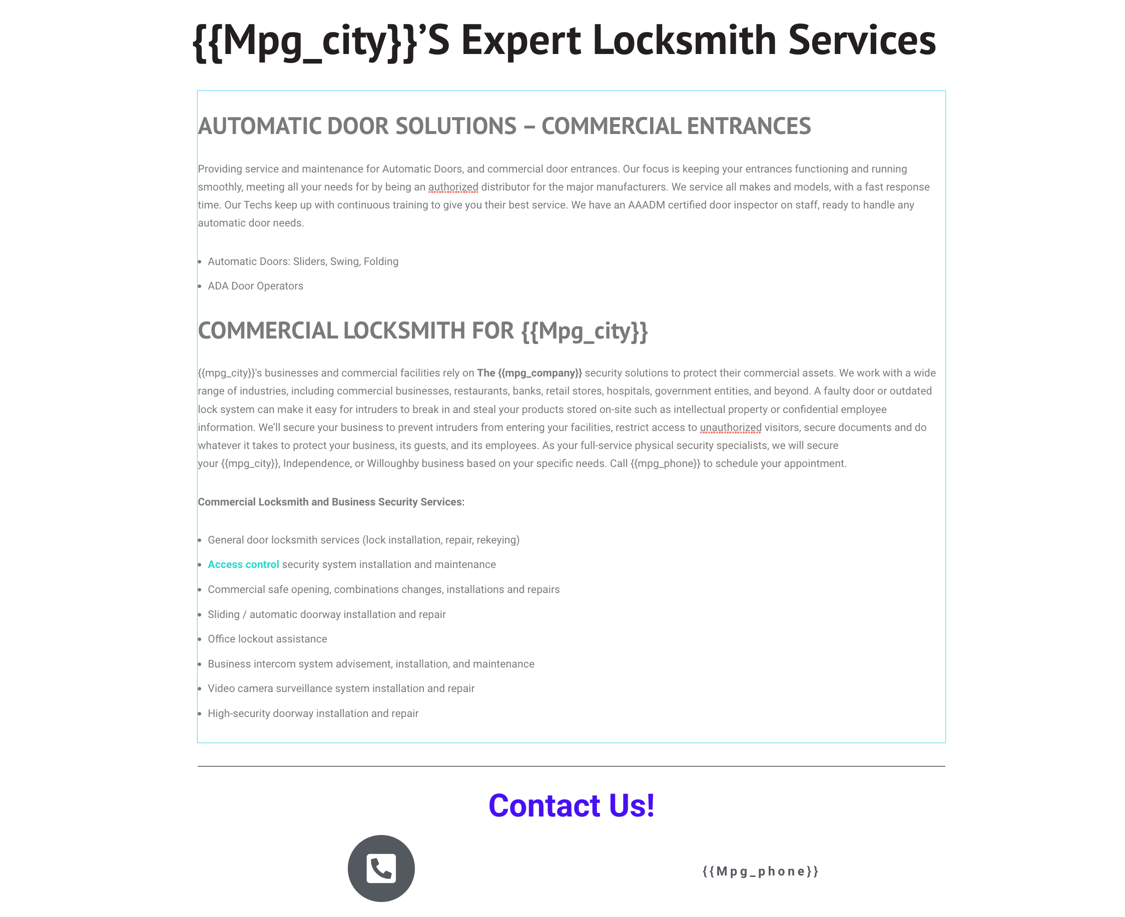 3 Replace any static data from the page you want to use as a template with suitable MPG shortcodes.