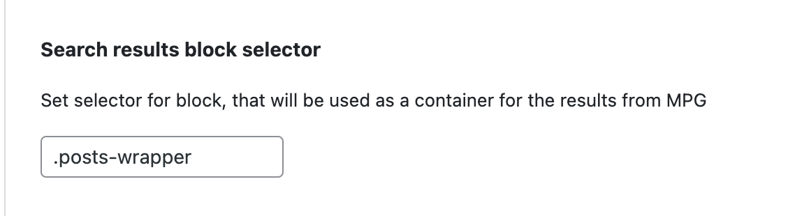 Once we have this element in our clipboard, let's go back to the MPG Search settings and Paste it there: