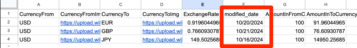 Your source file must contain modified_datecolumn as per the screenshot above and the corresponding value will be used as a modified date for each generated page each time the data is fetched.