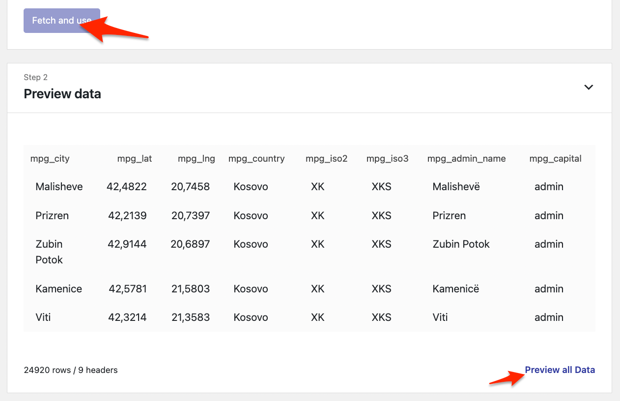 Click on the Fetch and use button to sync the data, and click on Preview if you want to check how it looks.
