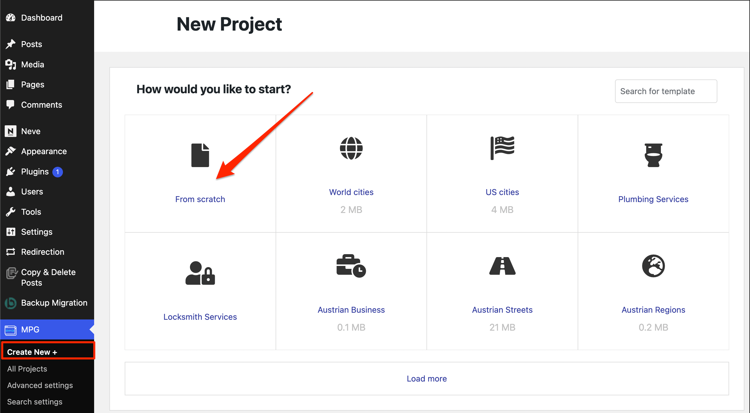 The MPG plugin offers two types of page generation: using a template and from scratch.