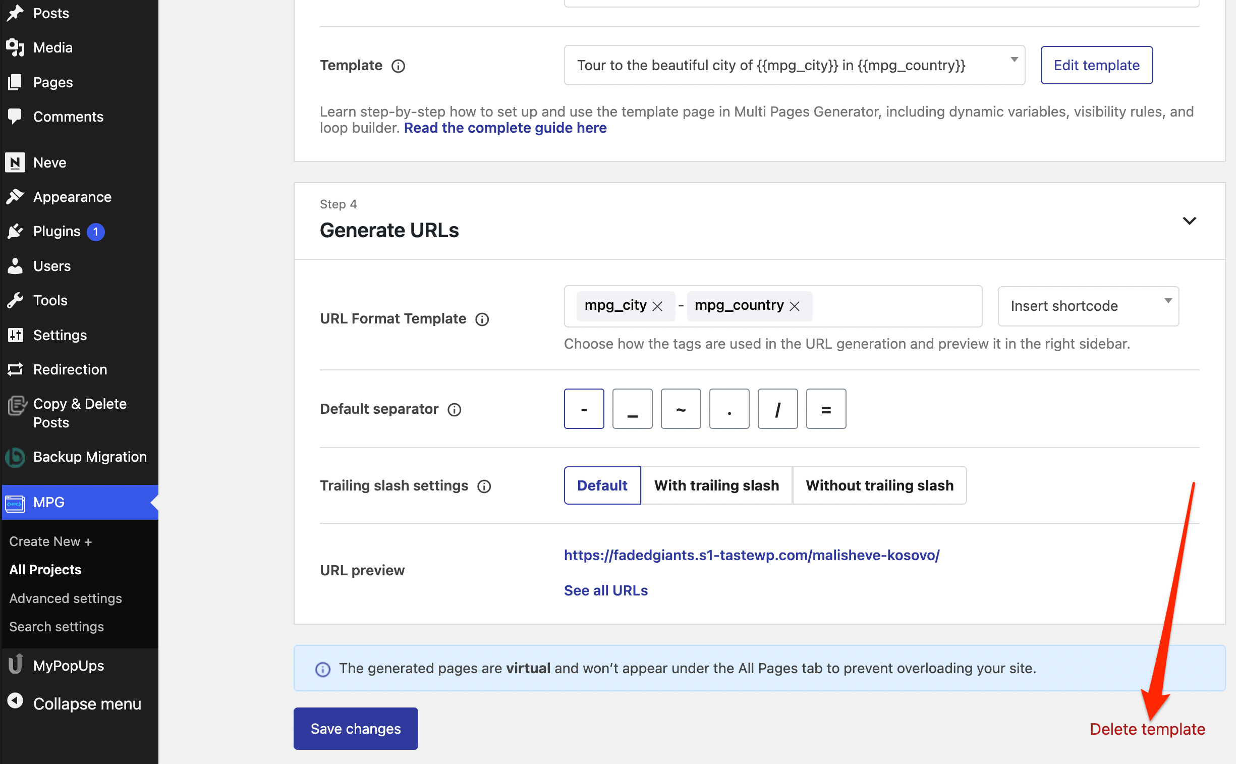 The URL Generation is a very important part of the plugin because it ensures the accessibility of the pages. Here you can establish the format of the URLs and some other settings.