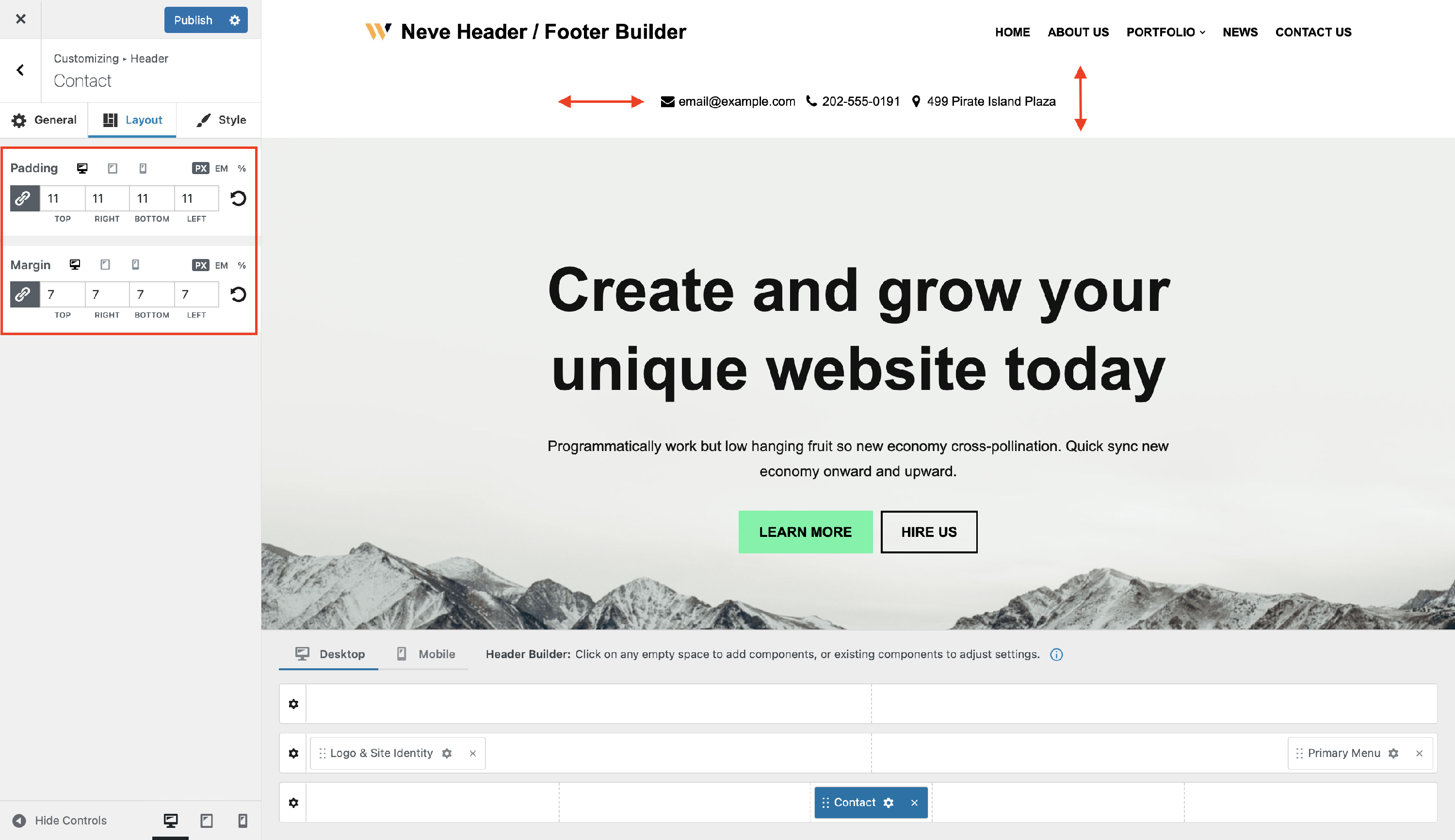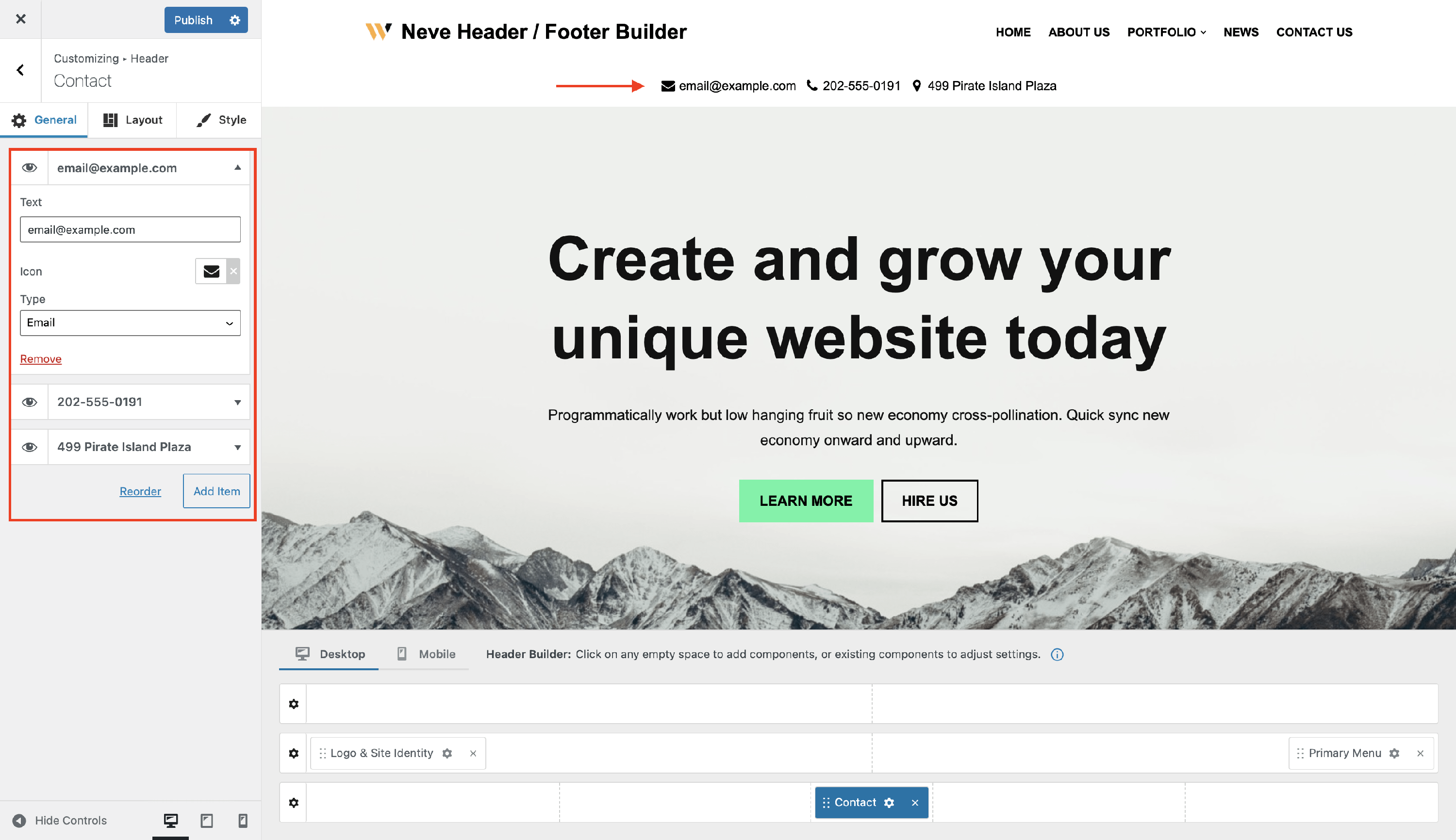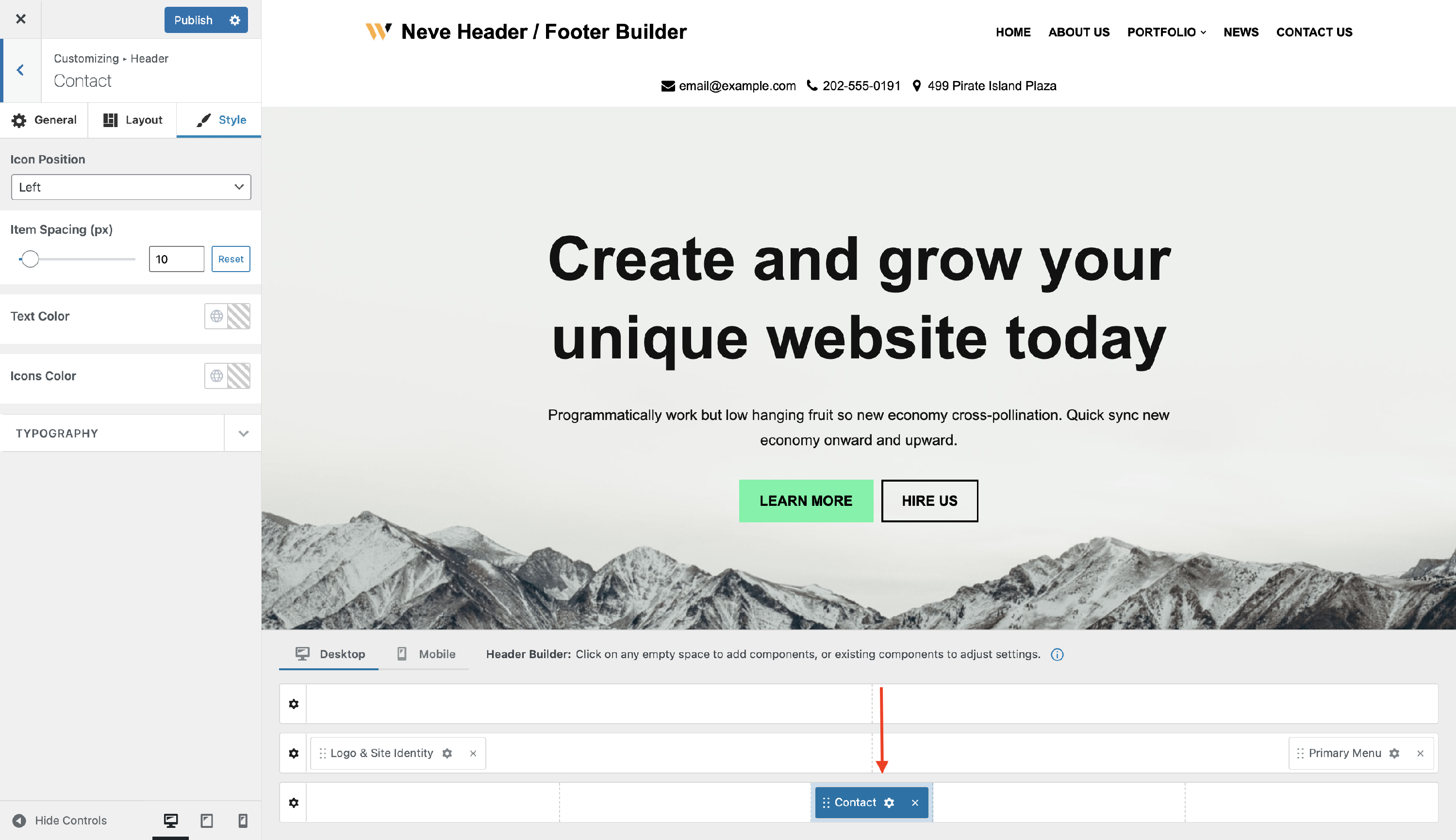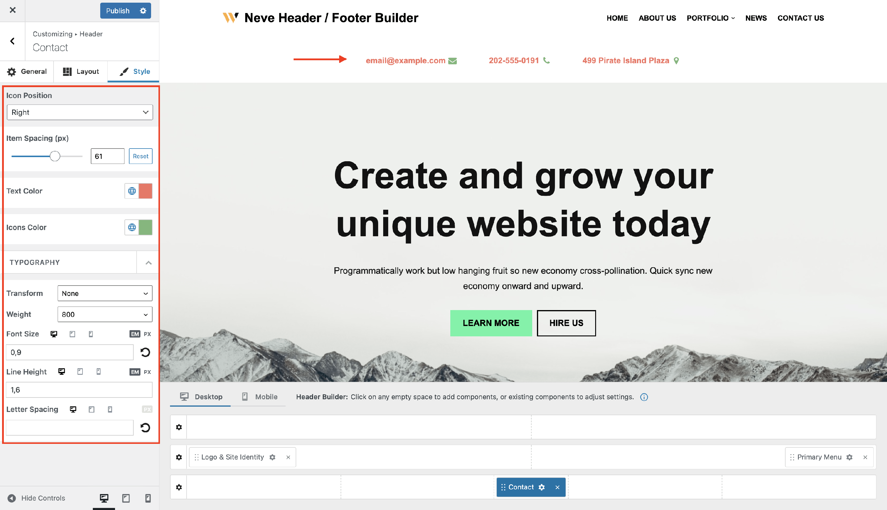 The Contact Component - Neve Header / Footer Builder (PRO)