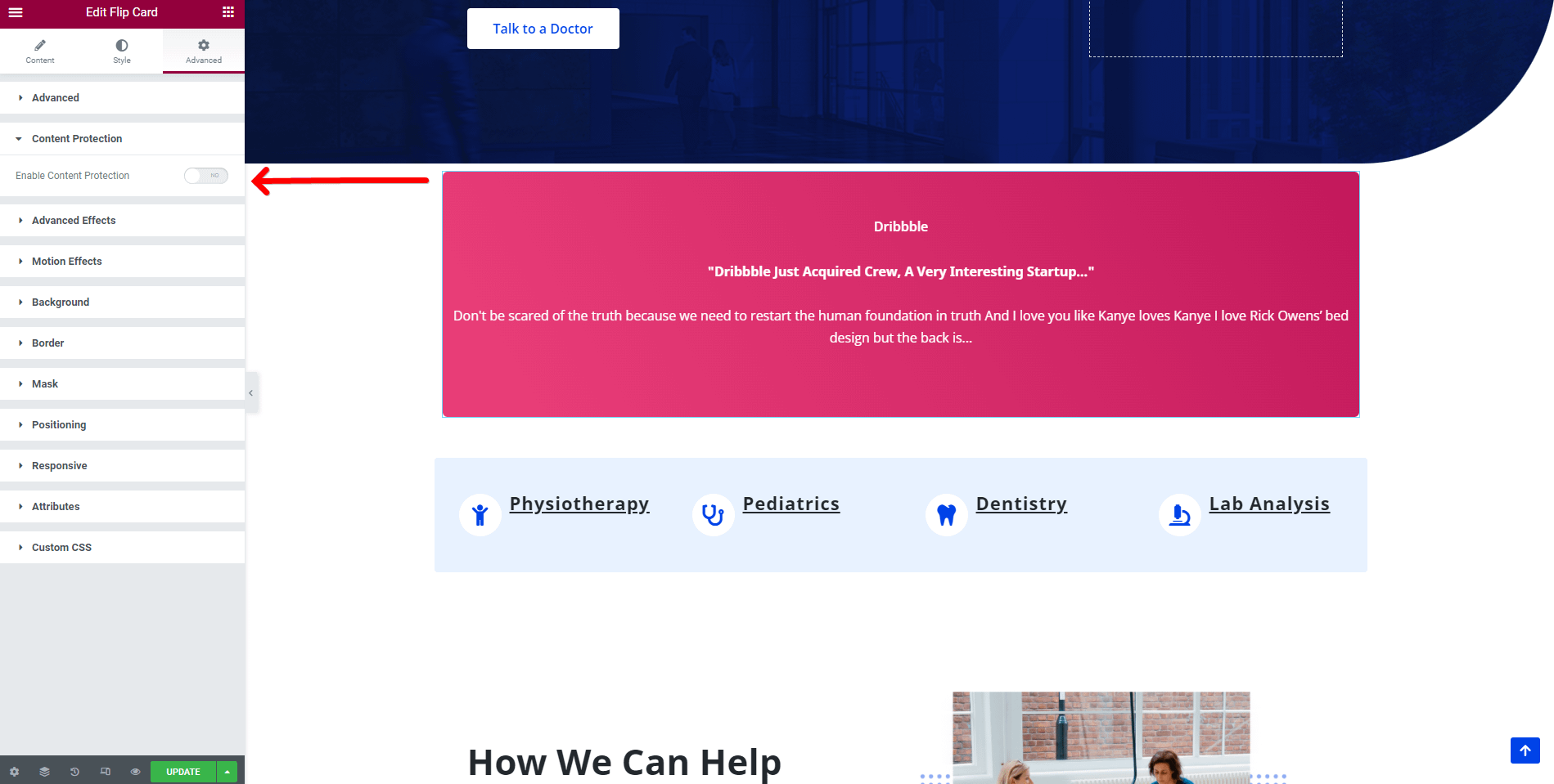 📝 Note: The Content Protection option is part of Neve PRO's Elementor Booster module.