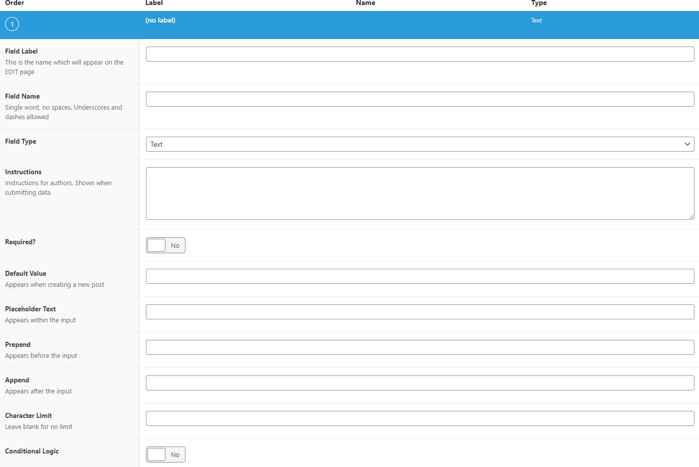 - Label - this will display a default text into the field.