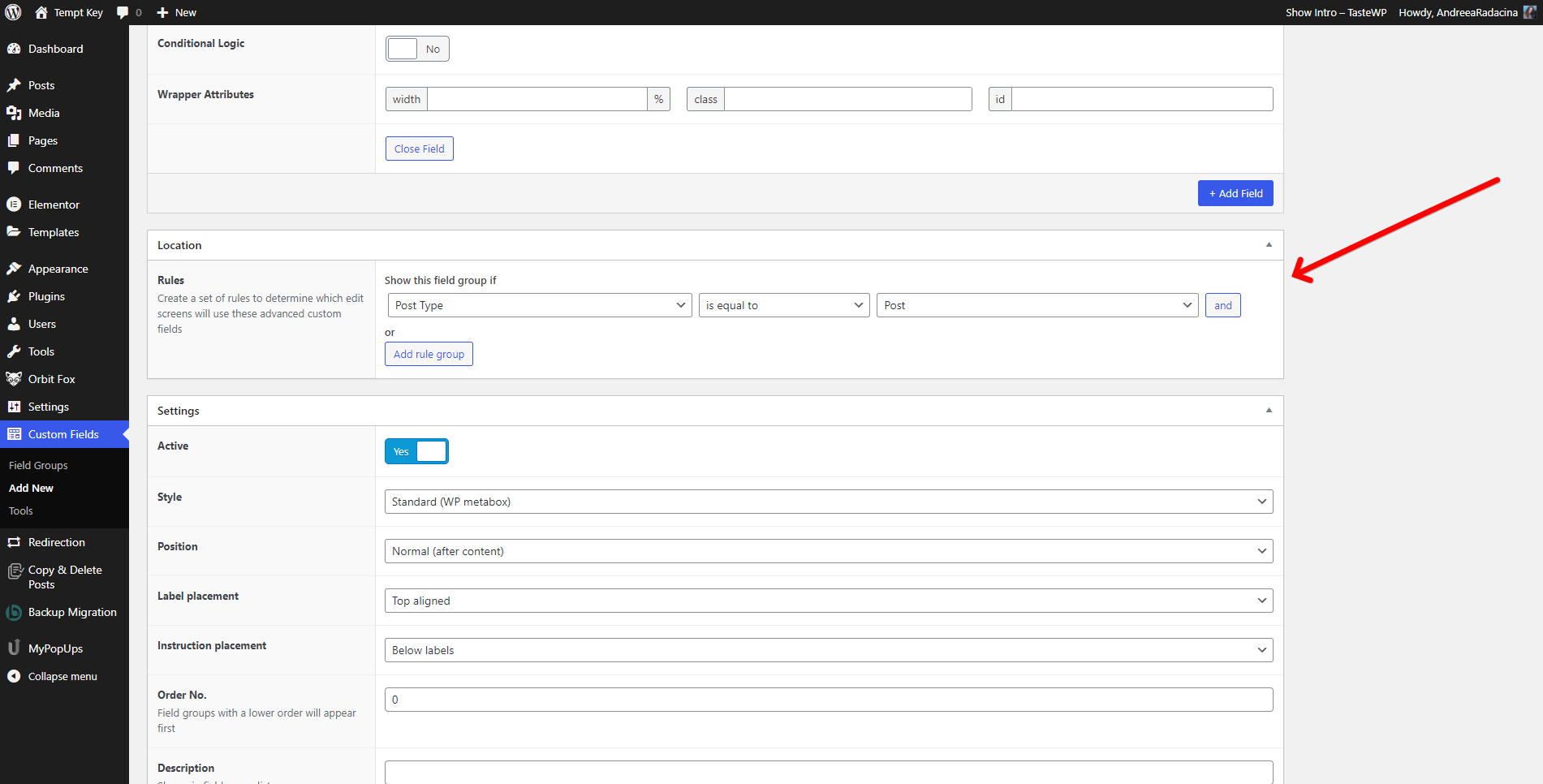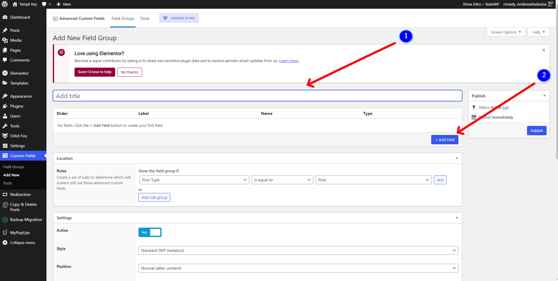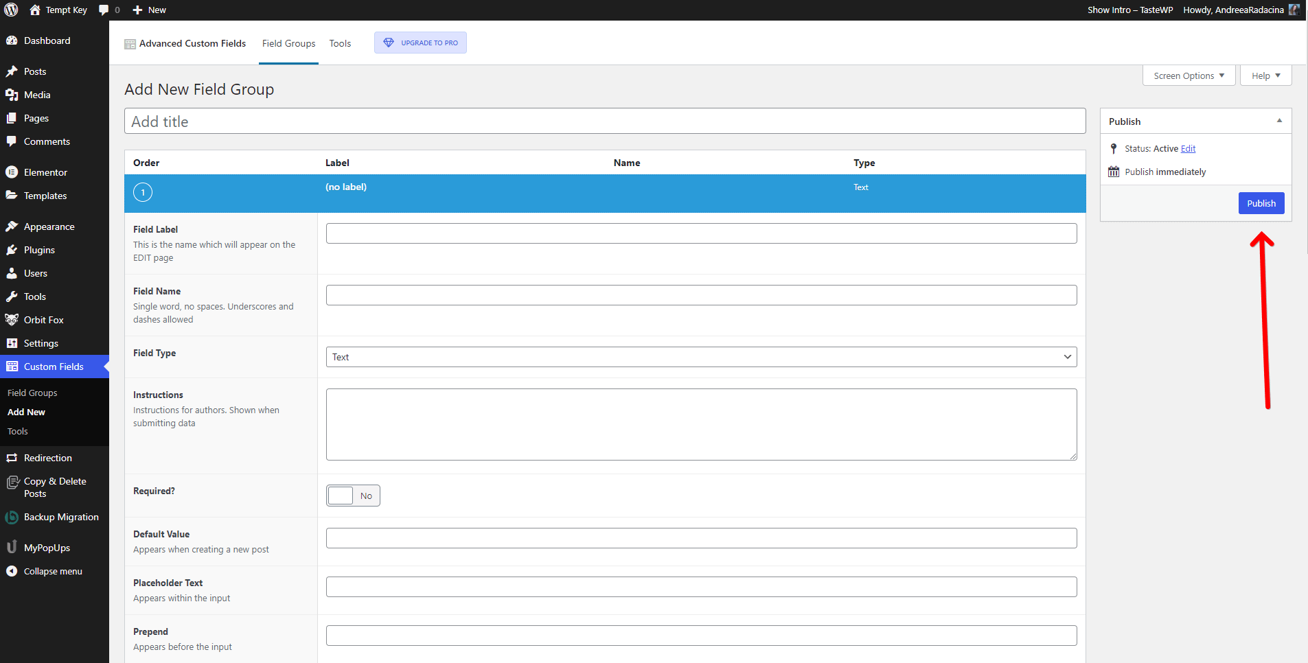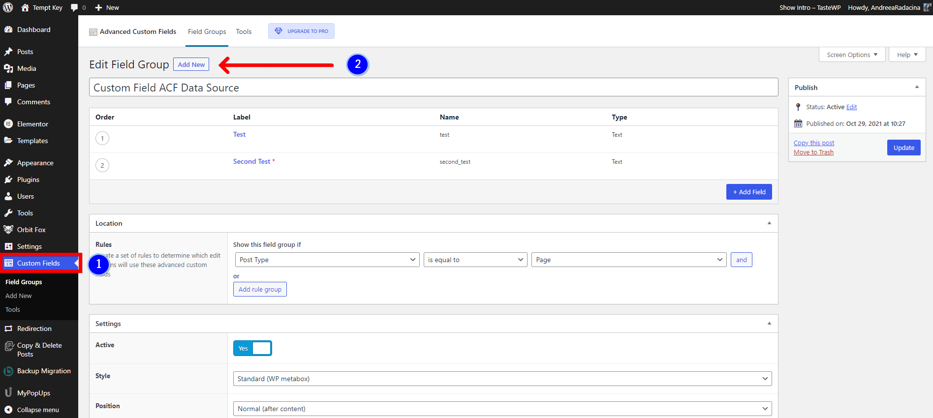- Step 3: Create a new field group with the fields you want to use, by clicking on the Add New button.