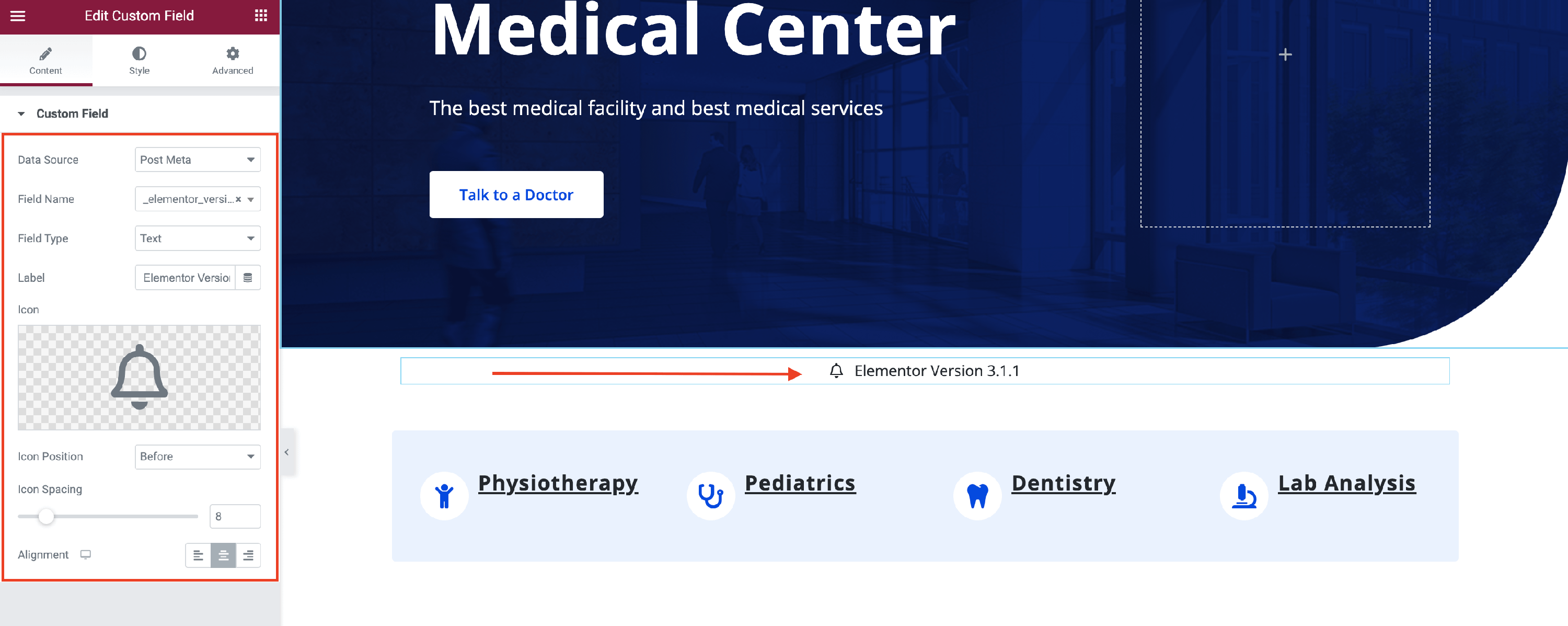 💡Result - when you will open the Elementor Editor and insert the Custom Field widget, with the ACF as Data Source, this will be the result: