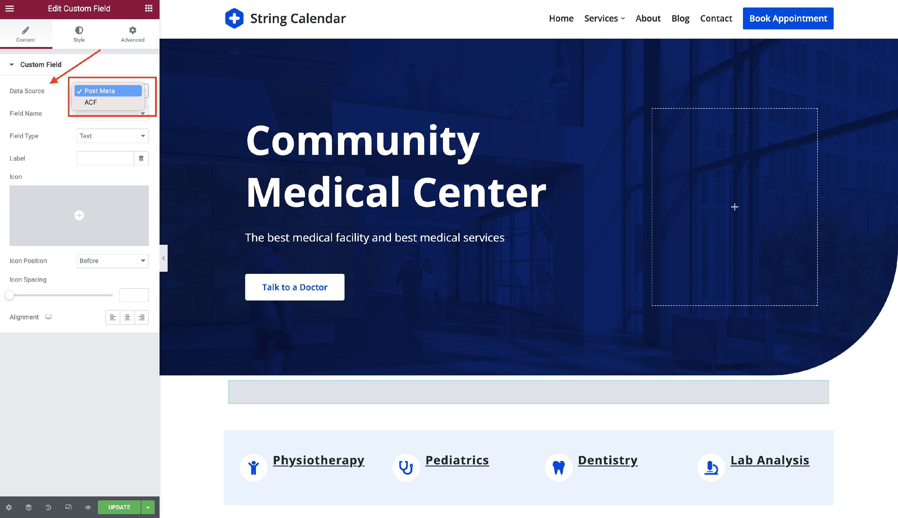 - Step 1: Select the Post Meta option for the Data Source.