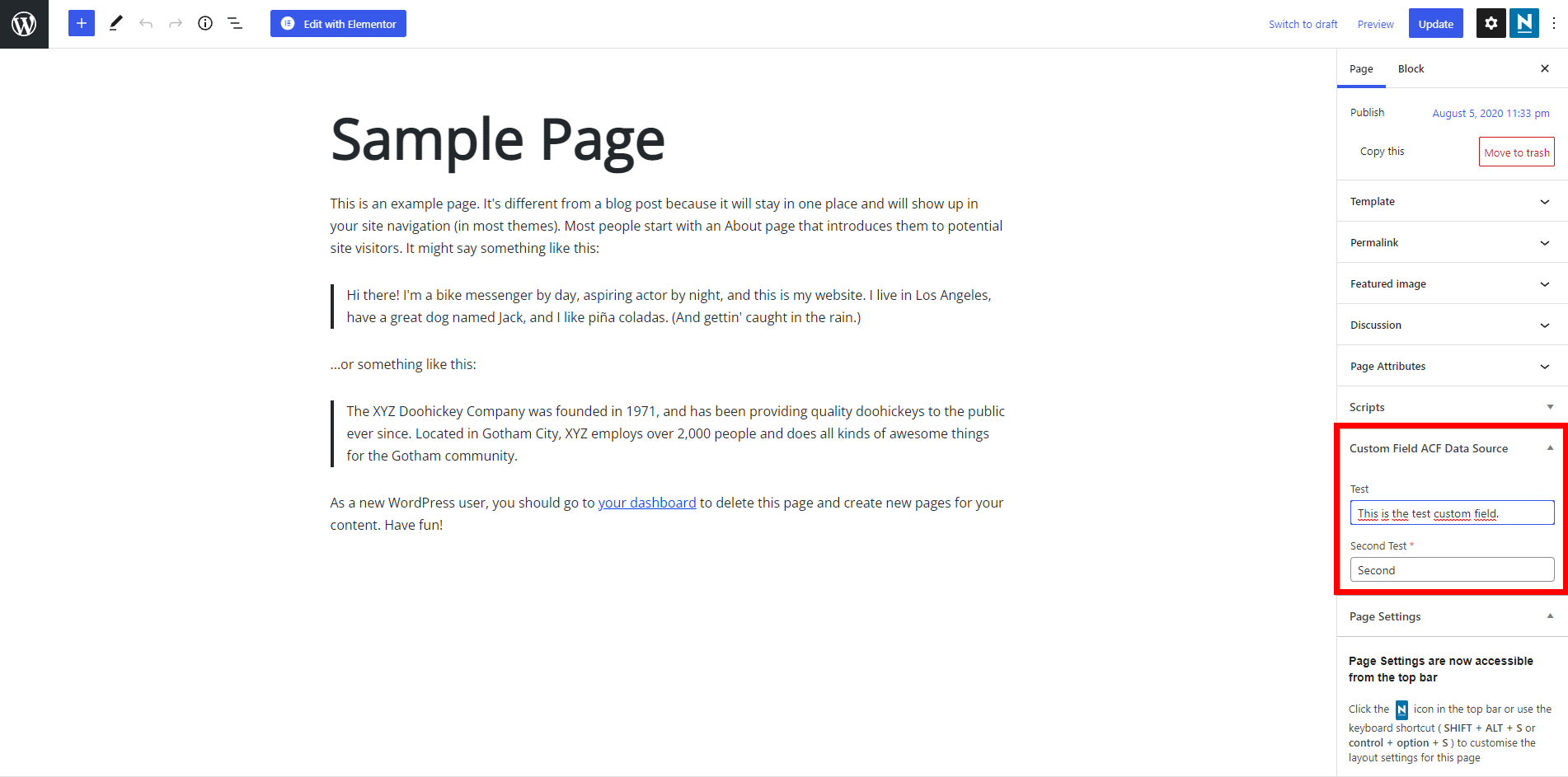 - Step 8: Navigate to the page of your choice and fill in the custom fields and save the page.
