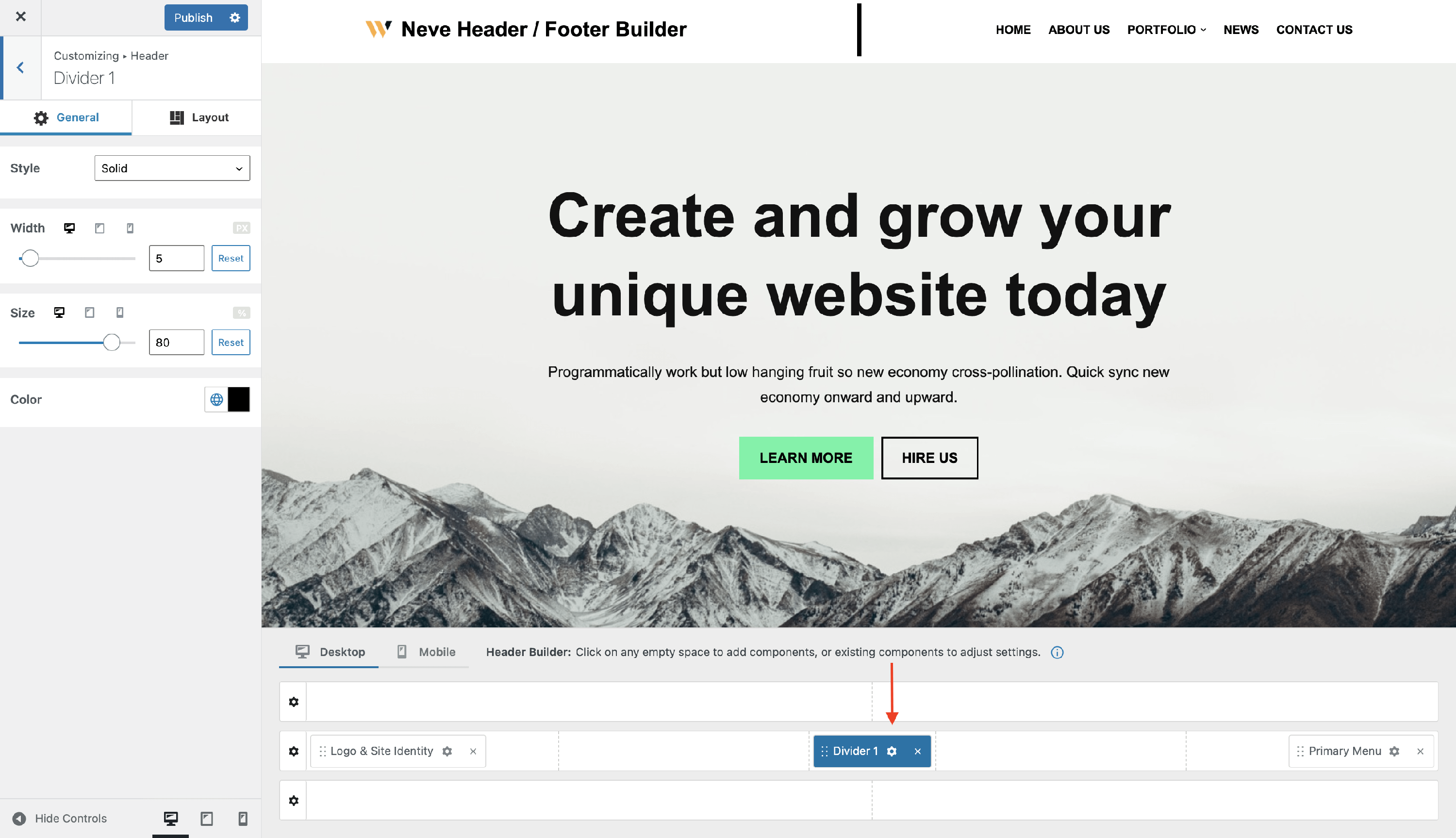 The Divider Component - Neve Header / Footer Builder (PRO)