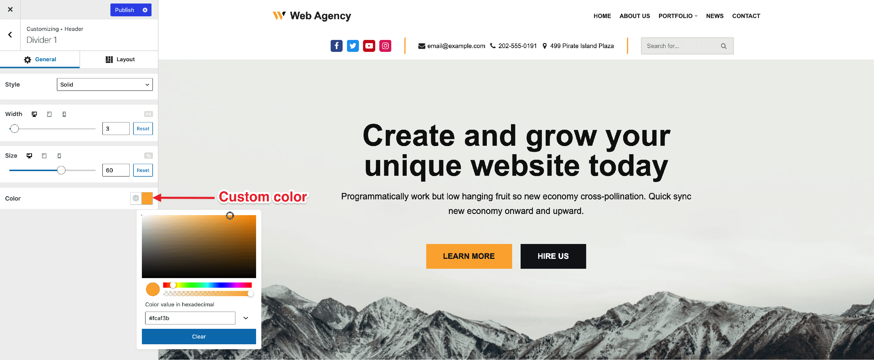 Set the divider color. This control also allows you to use one of the global colors of Neve.