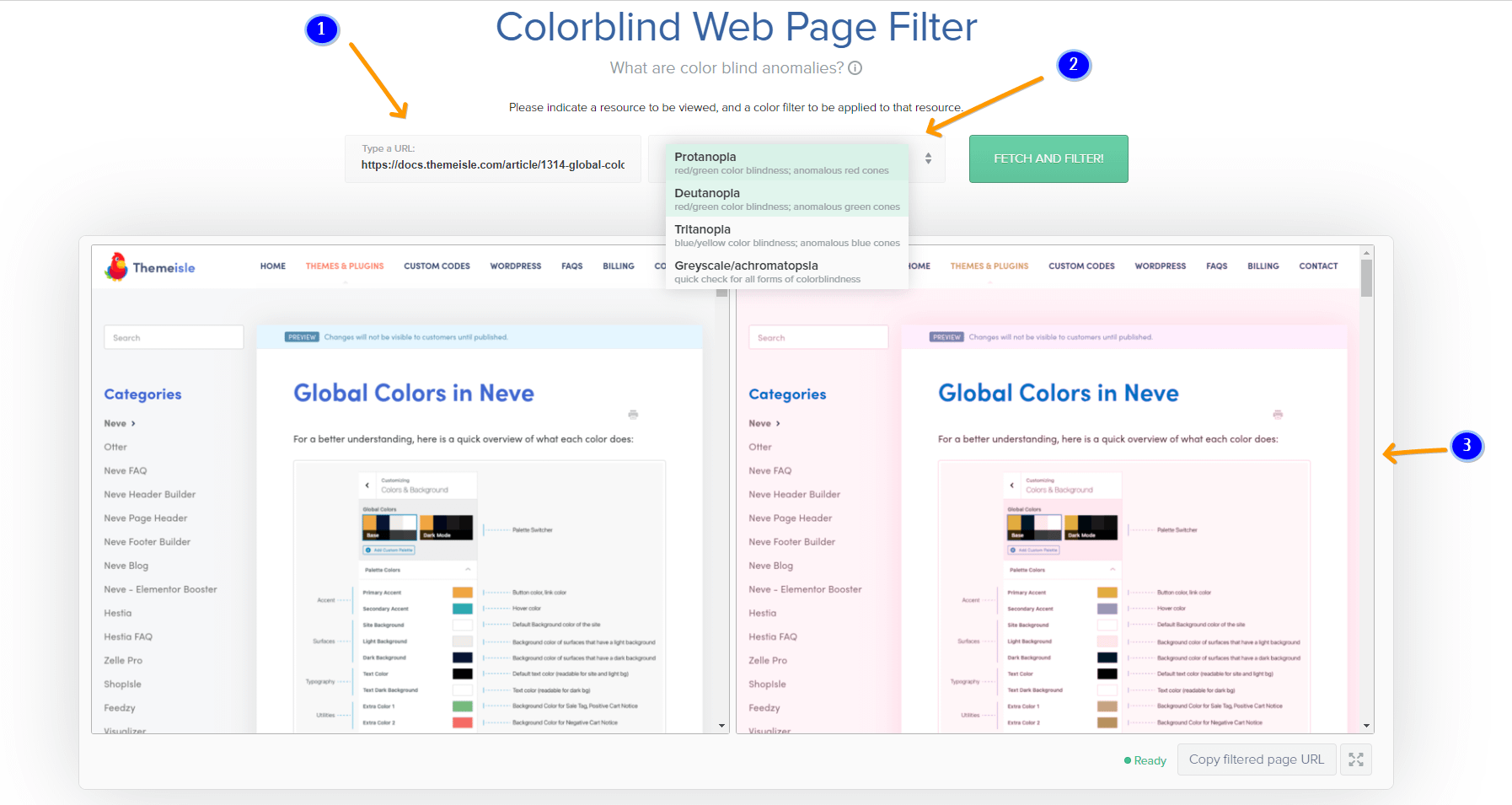 - Colorblind Web Page Filter - helps you see how the website looks to people with different types of color blindness.