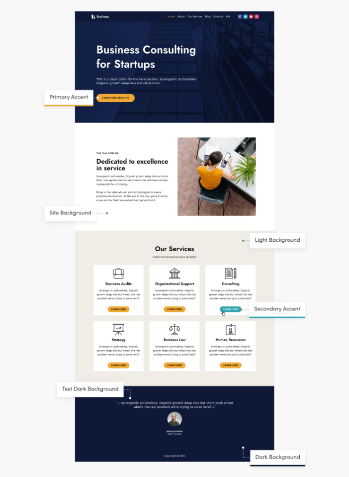 And here is a Starter Site example, using the same Color Palette: