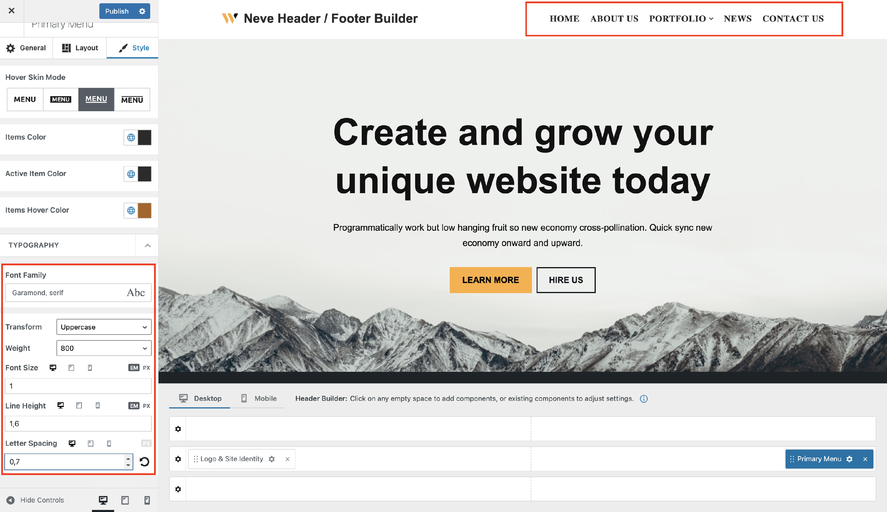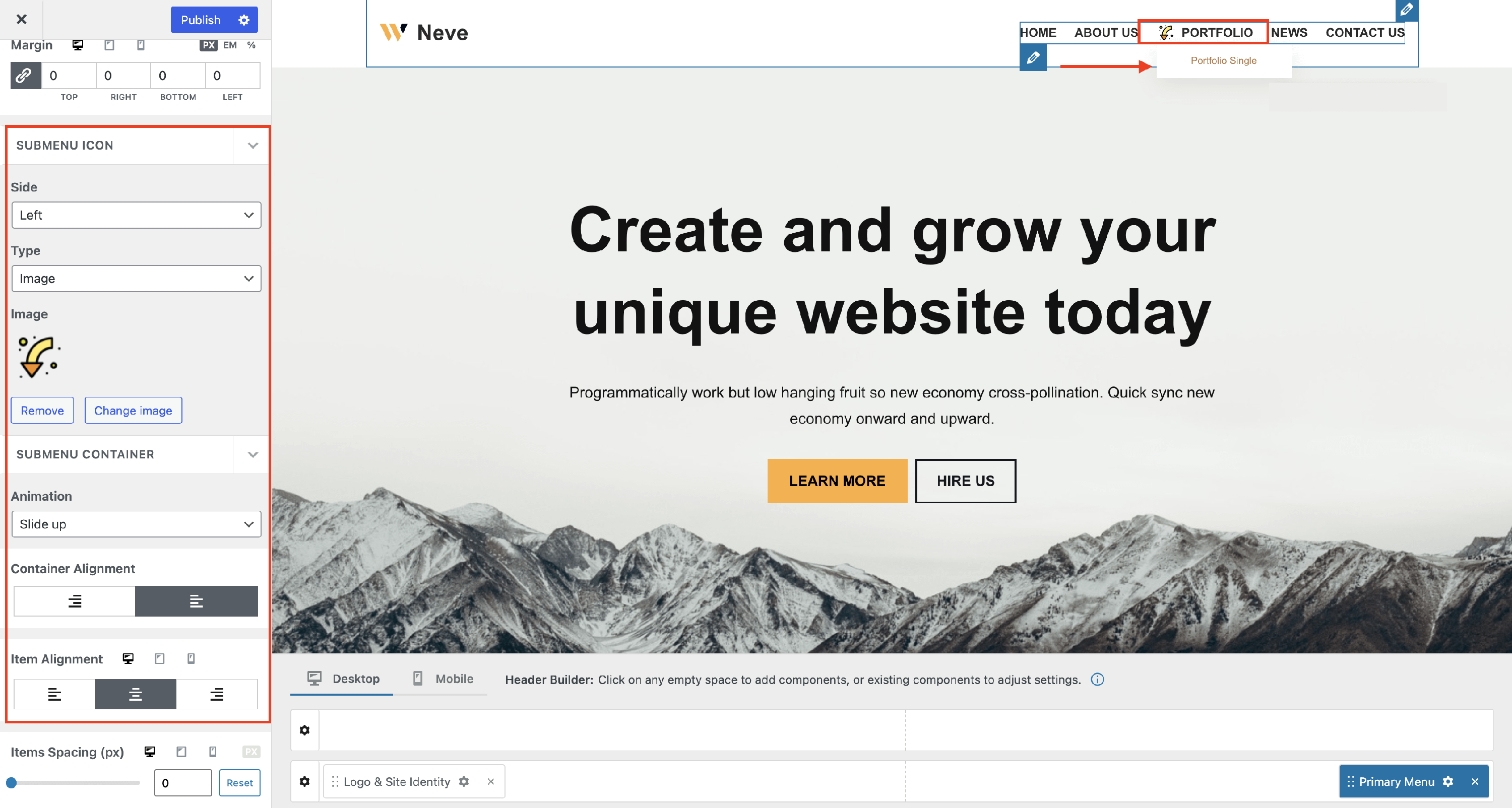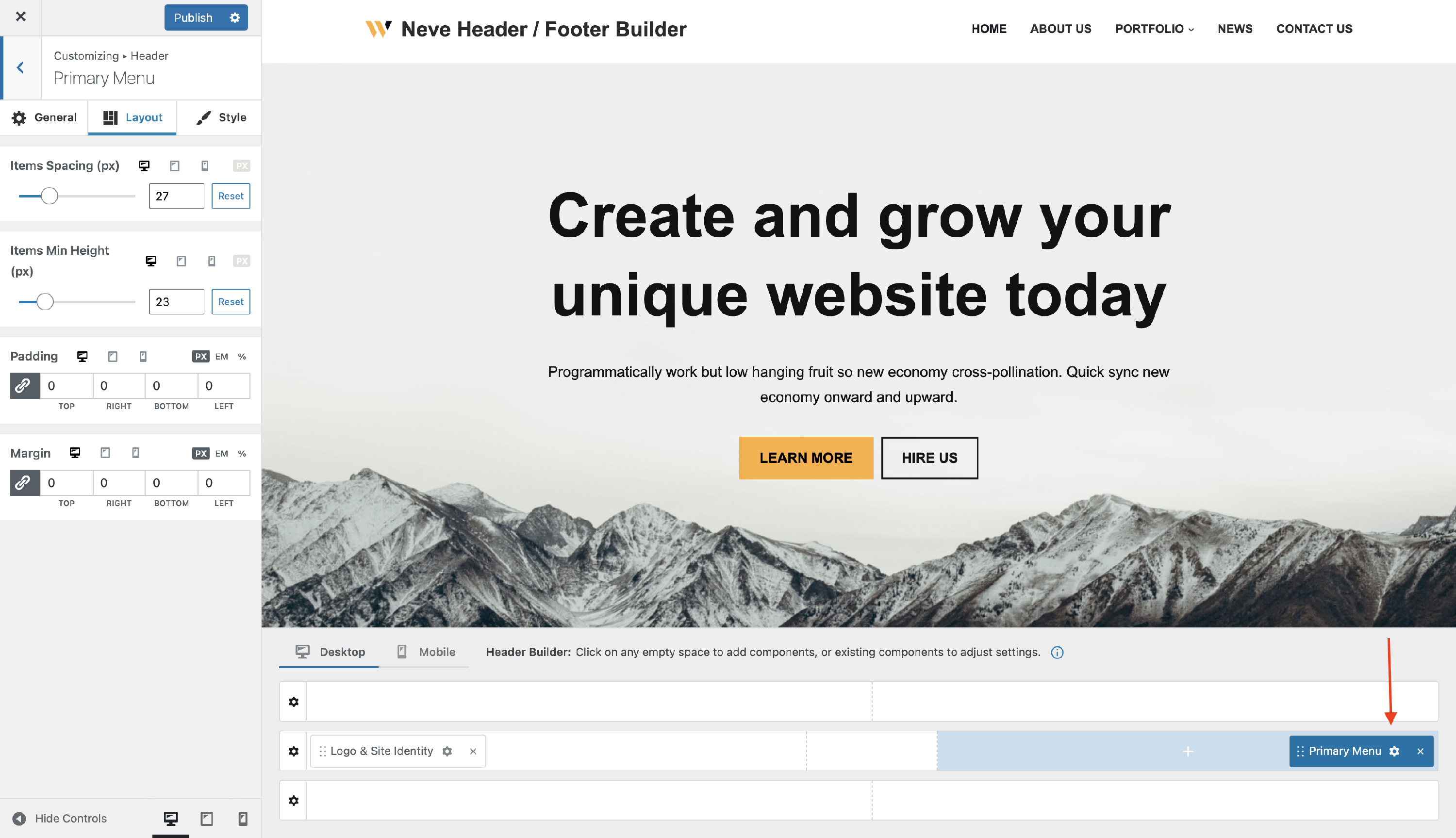 The Primary Header Menu Component - Neve Header / Footer Builder