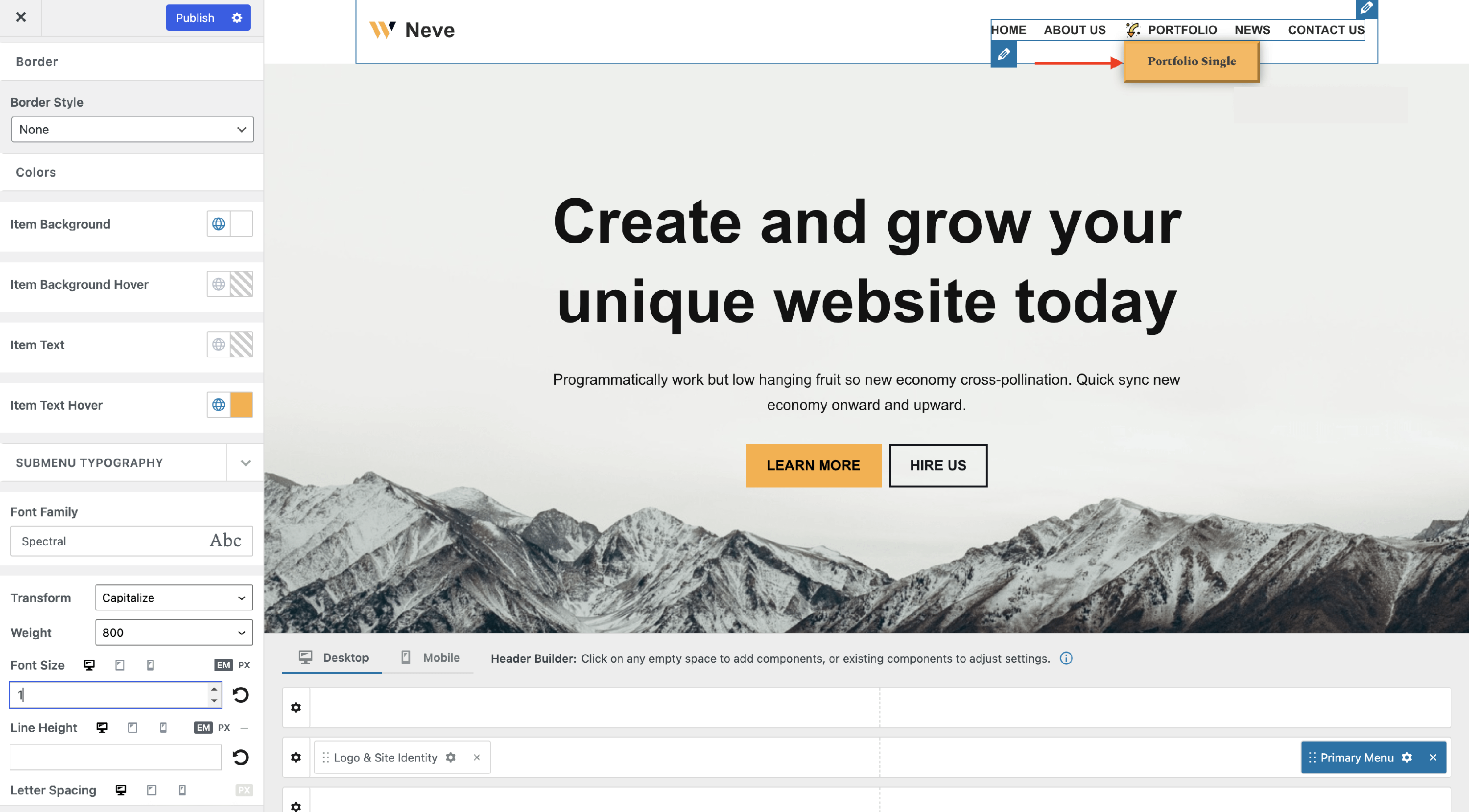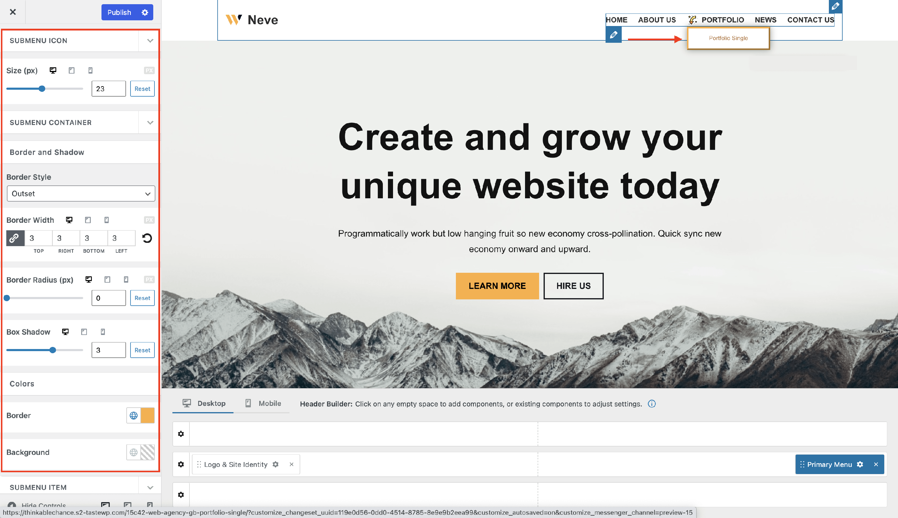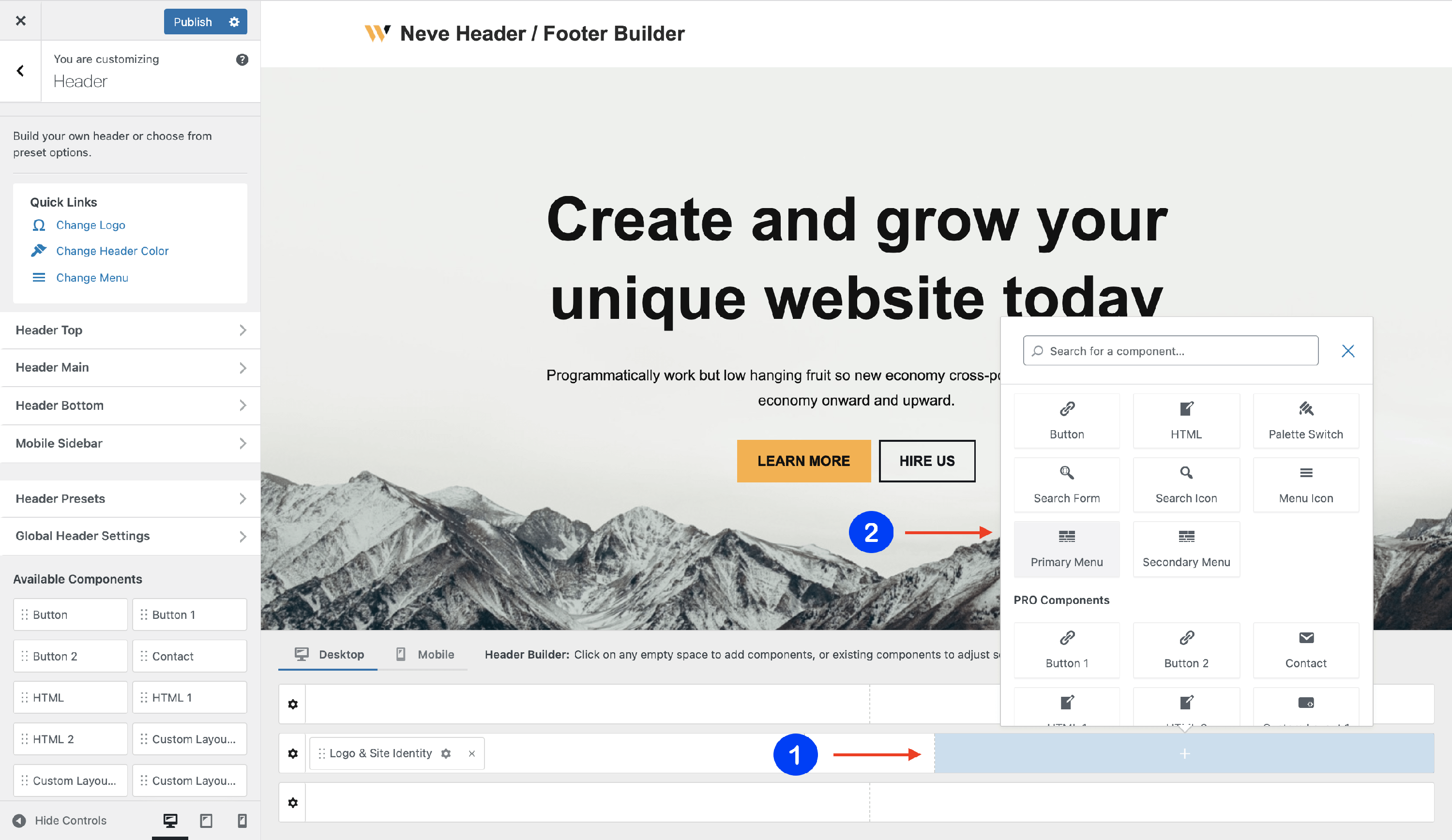 The Primary Header Menu Component - Neve Header / Footer Builder