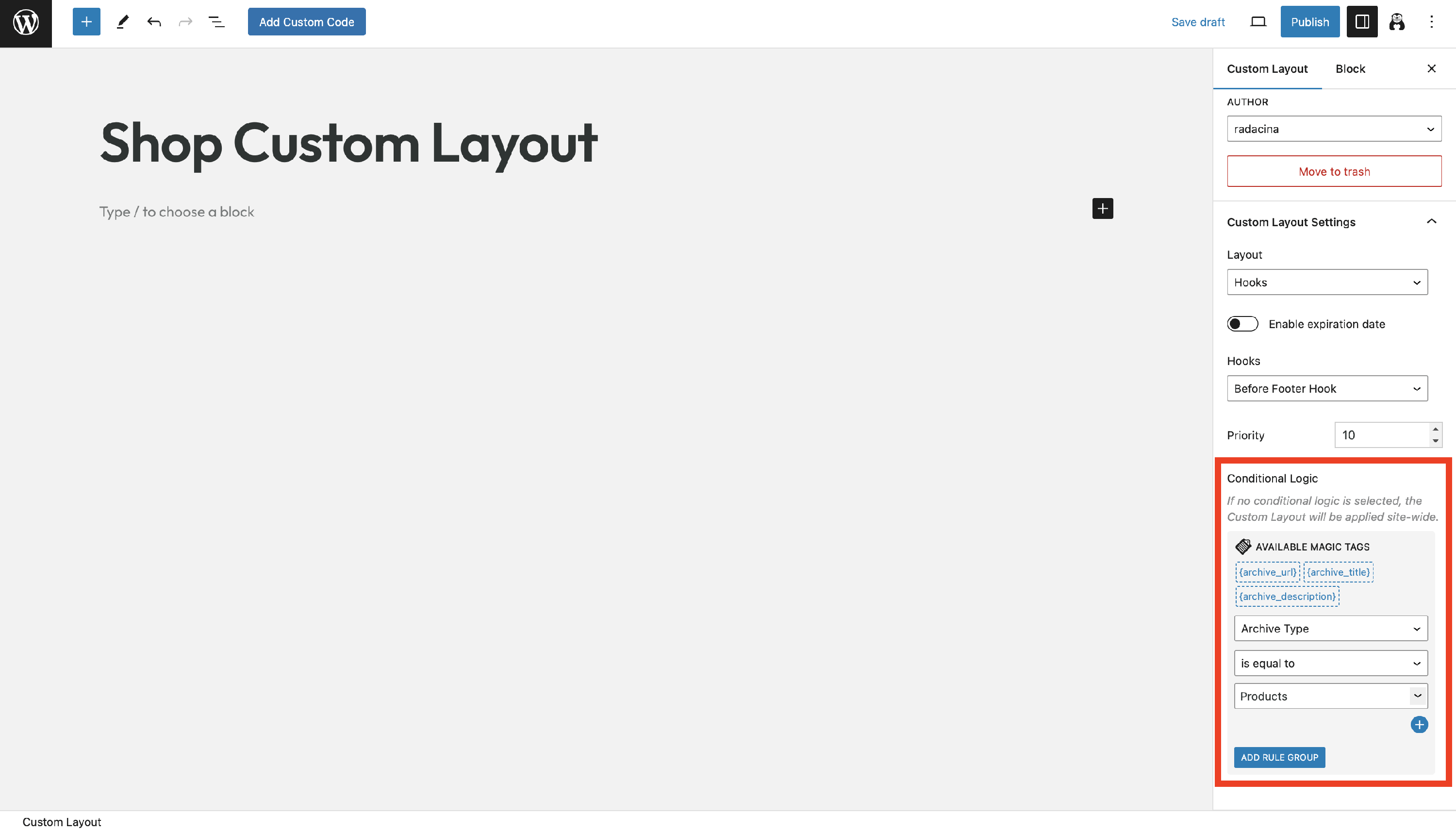 📝 Note: Learn more about the magic tags in custom layouts from this doc.