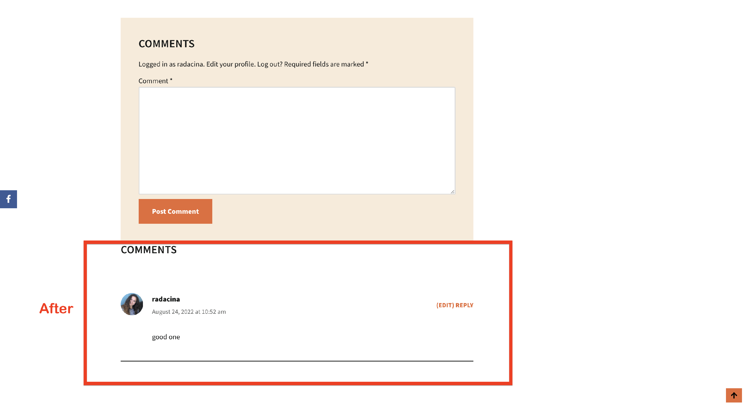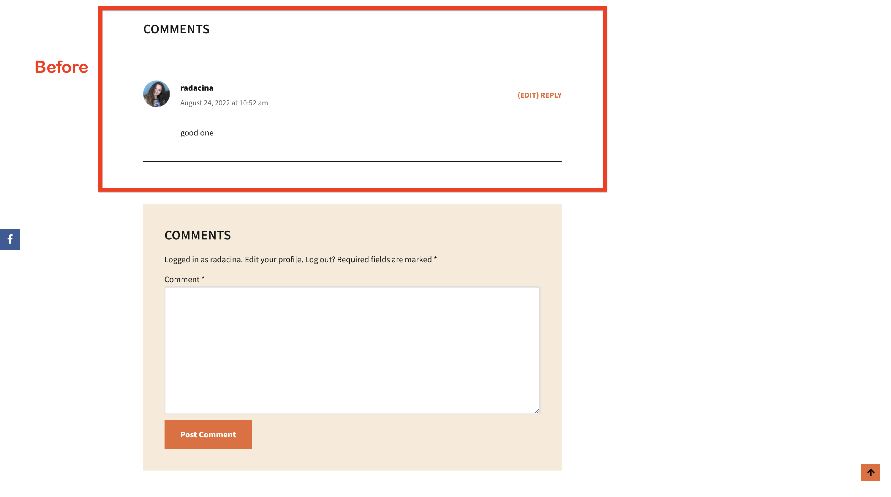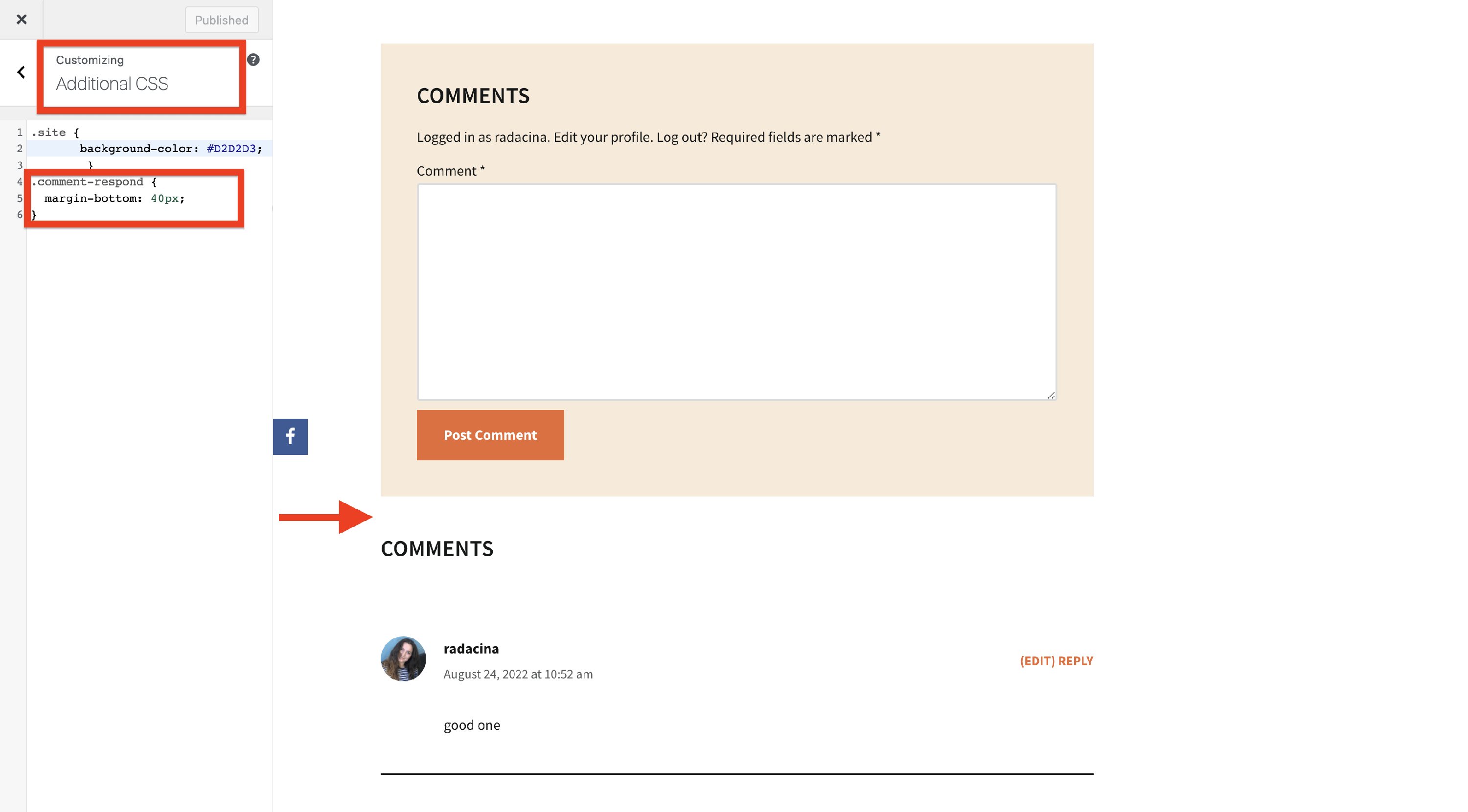 Moreover, if you want to add extra space between the title and the comments area, add this code snippet inside Customizer > Additional CSS: