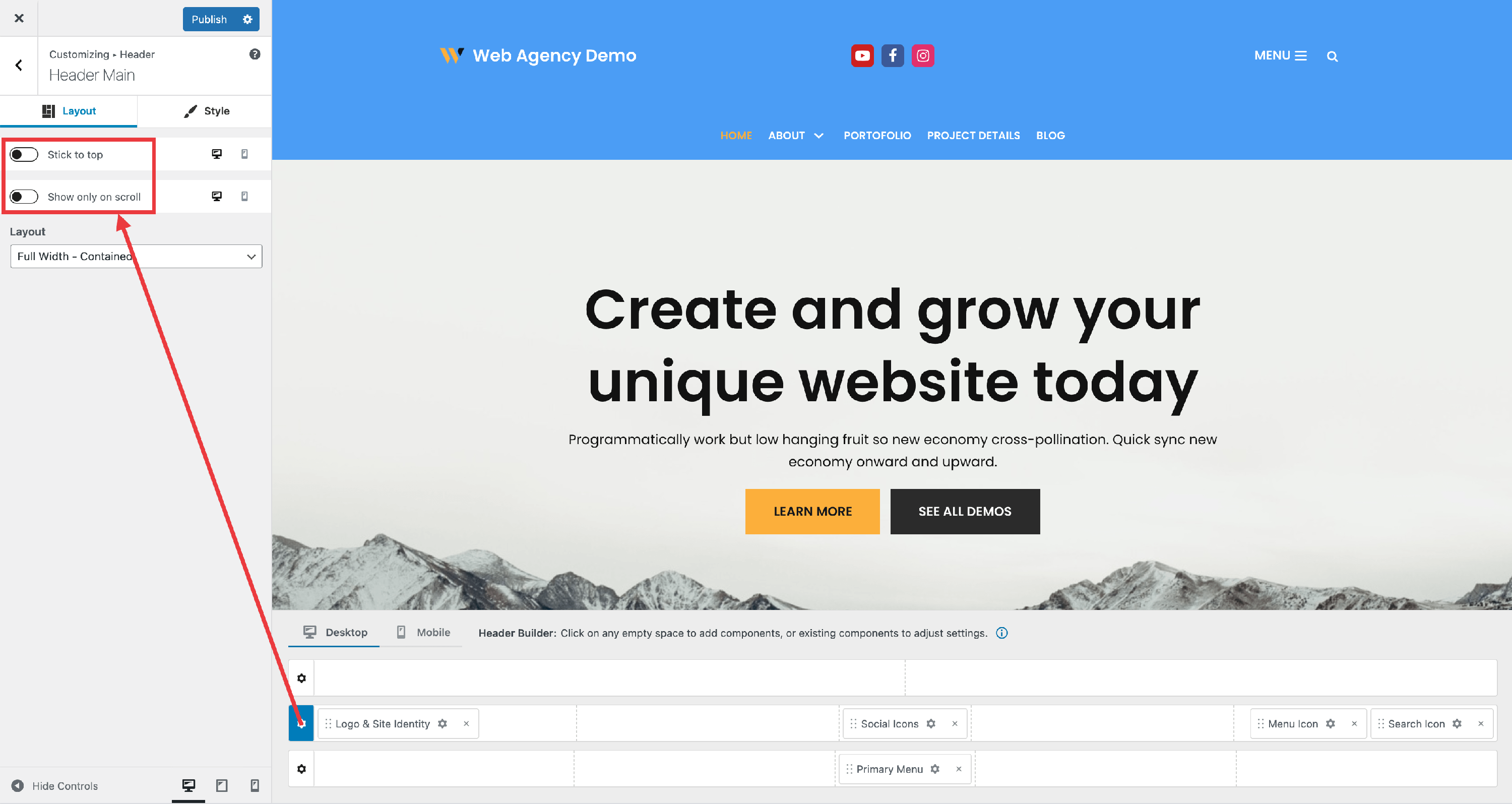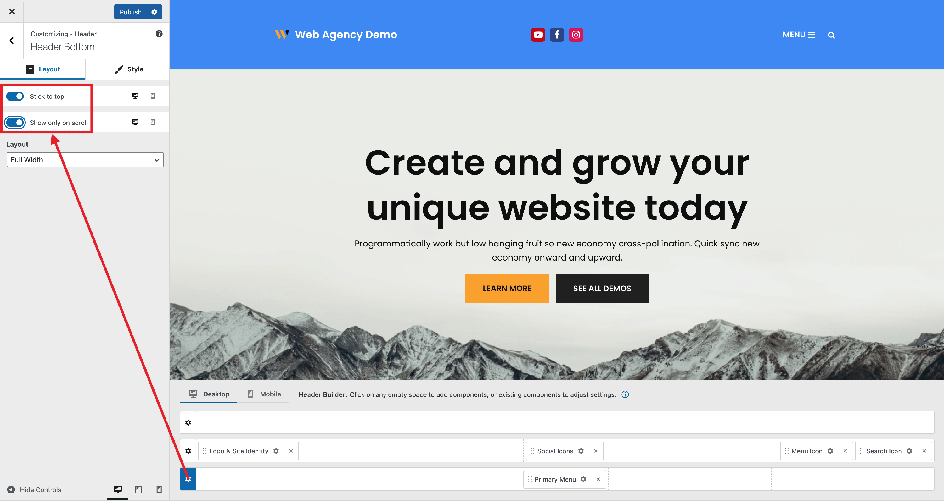 In this doc, you will learn how to shrink the sticky header on scroll. Just follow the steps below.