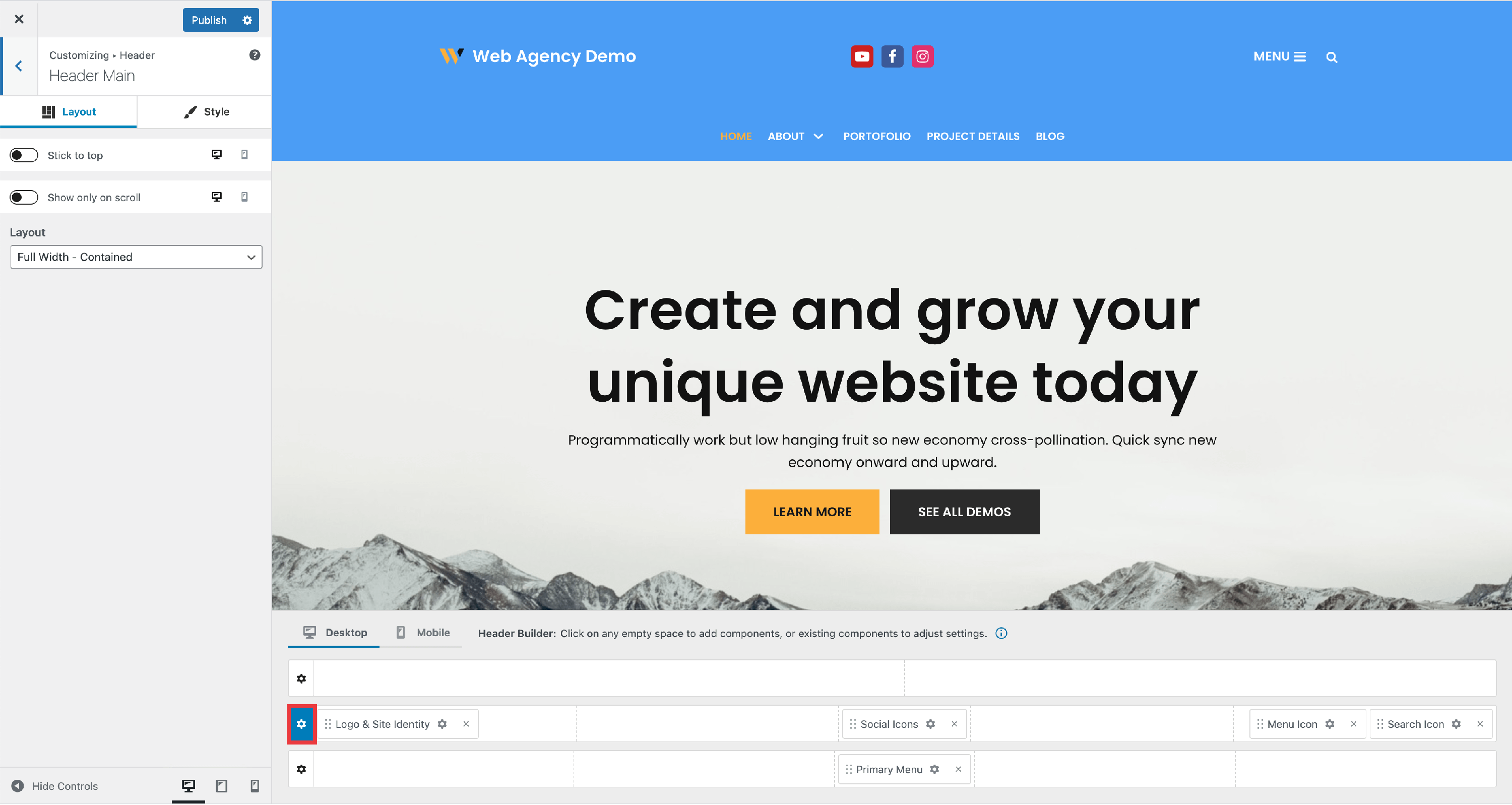 Neve Pro Addon's Header Booster module brings in a new level of customizations in Neve. Using the multiple components and the Sticky and Show only on scroll options you can easily build the header you wish for your site.