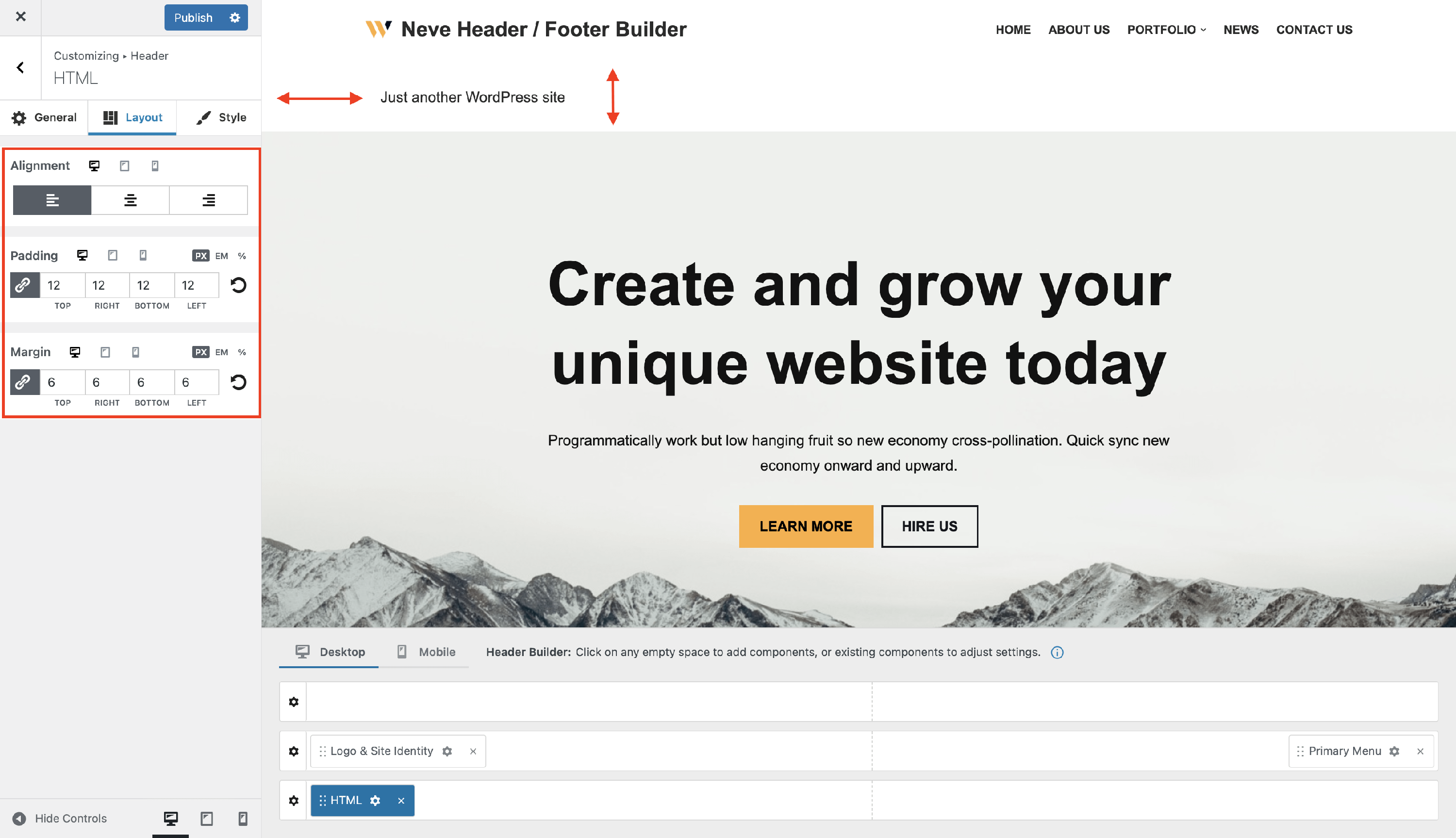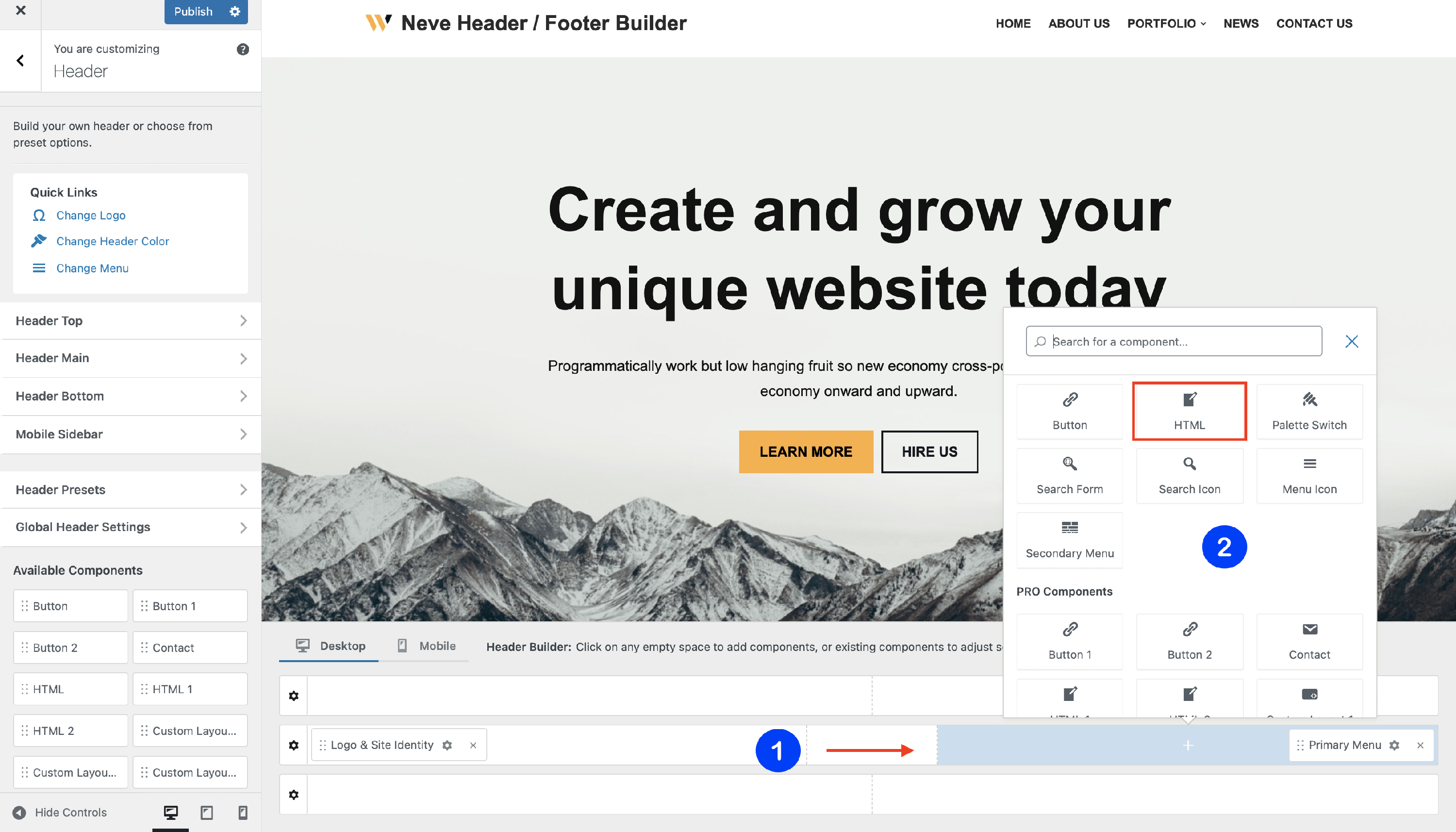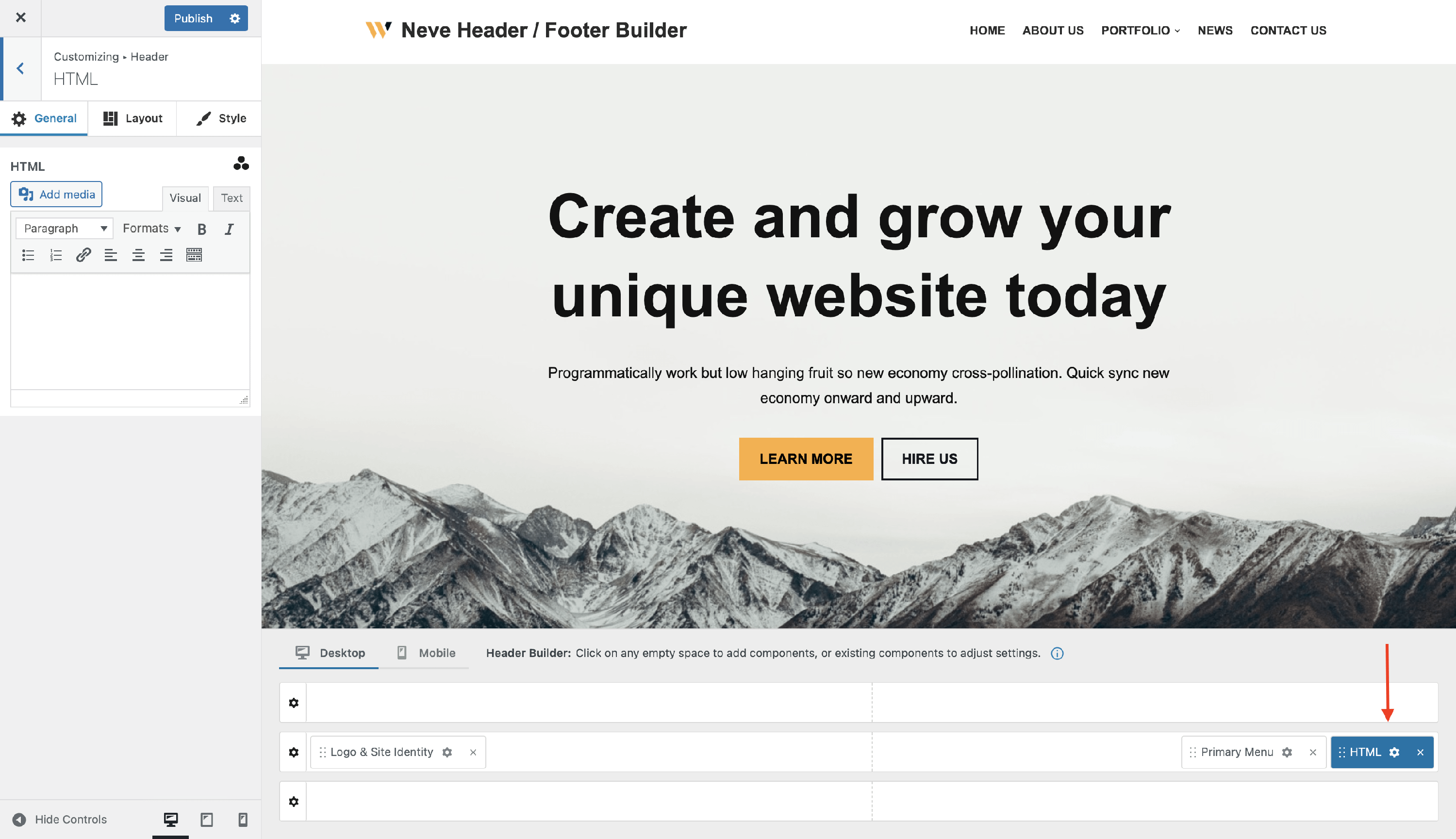 The HTML Component - Neve Header