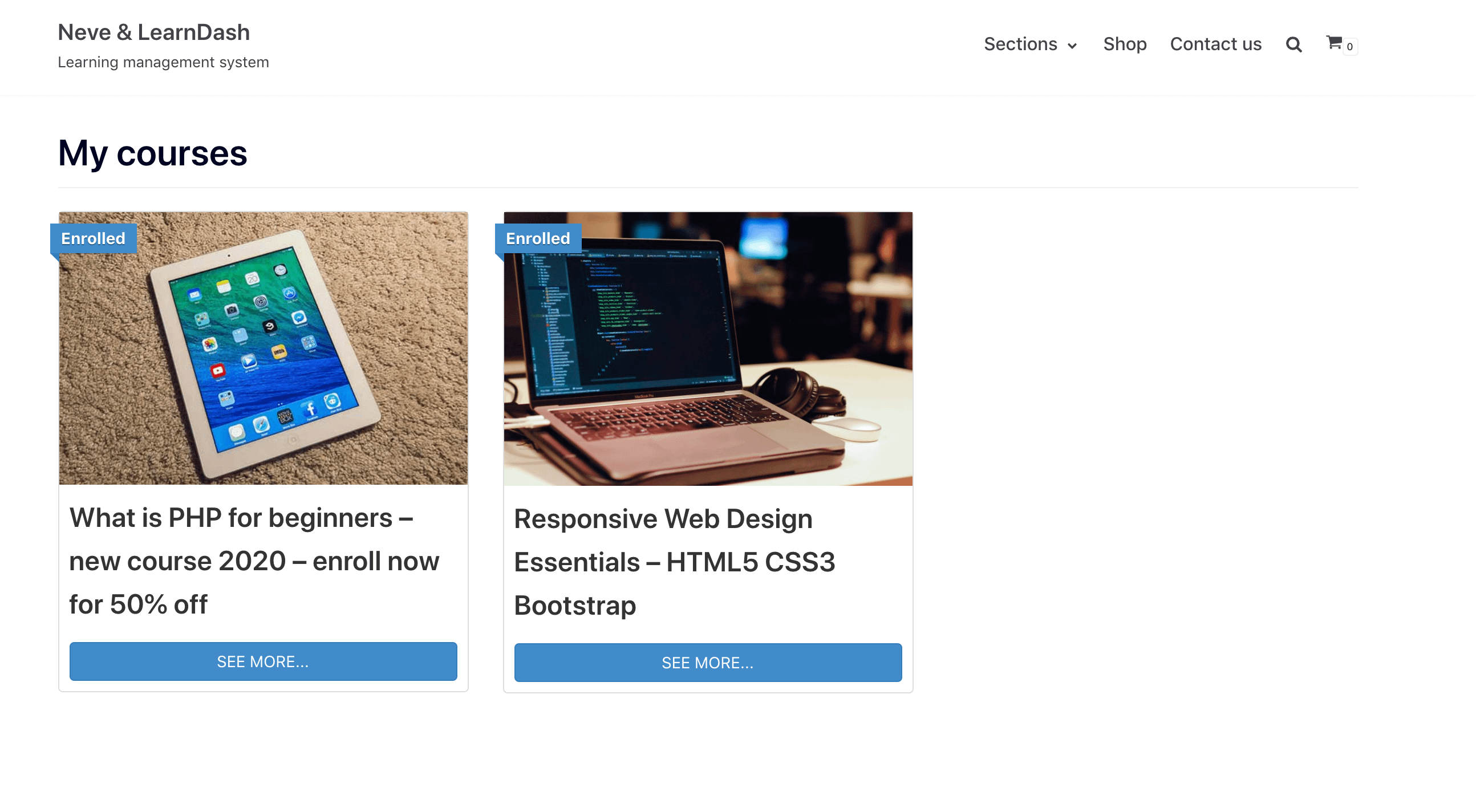 Neve also has great support for the LearnDash Course Grid addon which allows you to display all your courses in a grid-like manner, using the [ld_course_list] shortcode.