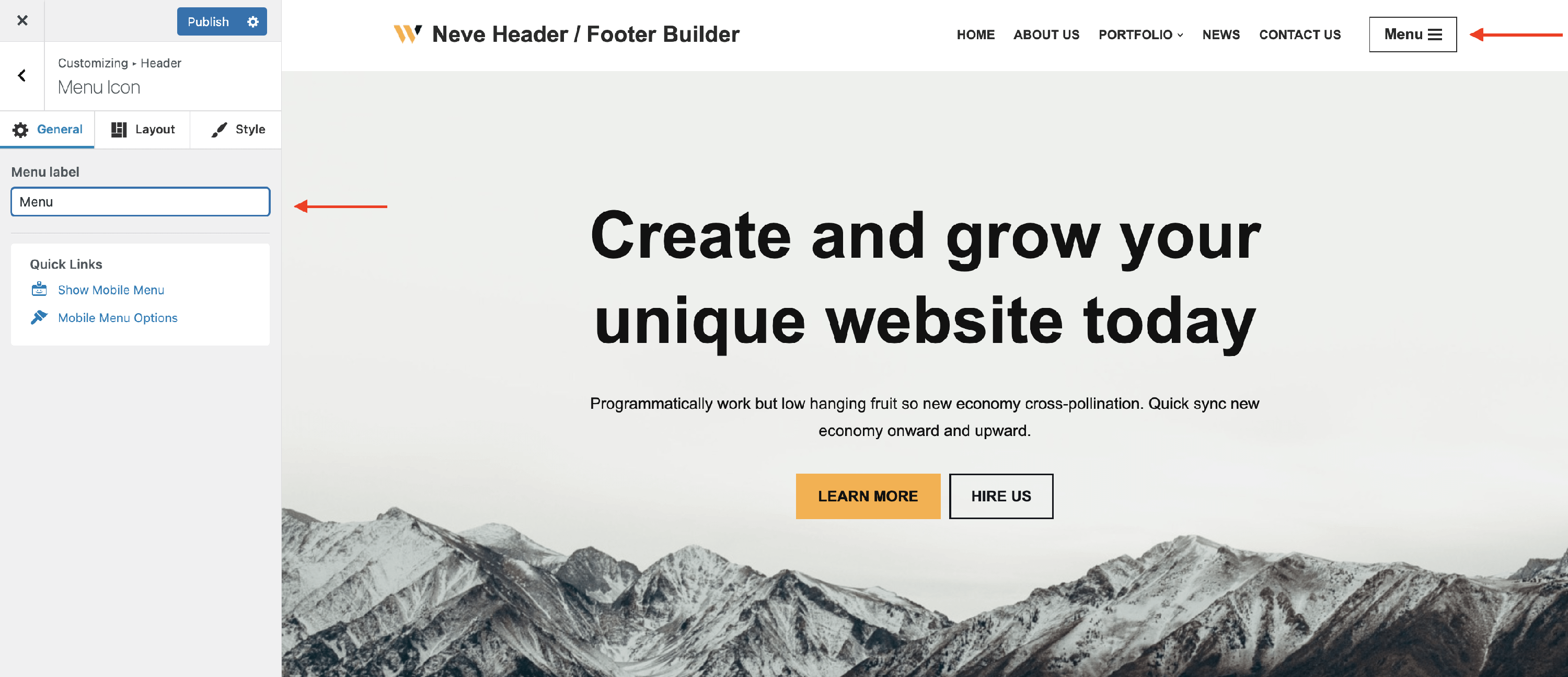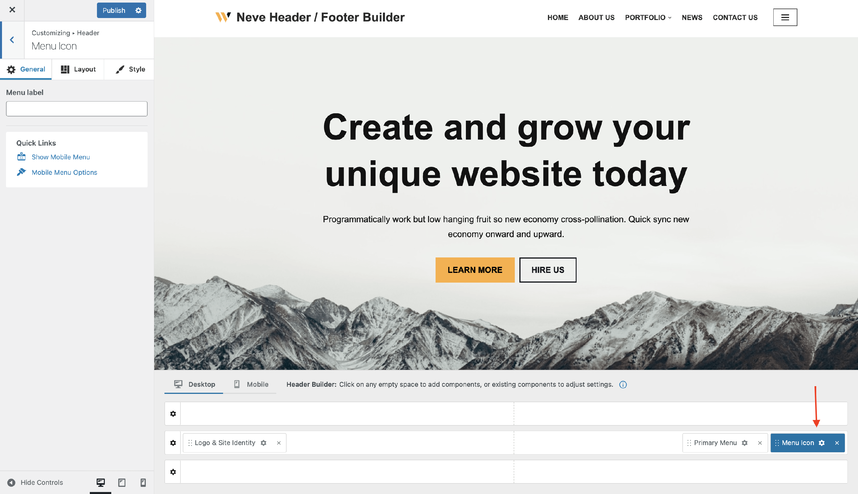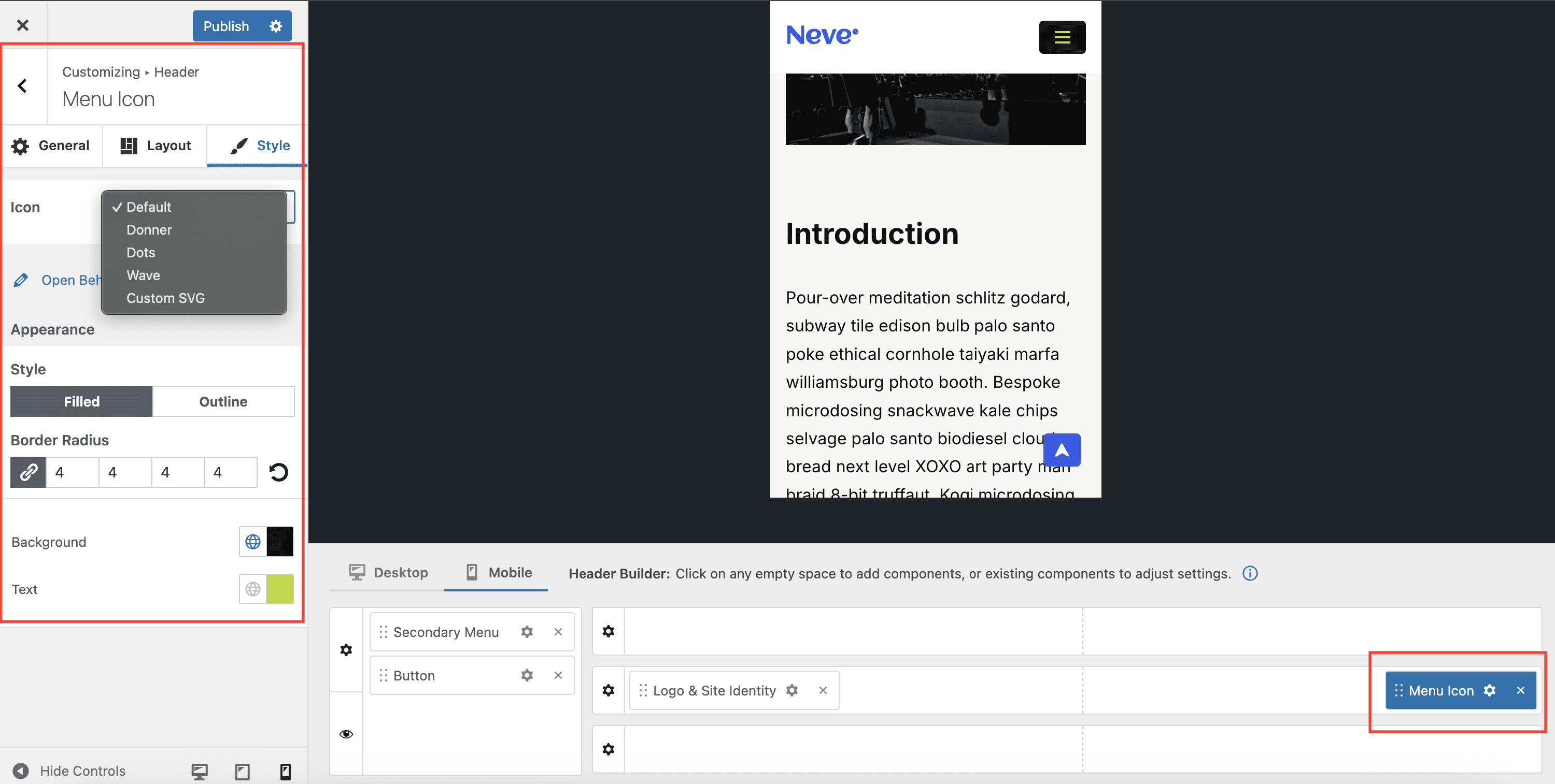 The Menu Icon Component - Neve Header / Footer Builder