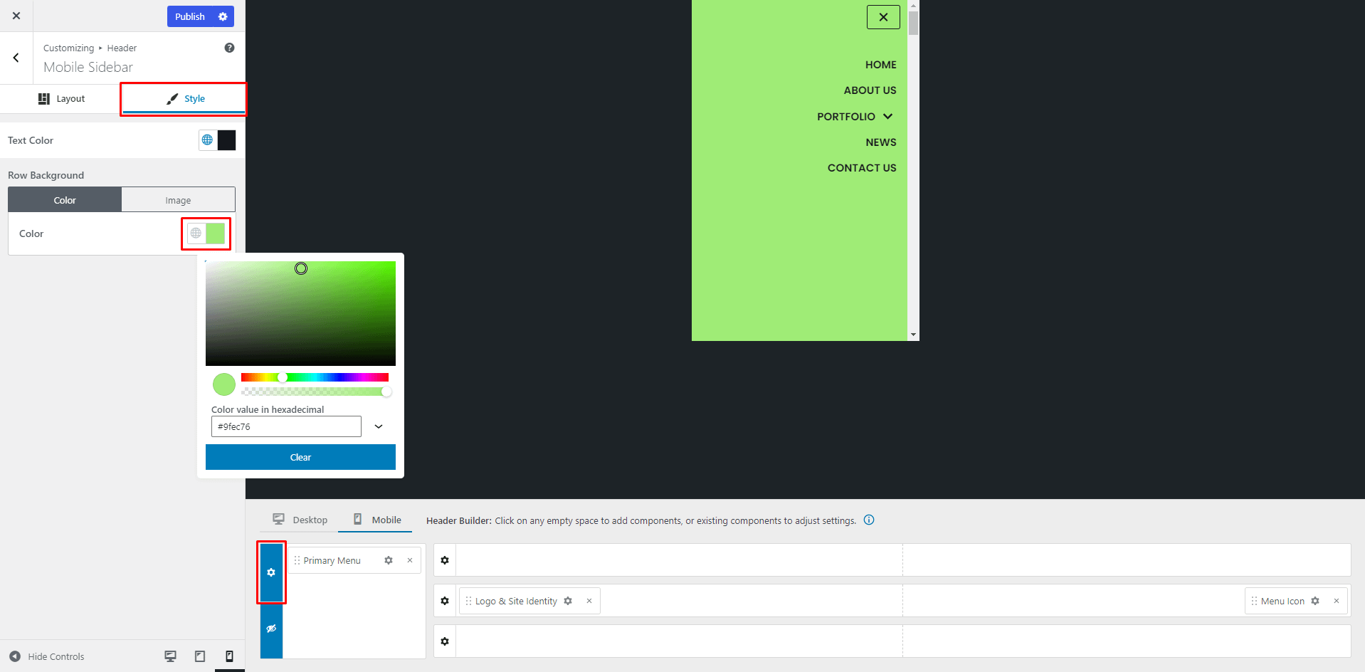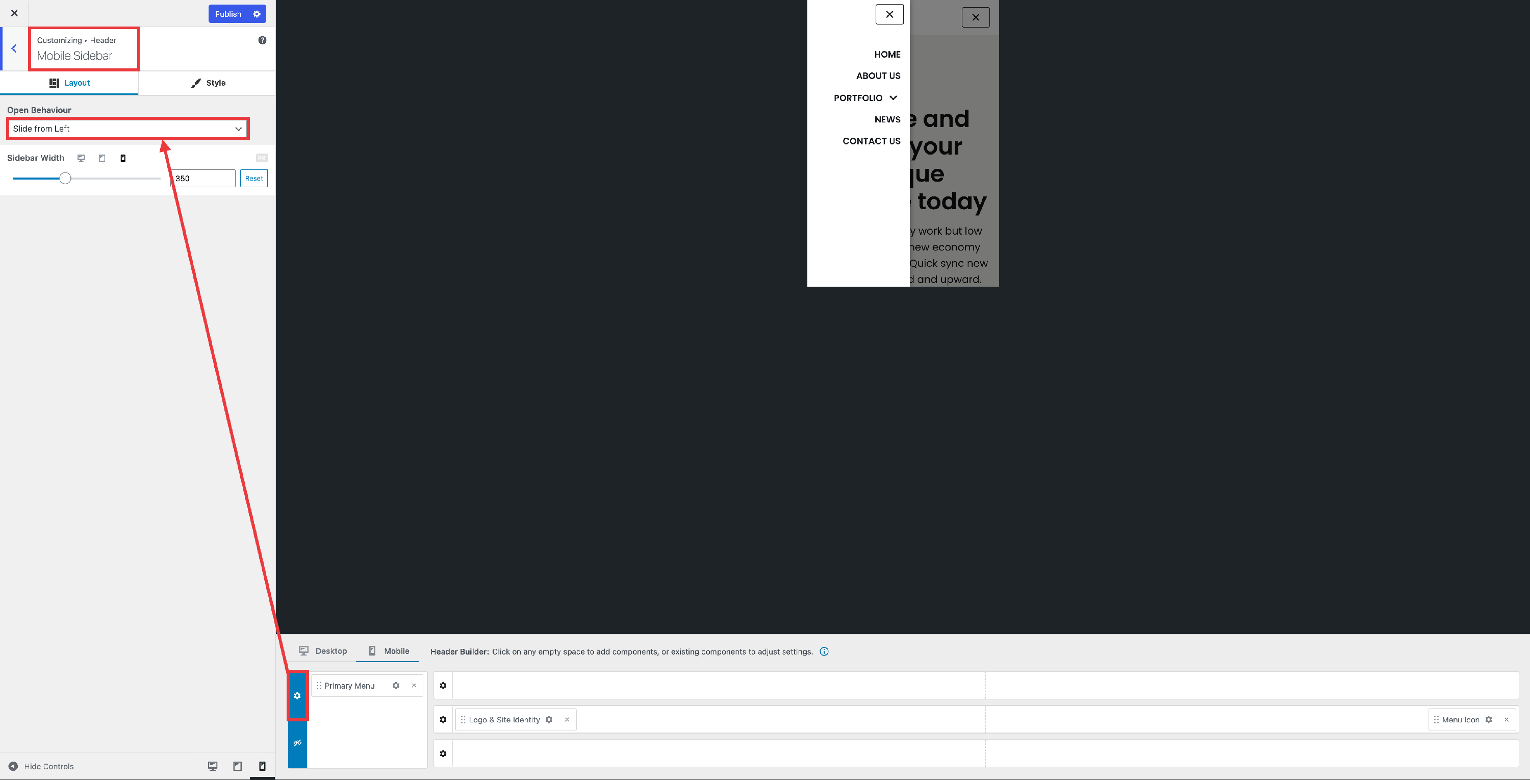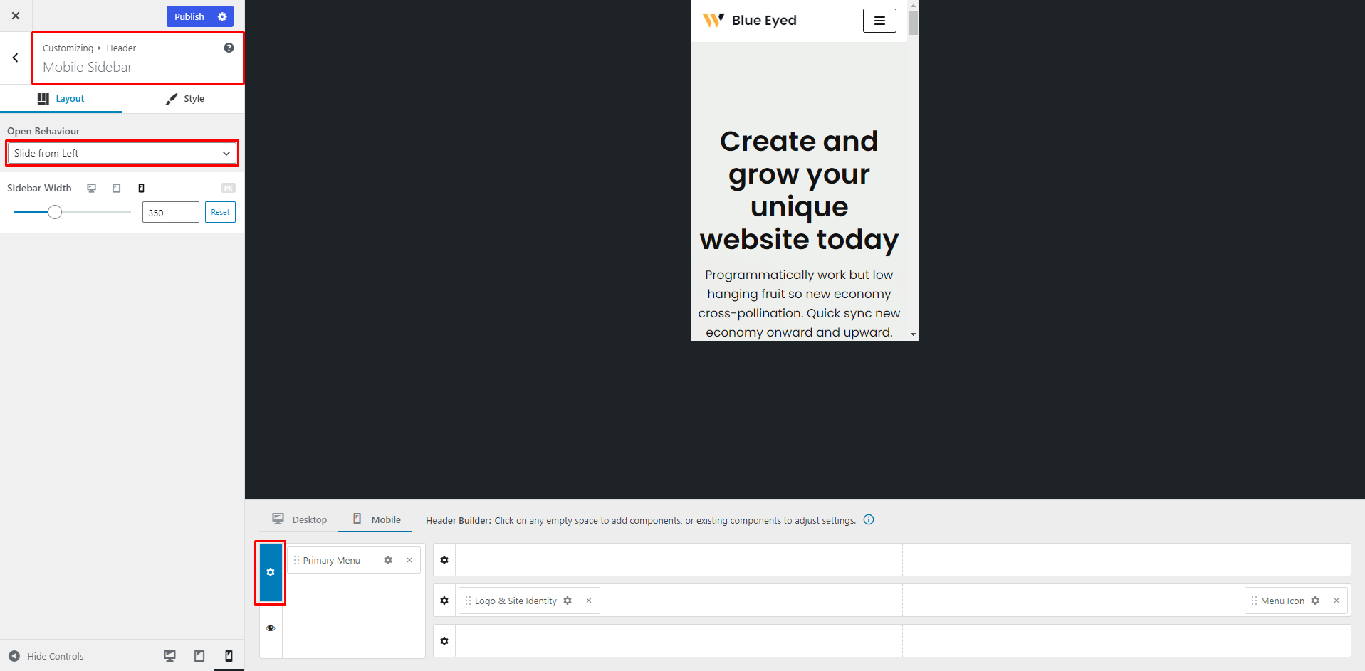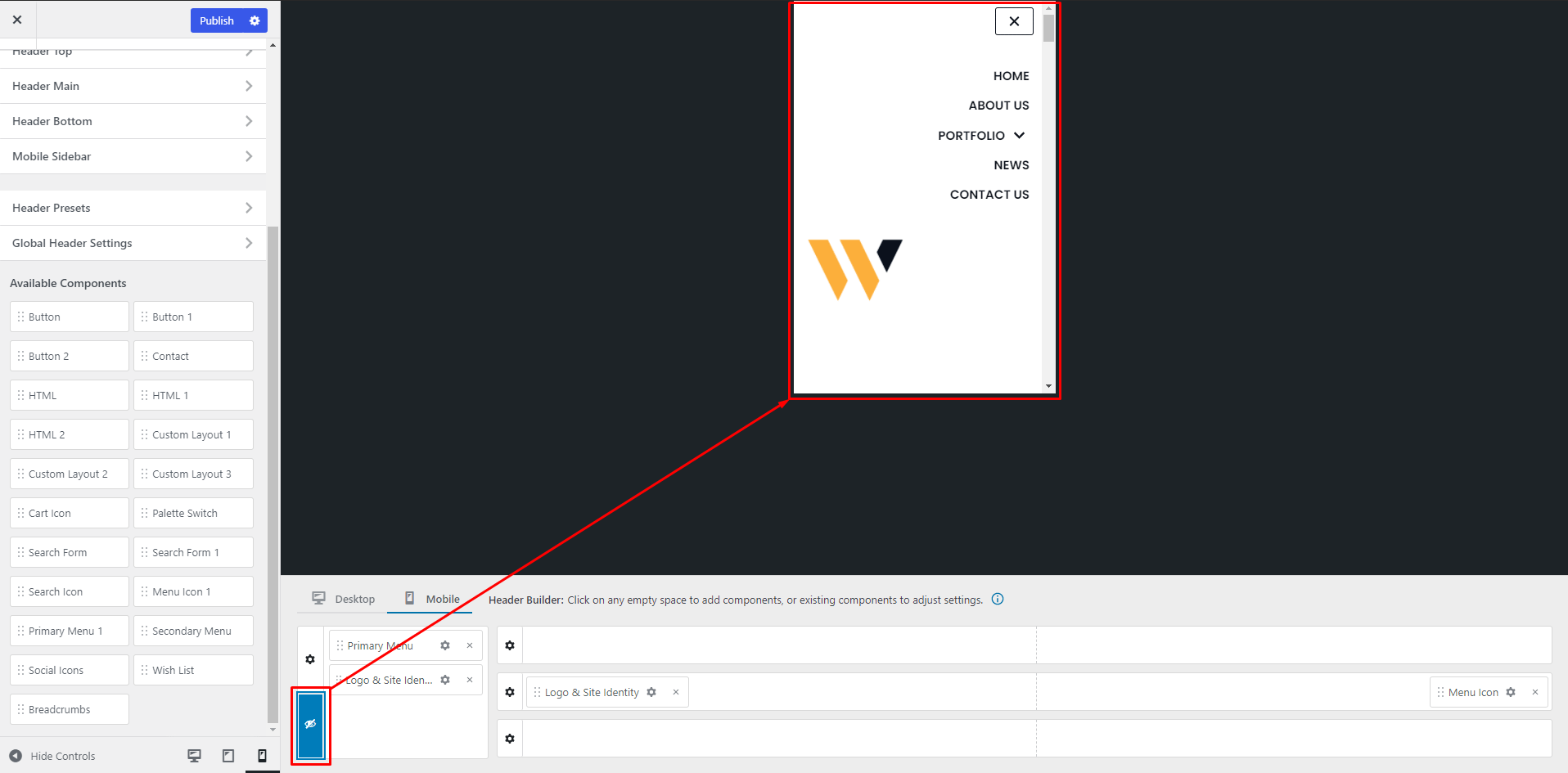 📝  Note: For more options about the Mobile menu content, you can check the Header Builder on Mobile devices doc.