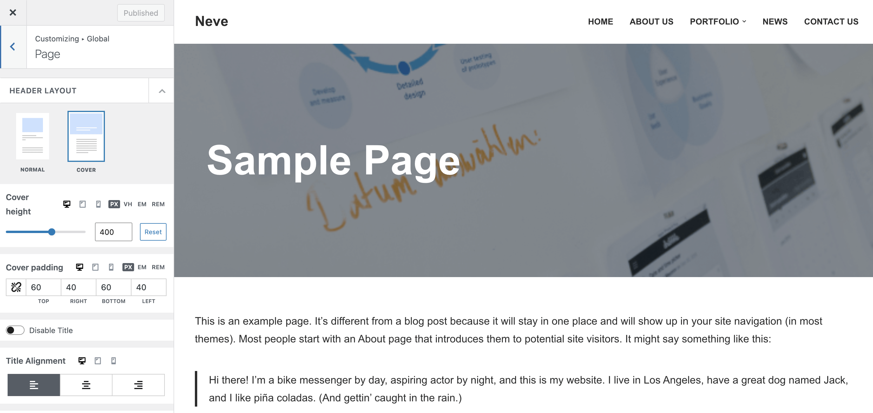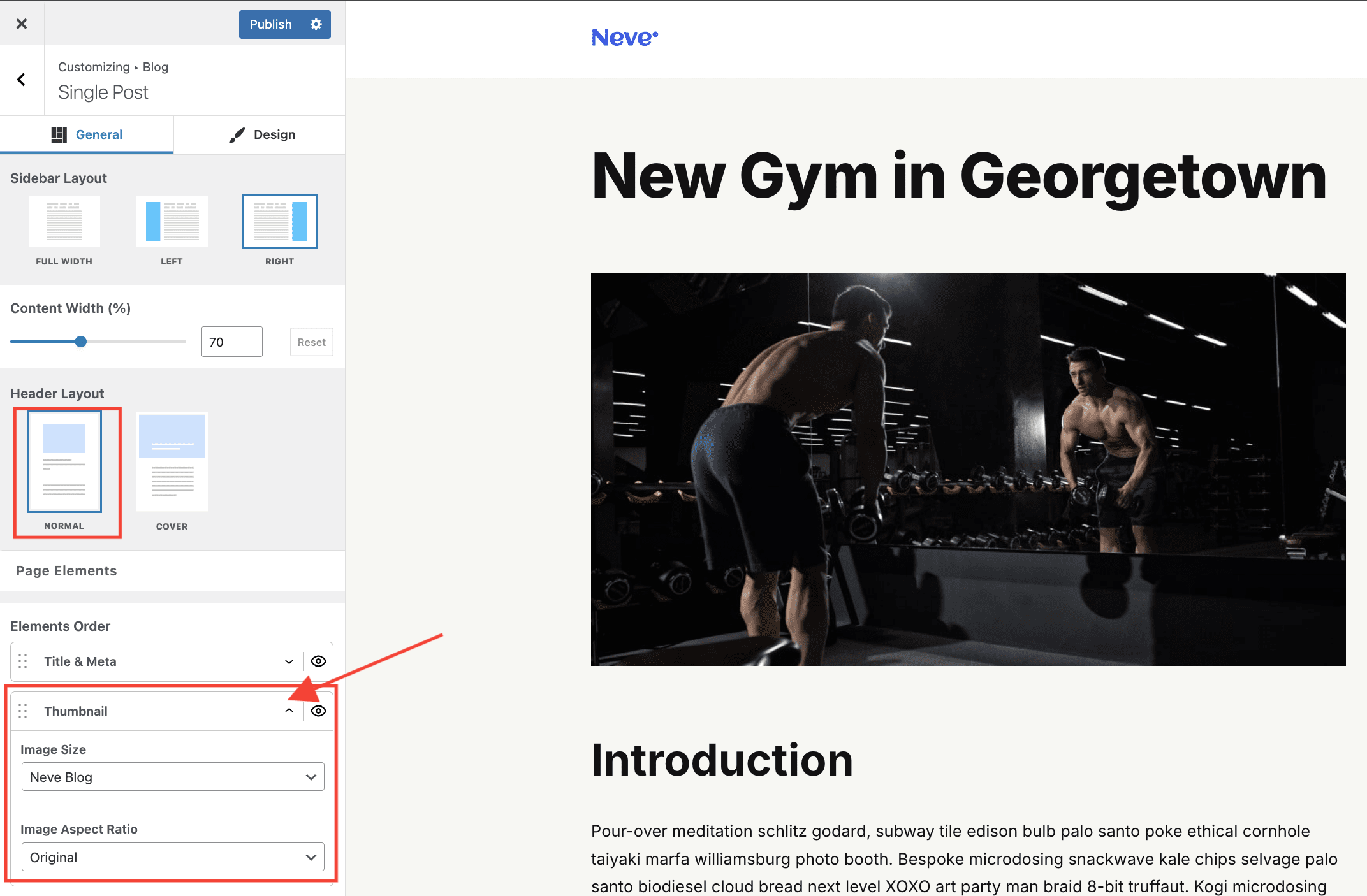 - Header Layout is the main setting of the Single post page. Depending on the selected option ( Normal or Cover ), additional dedicated options are available.