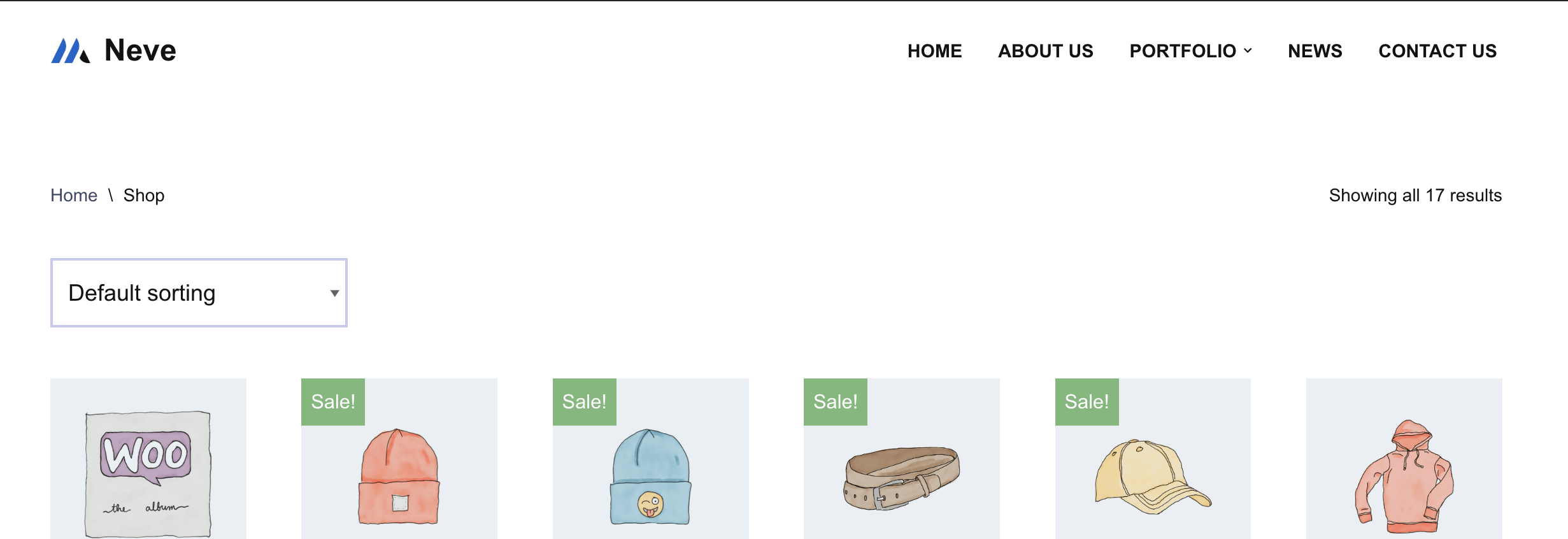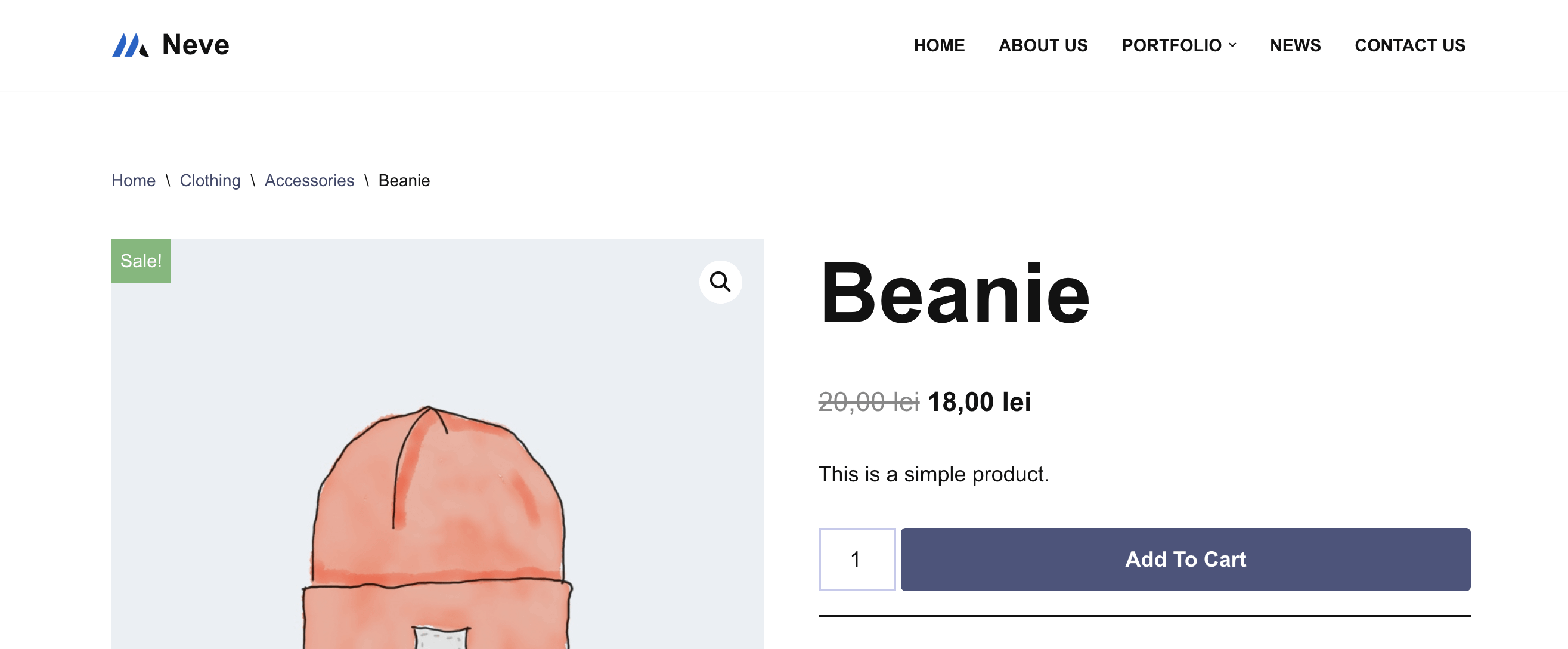 By default, Neve displays breadcrumbs just on the Shop and Product pages, as can be seen in the images below.