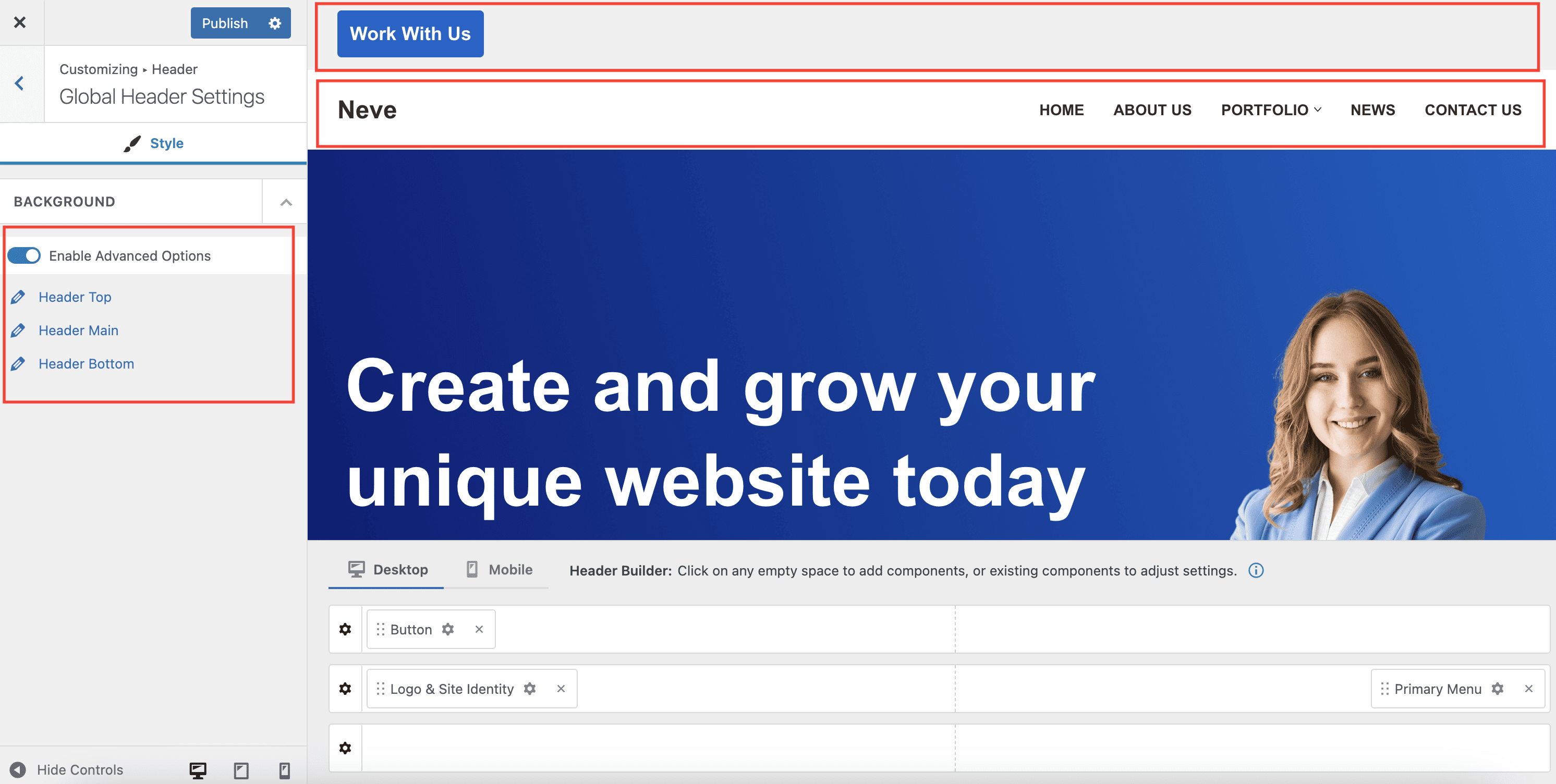 💡 Want to make the header and/or the footer sticky? Check out Neve PRO.