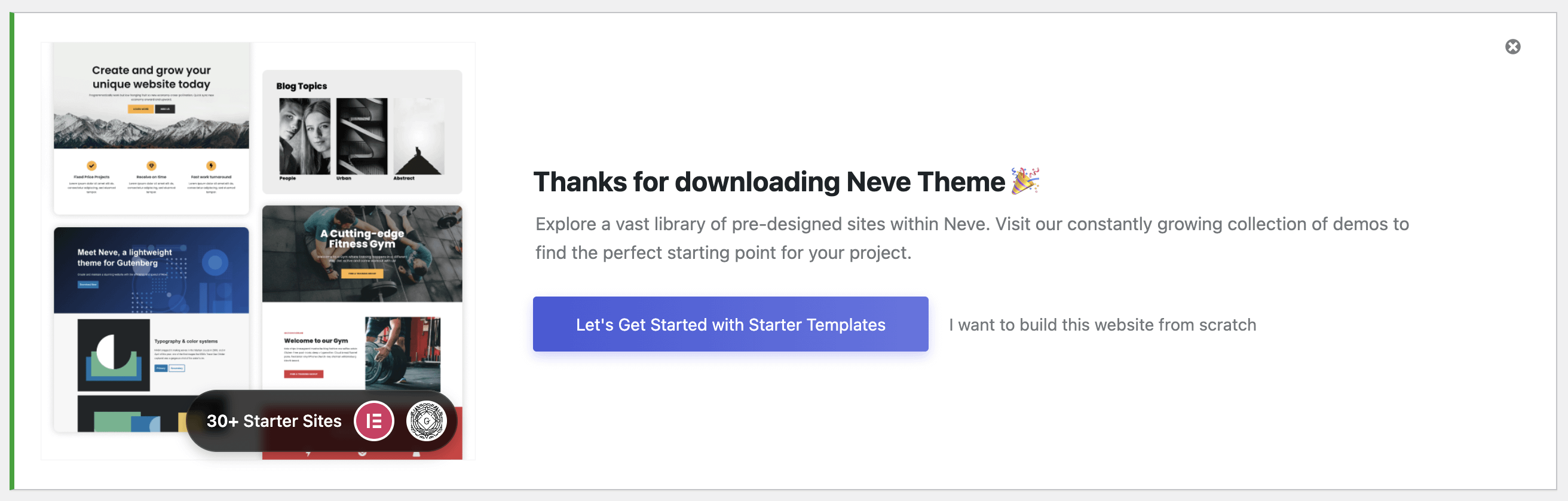 Once Neve is activated, you can start building your site from scratch or by using a Starter Site.