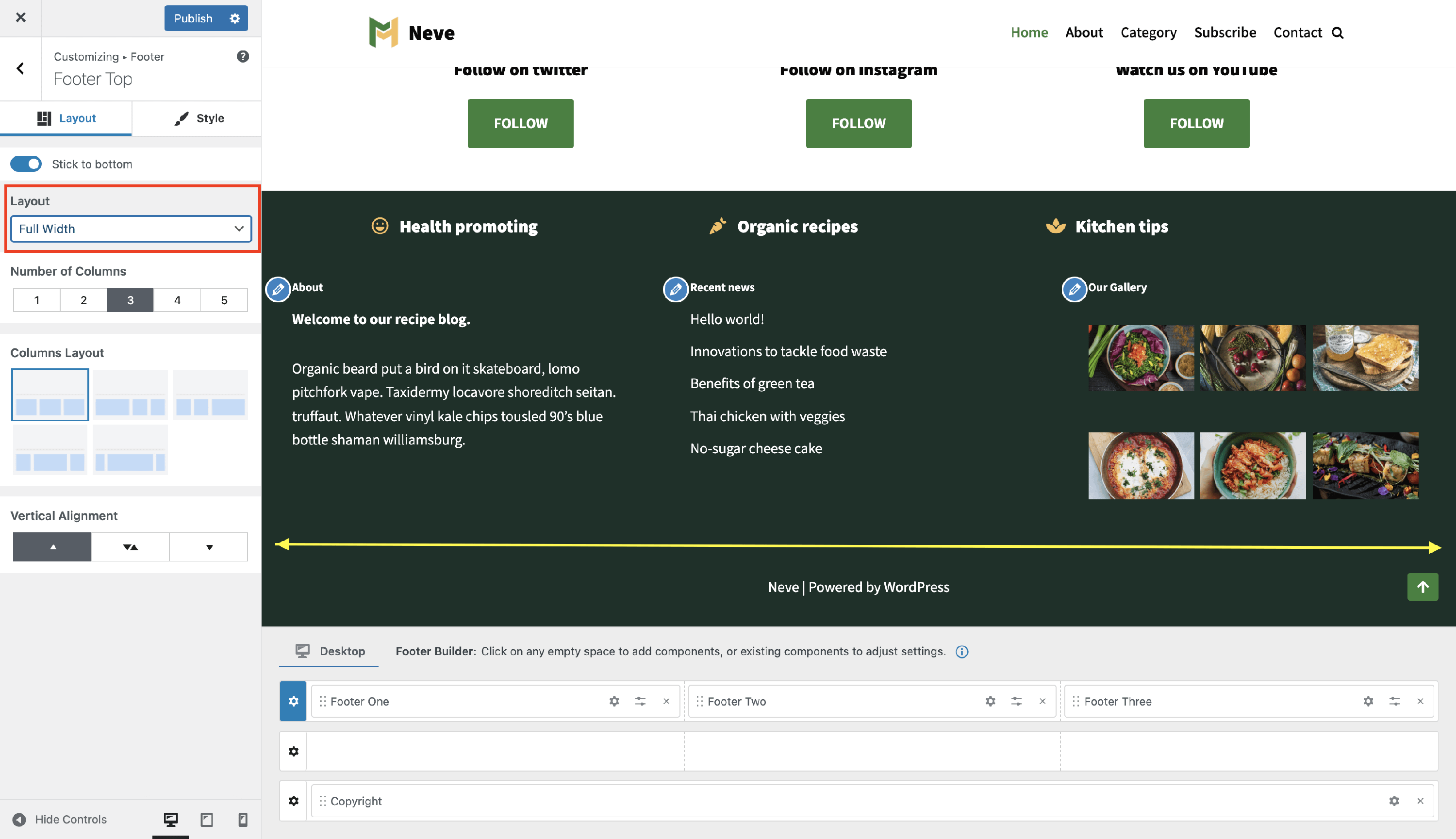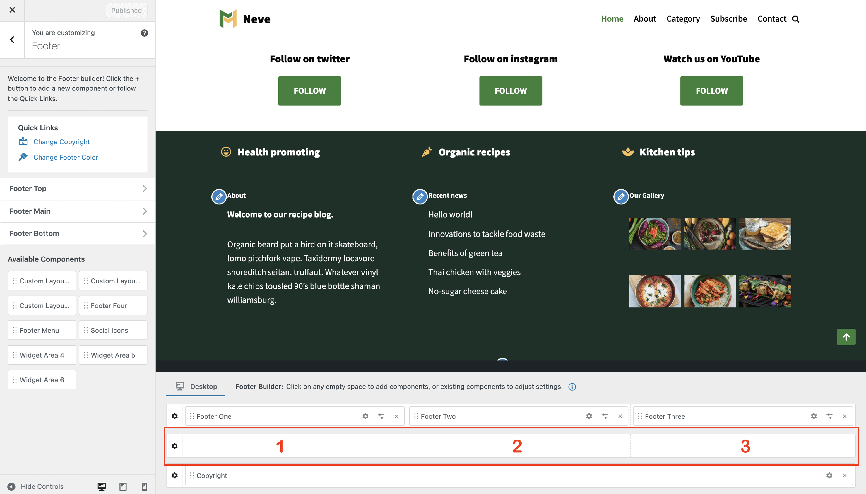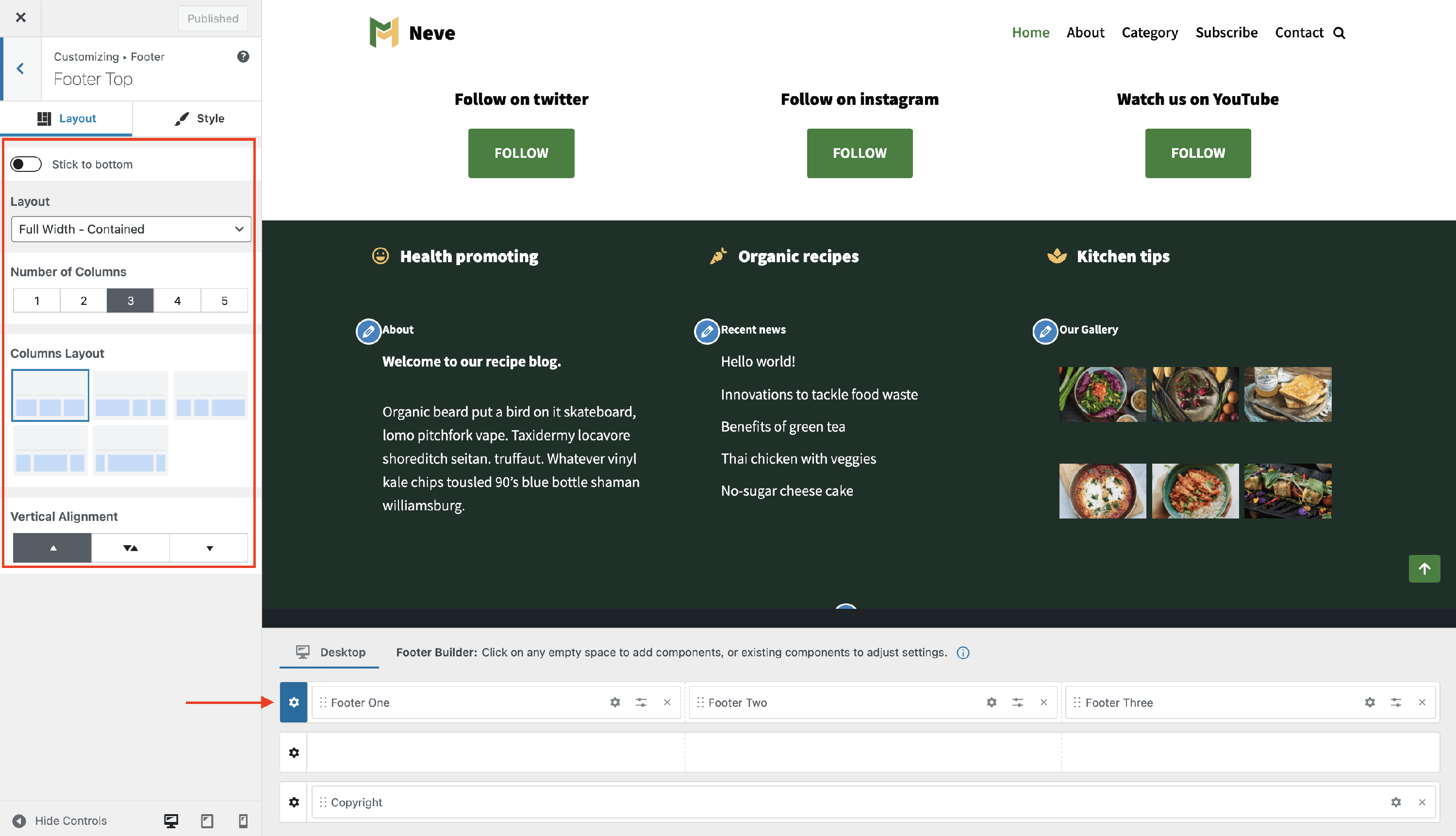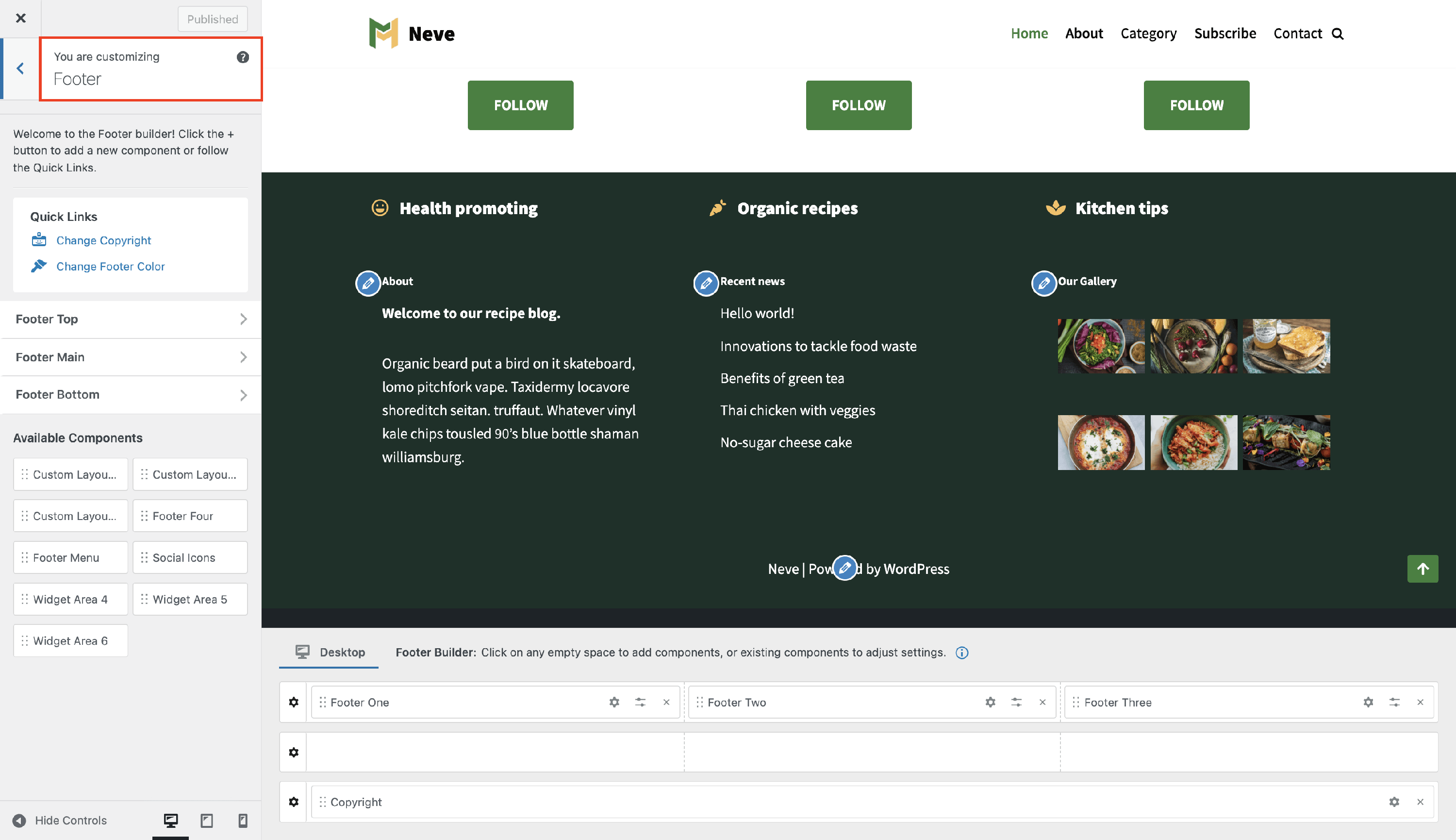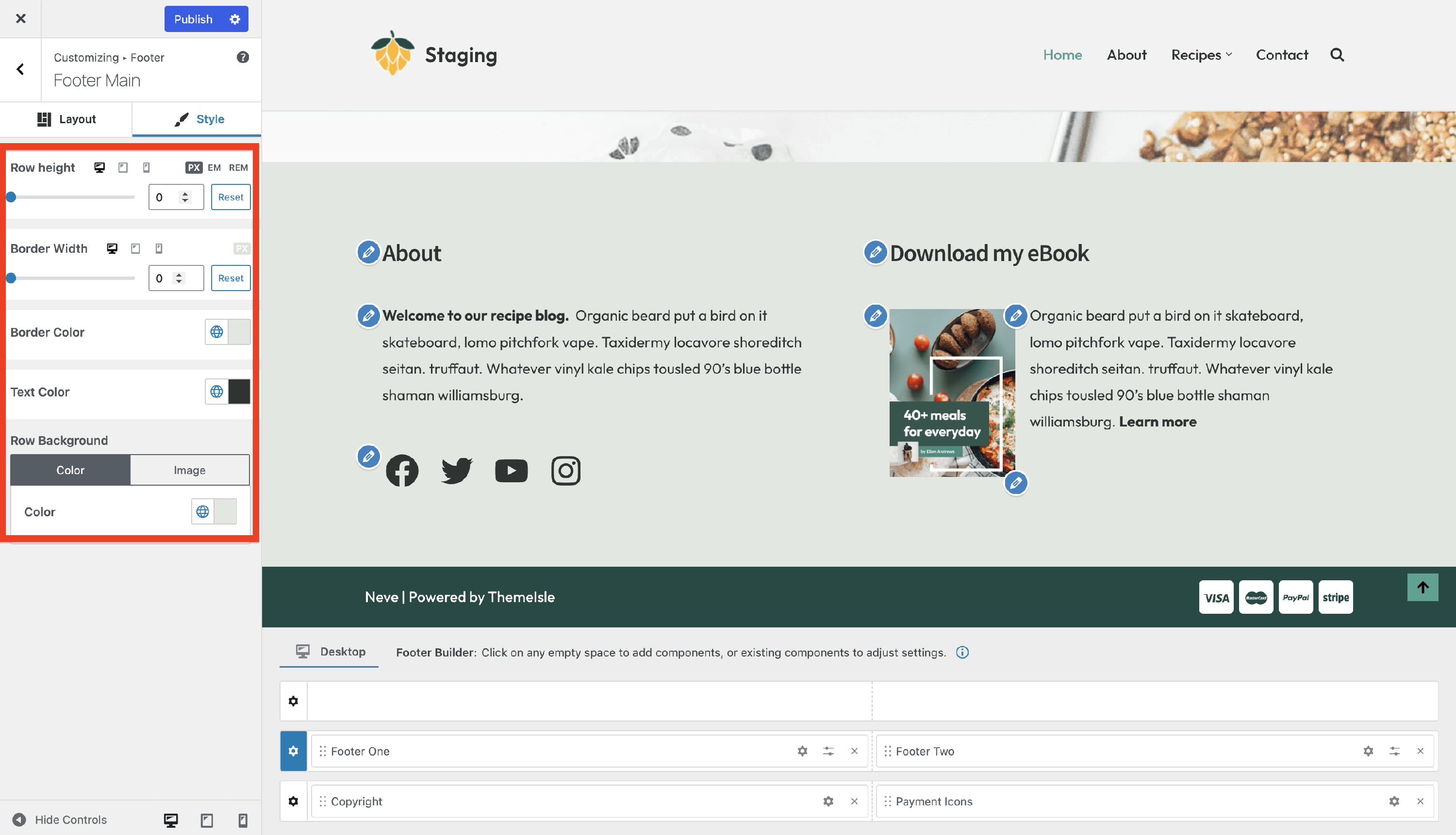 Neve Footer Builder