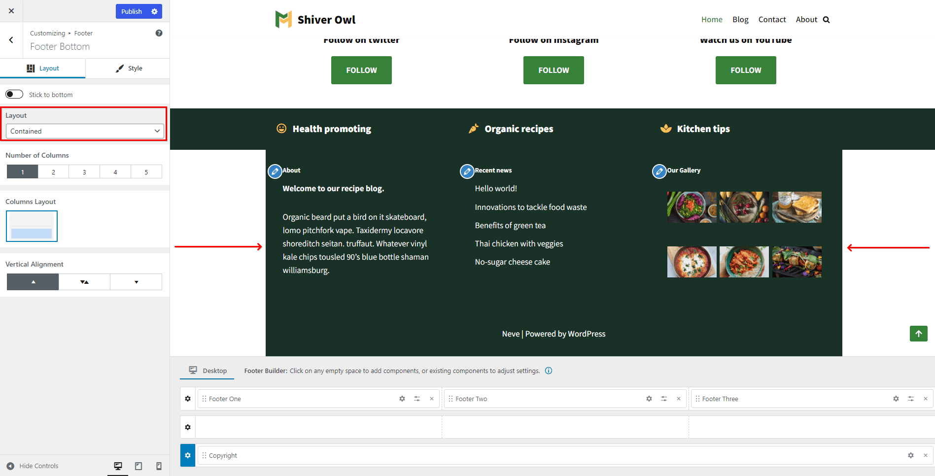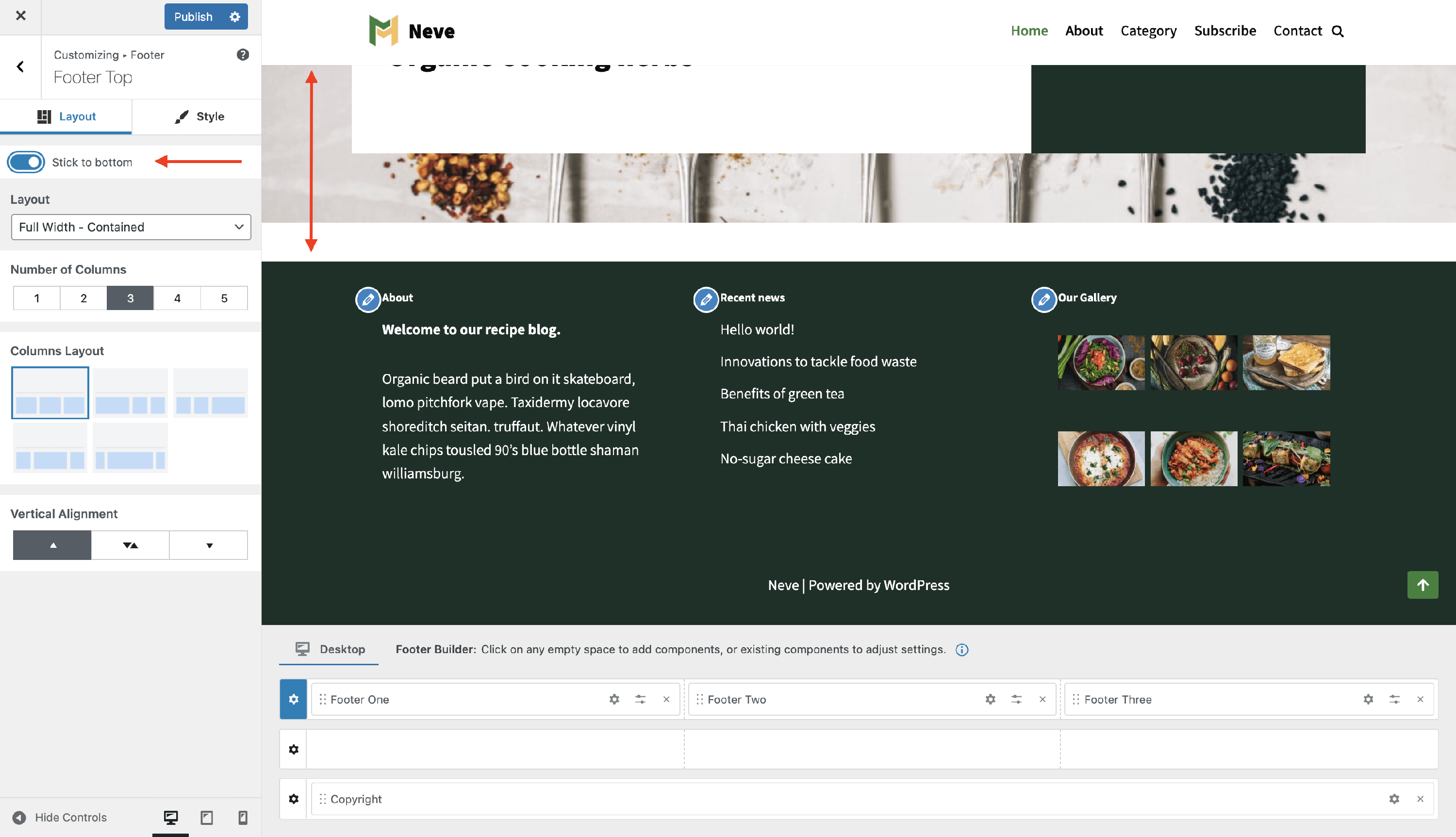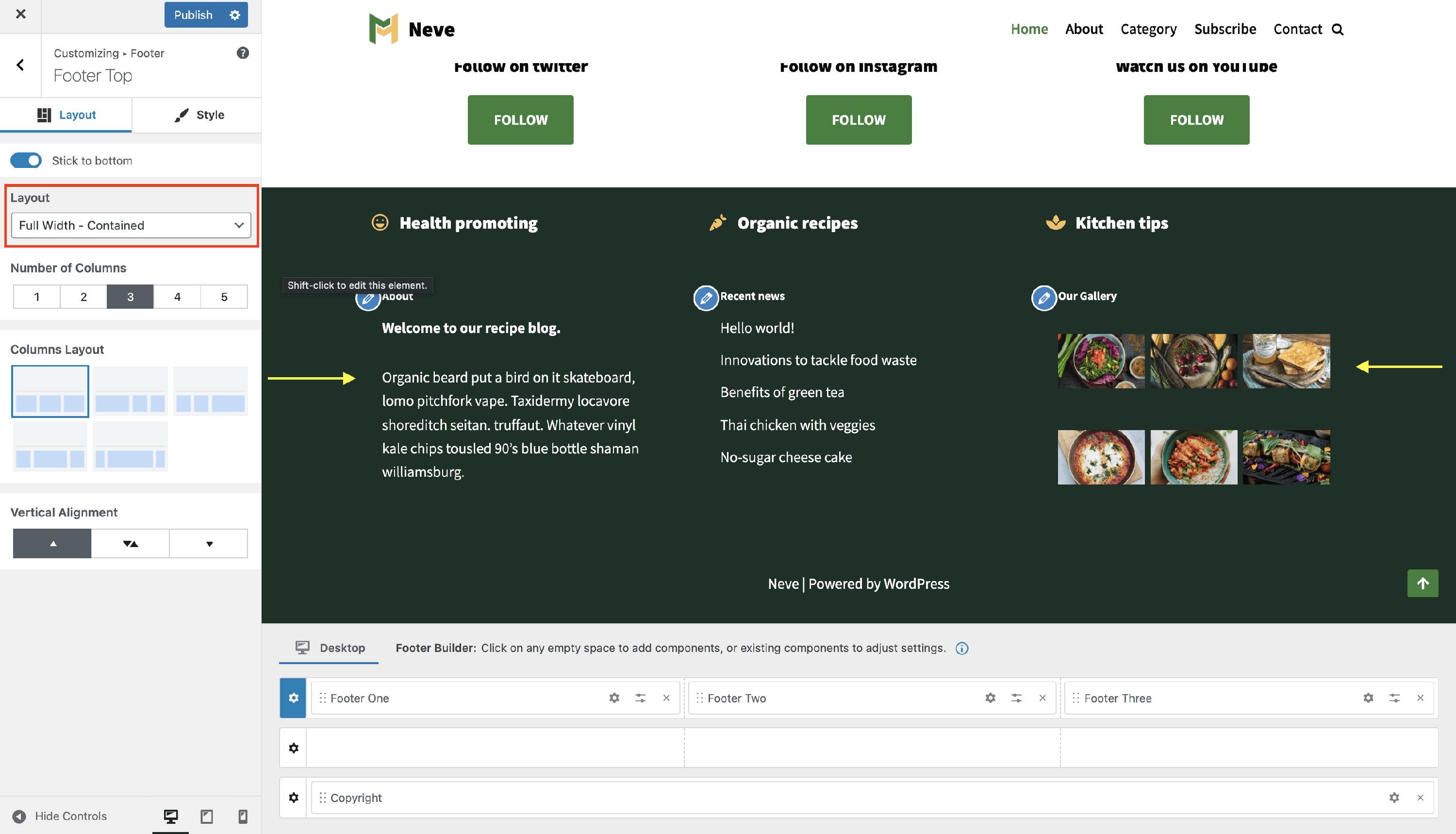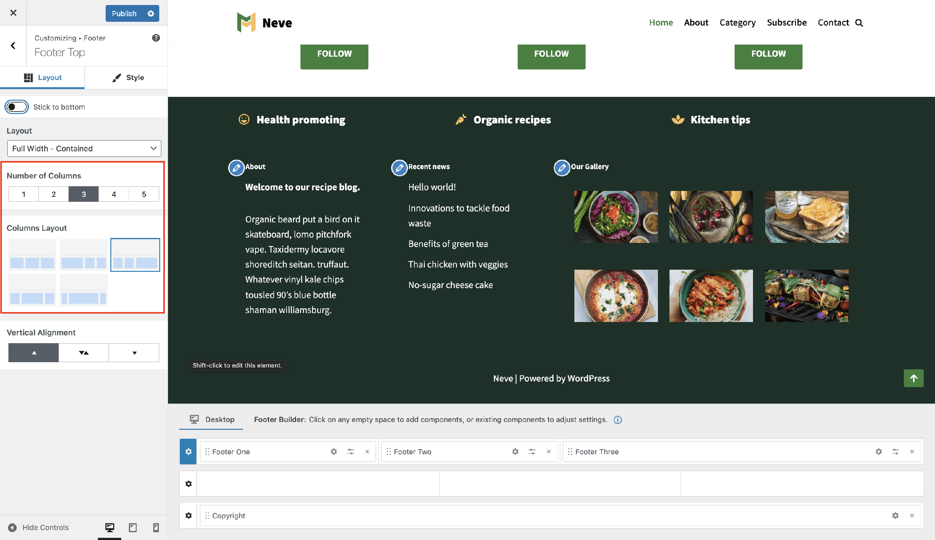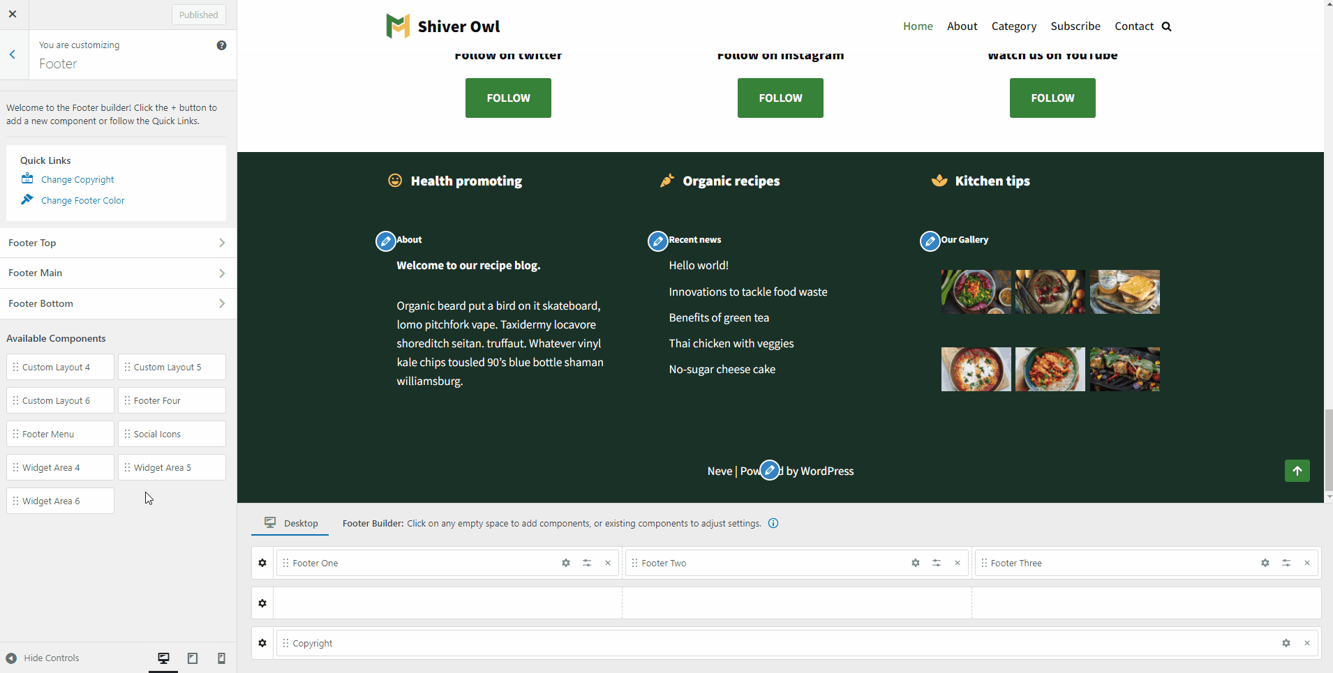 Neve Footer Builder