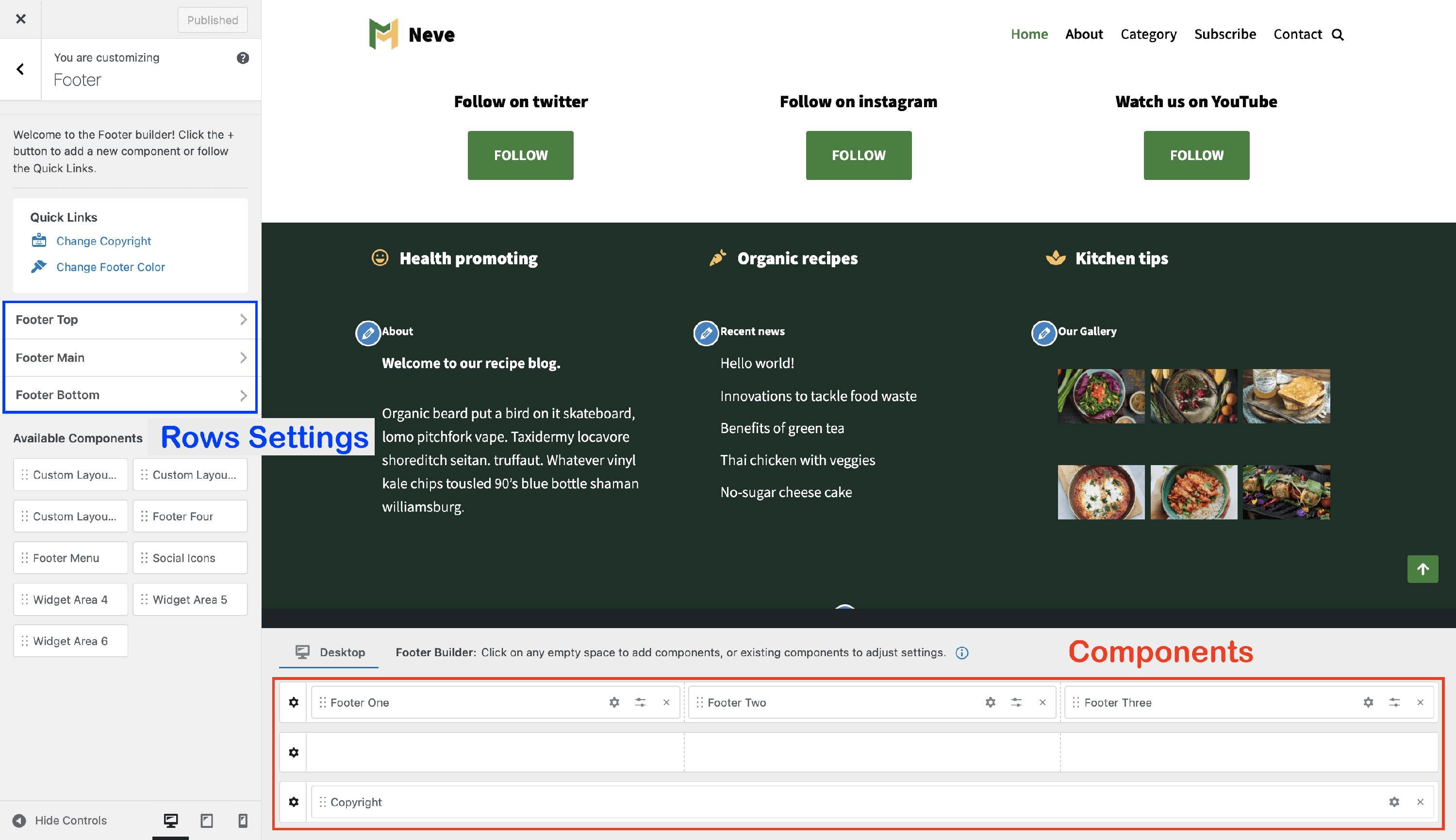 | Footer Builder Rows | Managing the Components |