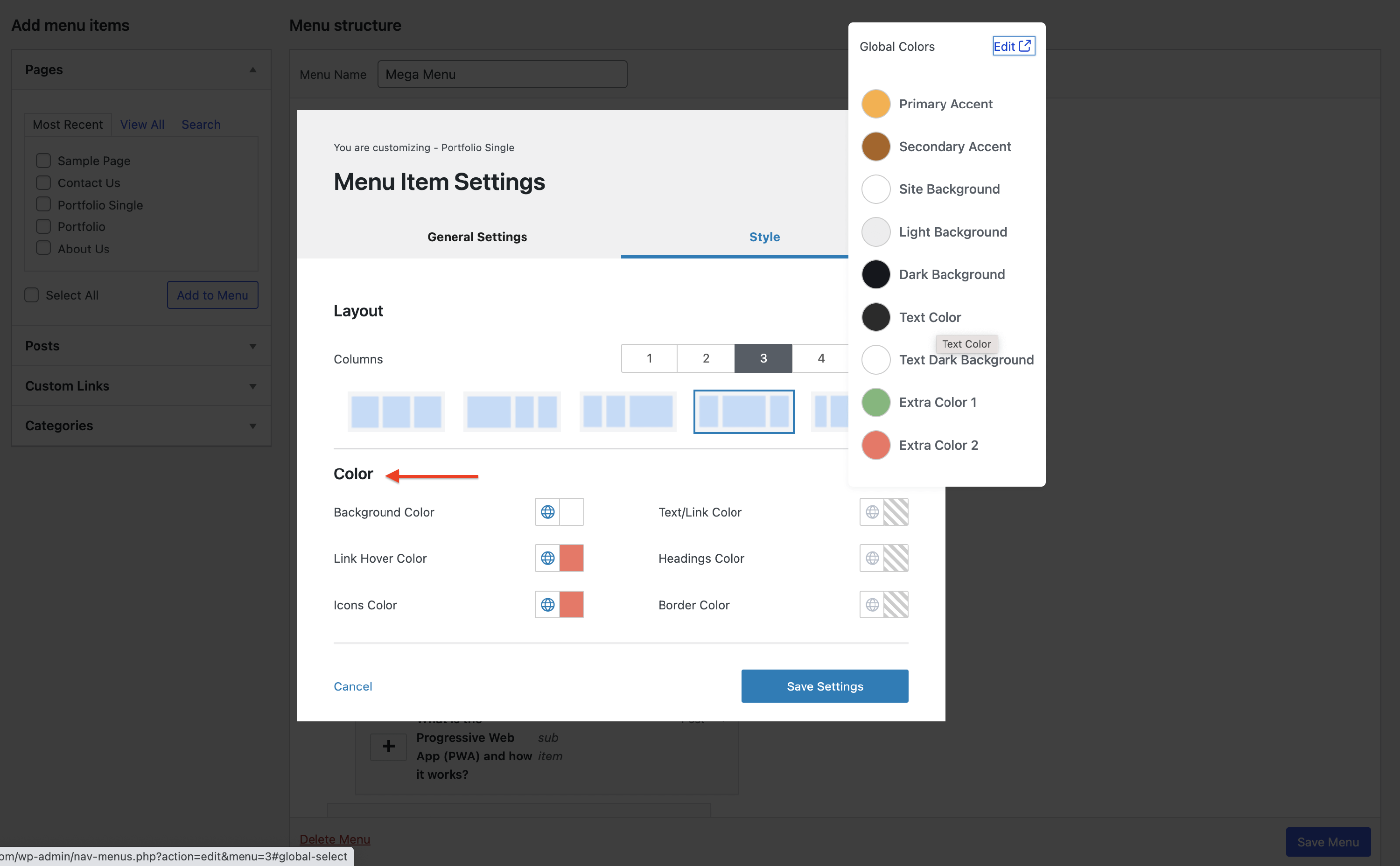 - Color - adjust the colors of the Mega Menu.