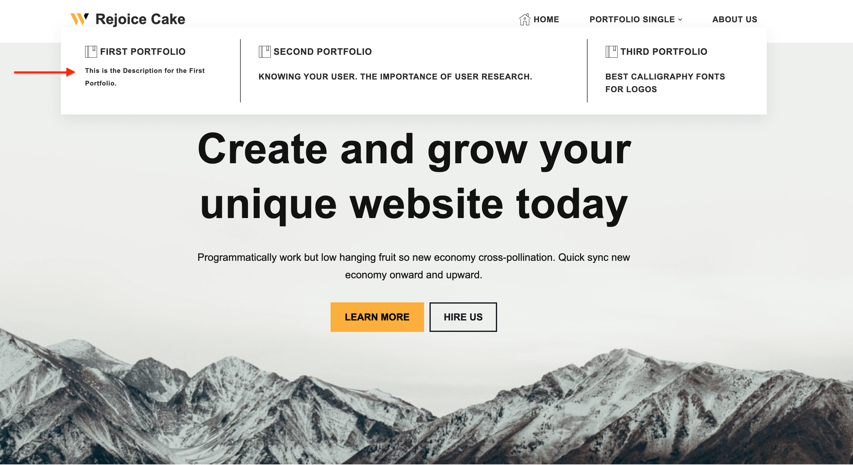 The first method is by using the Menu Item Description option available for any item within the Mega Menu. This way, the current item being set as Menu Item Description won't be displayed, just the description will appear.